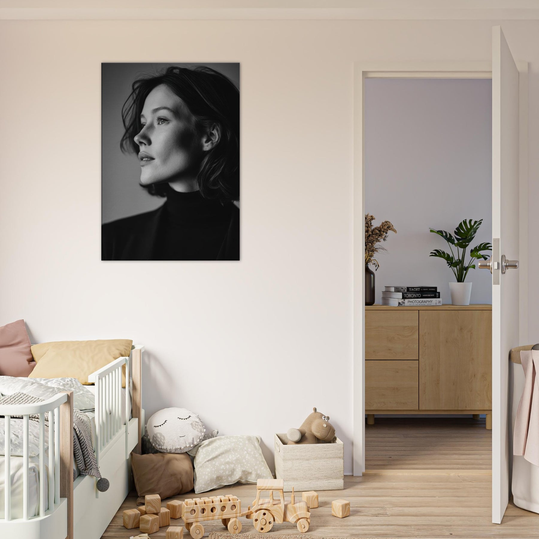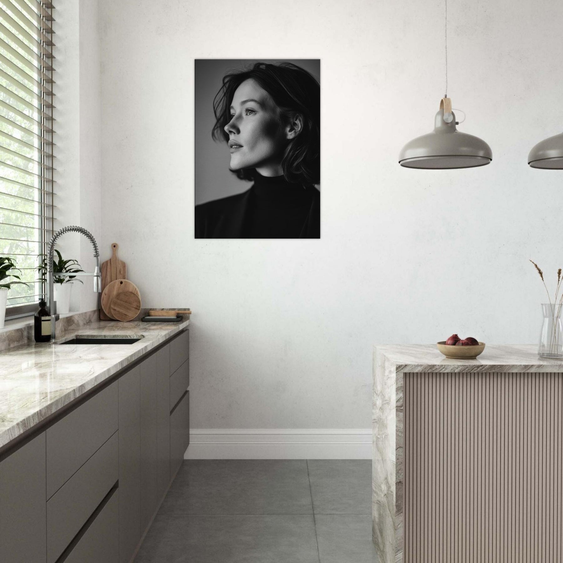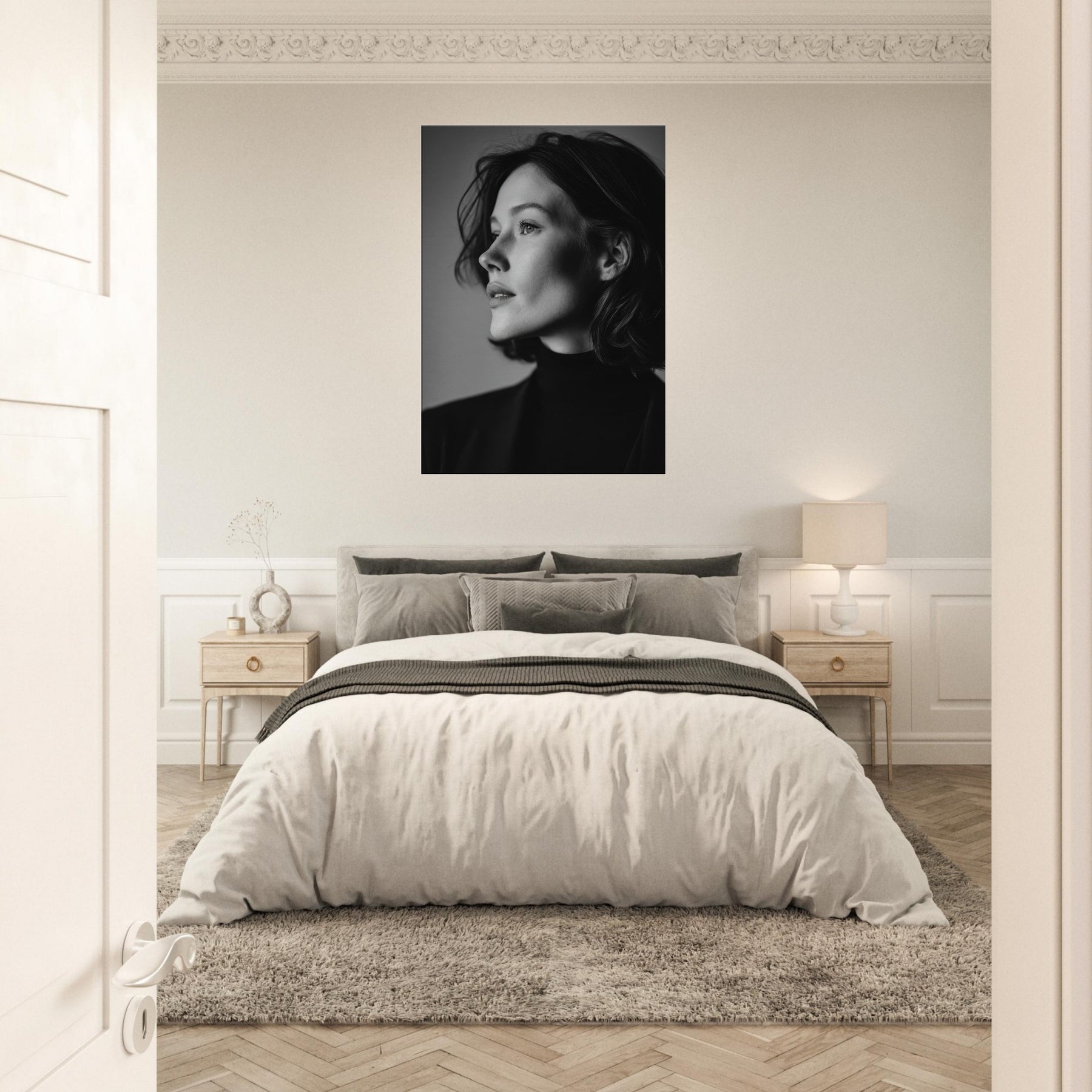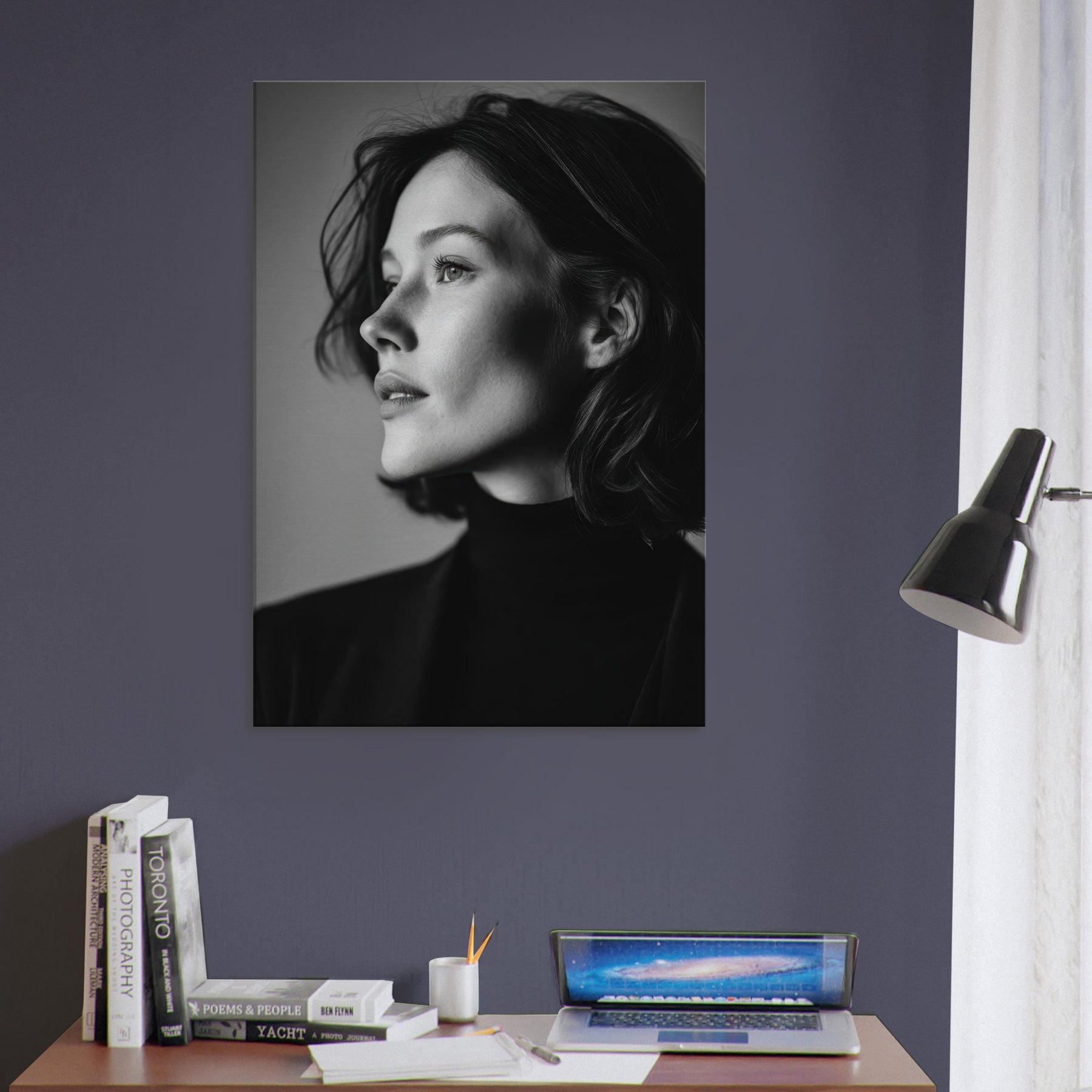 This European Woman , rendered in luminous blacks and grays, invites a quiet moment of contemplation. Soft shadows cradle the features, creating an intimate atmosphere that feels almost living. Perfect for a serene hallway or a sunlit corner, this black and white piece elevates any space with timeless finesse, offering a refined focal point that pairs beautifully with minimal furnishings and warm textures.
