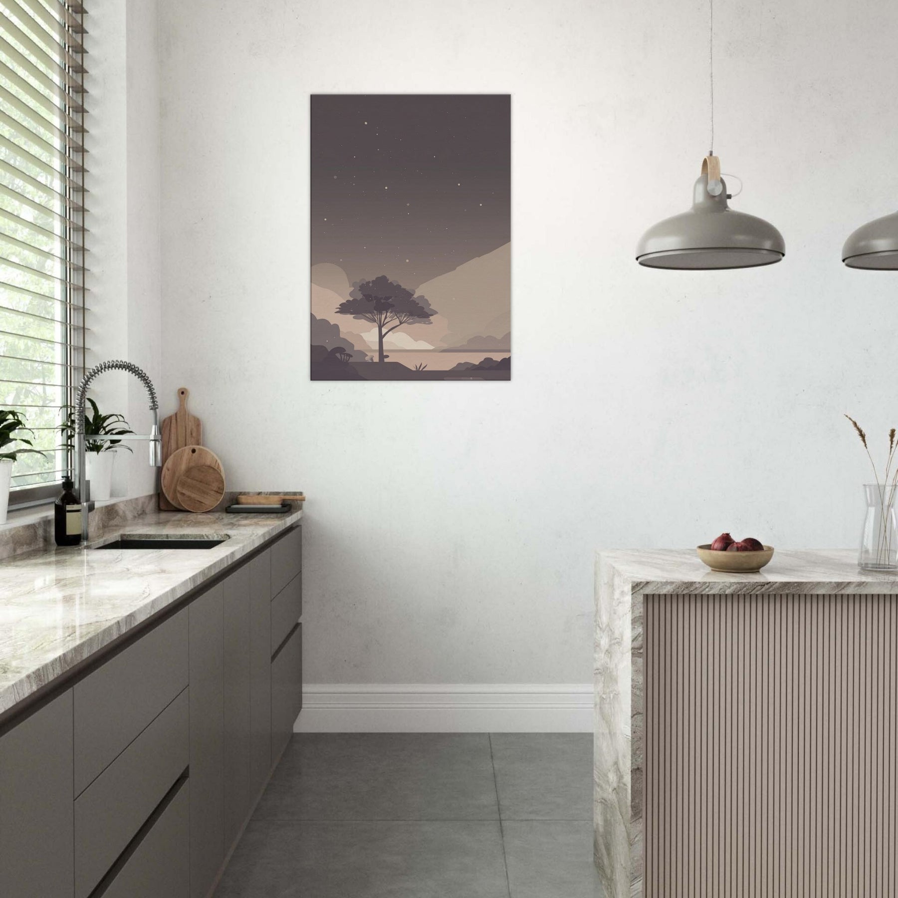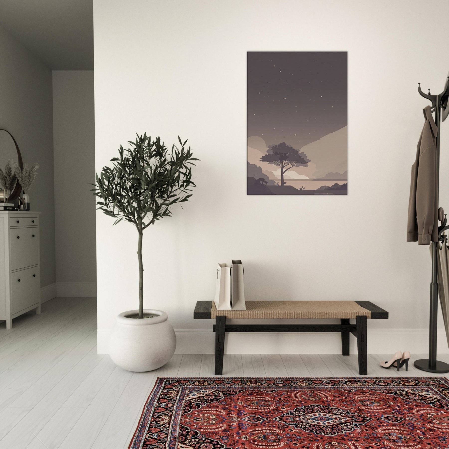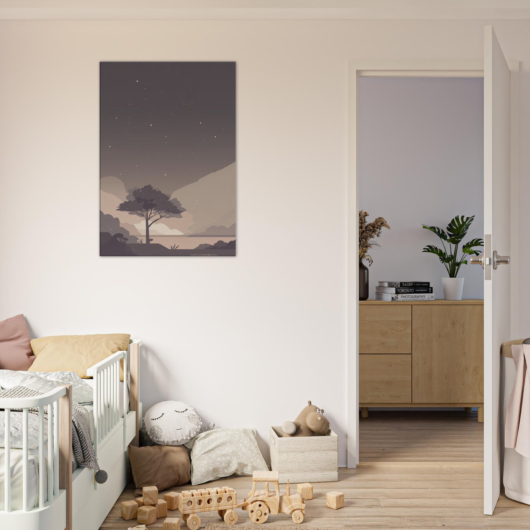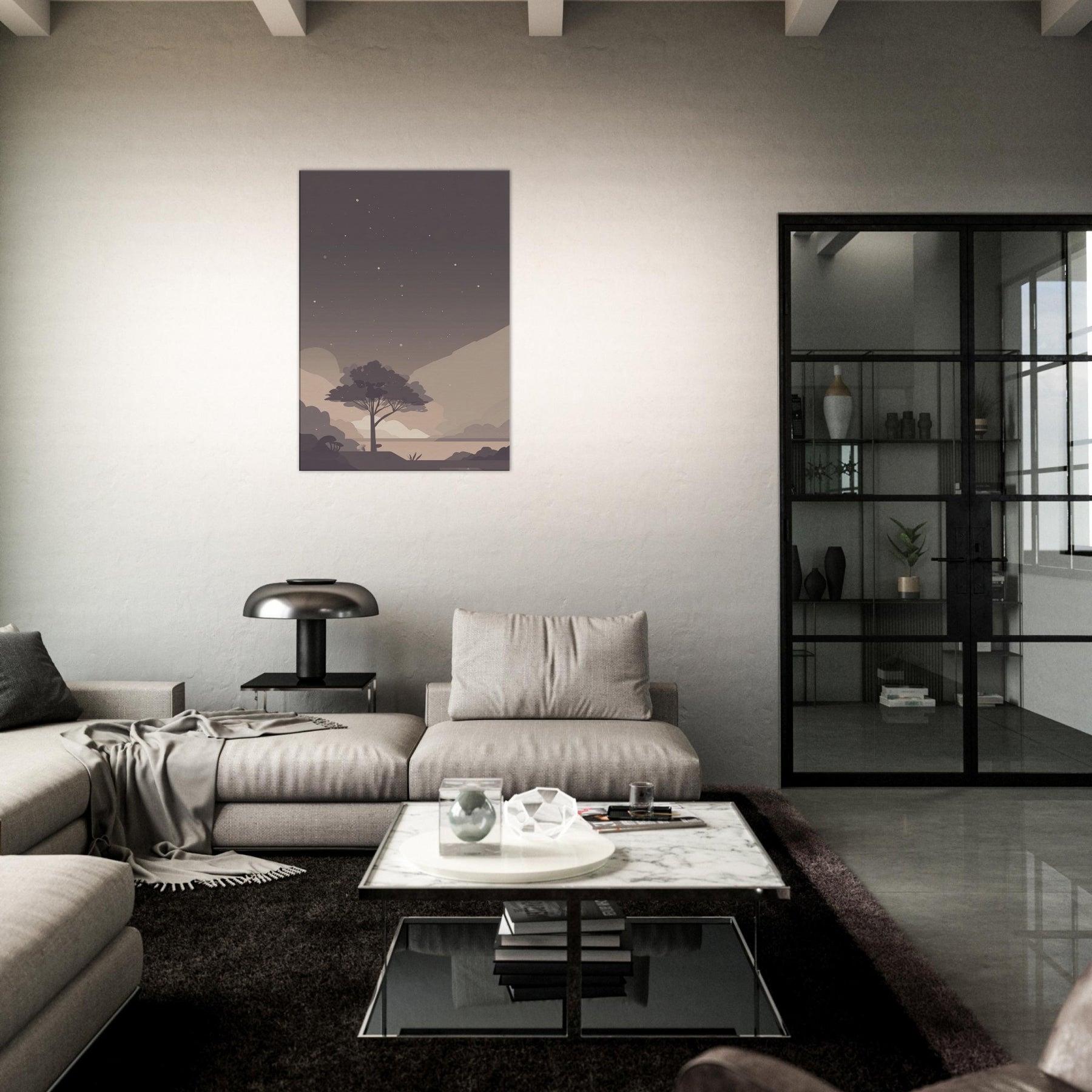 Starry Night Minimalist Wall Art invites the quiet of a clear evening into your living space. A single, graceful tree anchors a vast, velvet sky speckled with gentle stars, rendered in soft, tonal gradients that glow with restraint. The composition folds space and light into a calm horizon, creating a focal point that soothes the mind and lowers the room’s tempo. Perfect for a serene nook or above a sofa, it brings nature’s hush and cinematic distance to daily life, without overwhelming the senses.