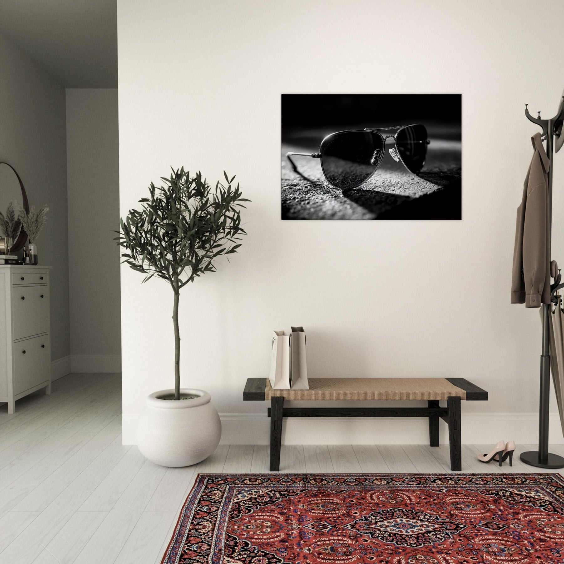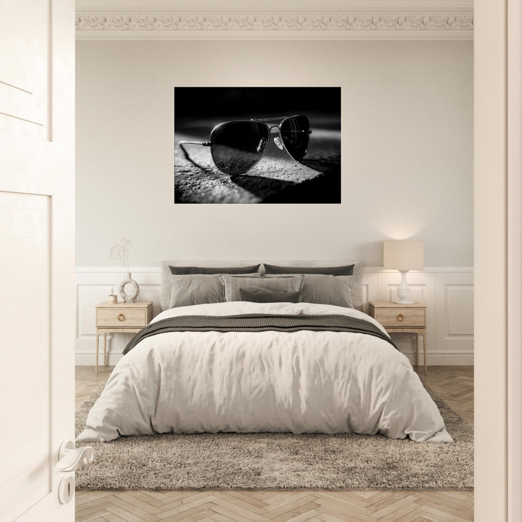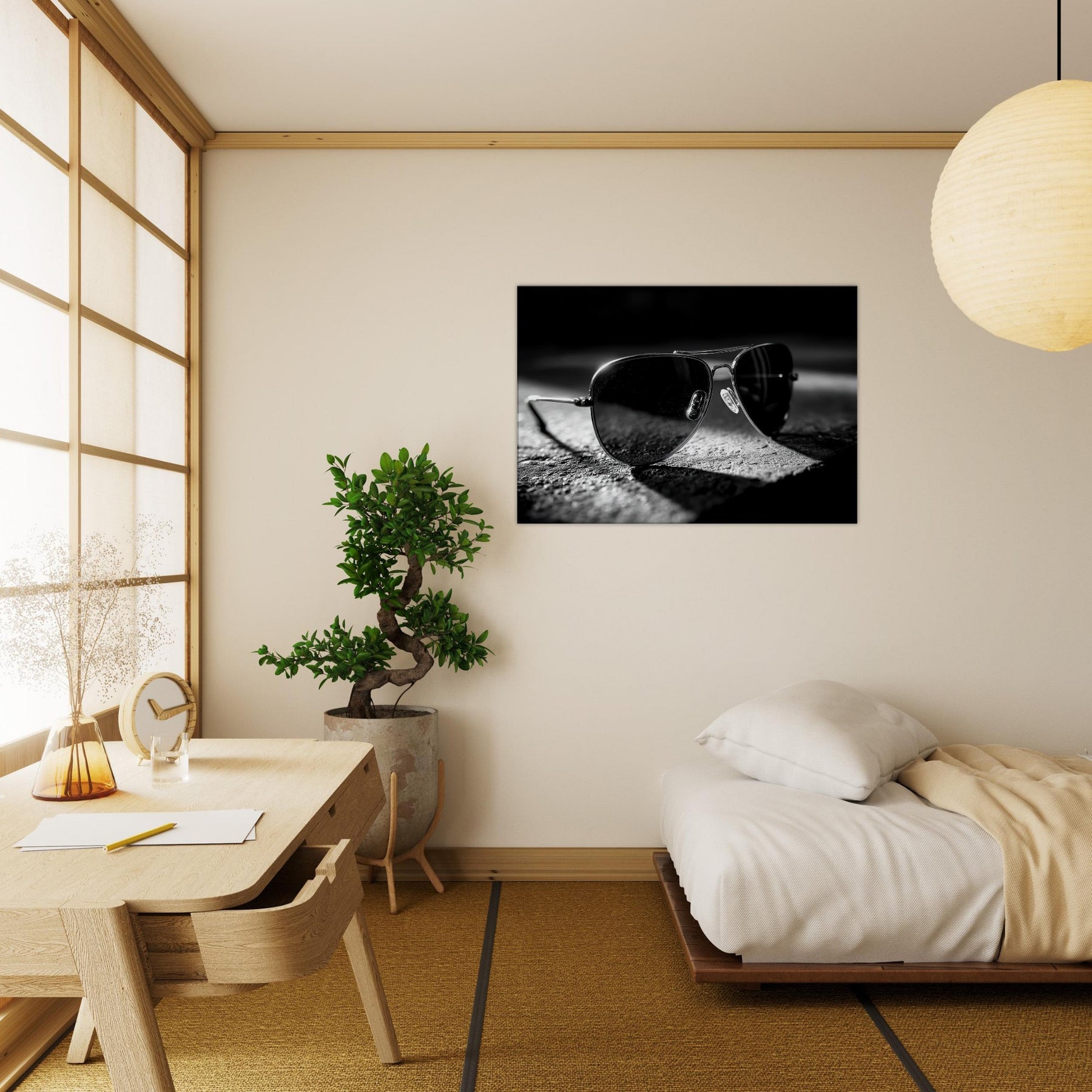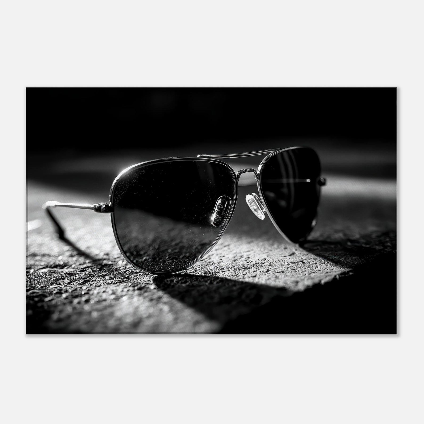 Enter a quiet moment where shadows sharpen into silhouette. This black and white study of Sunglasses invokes a cool, minimal mood that feels at once retro and contemporary.