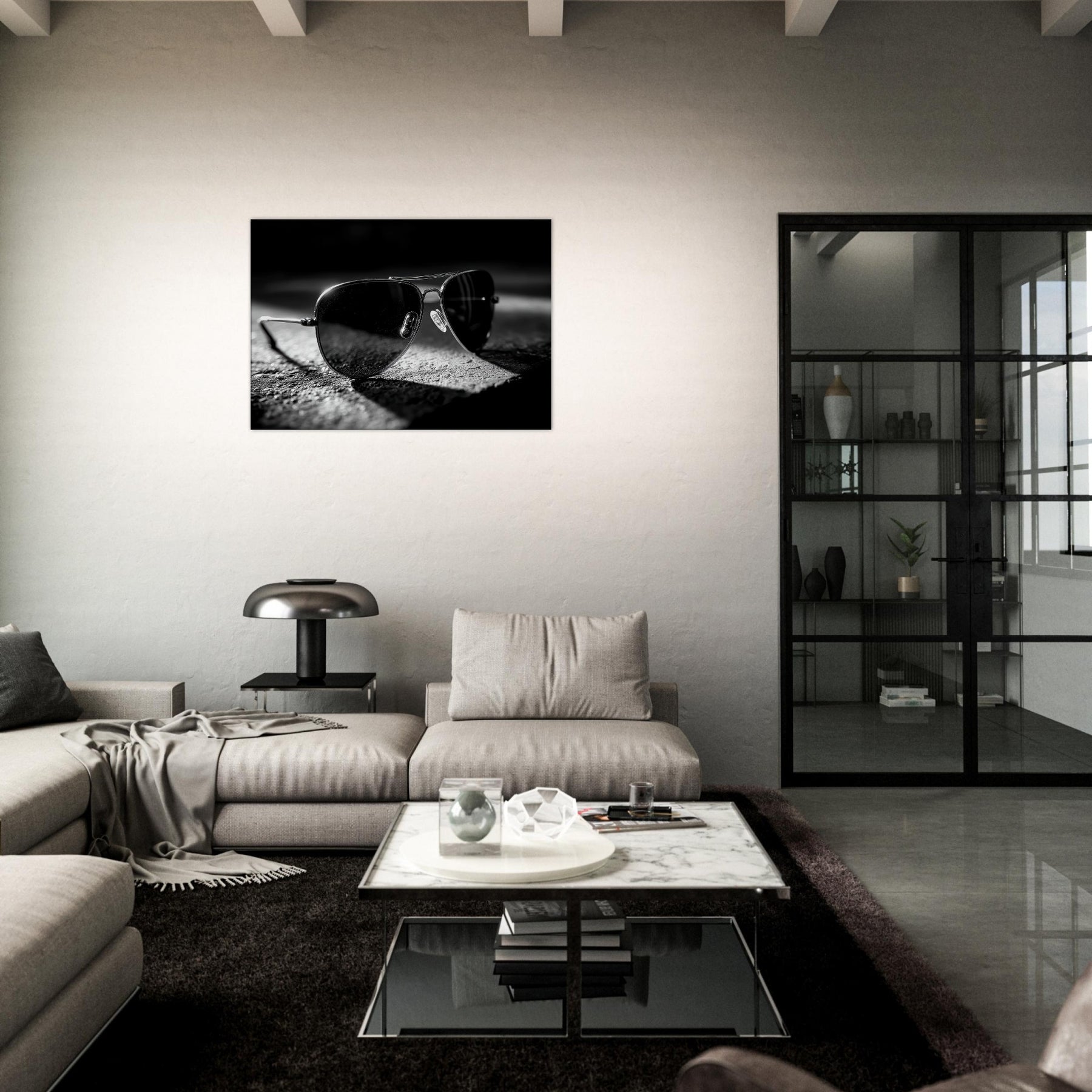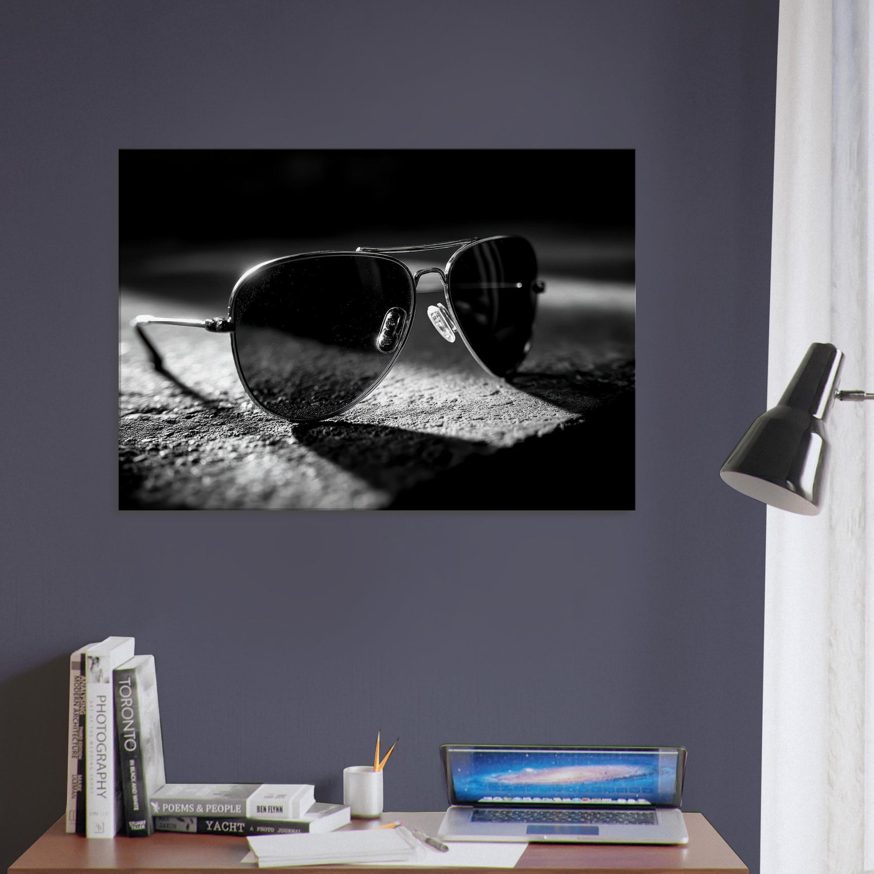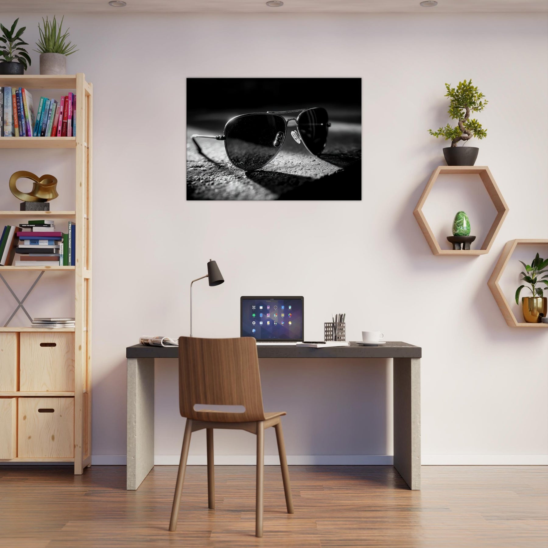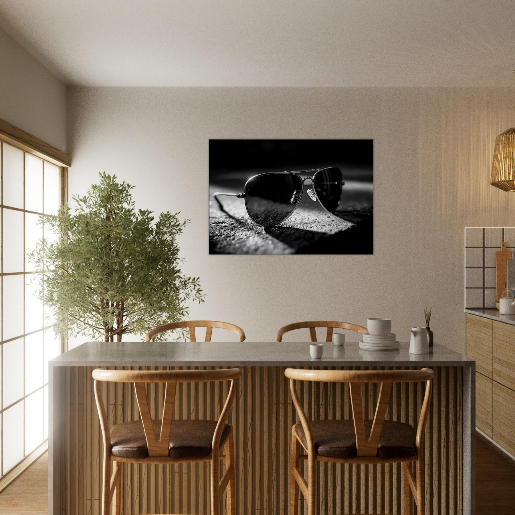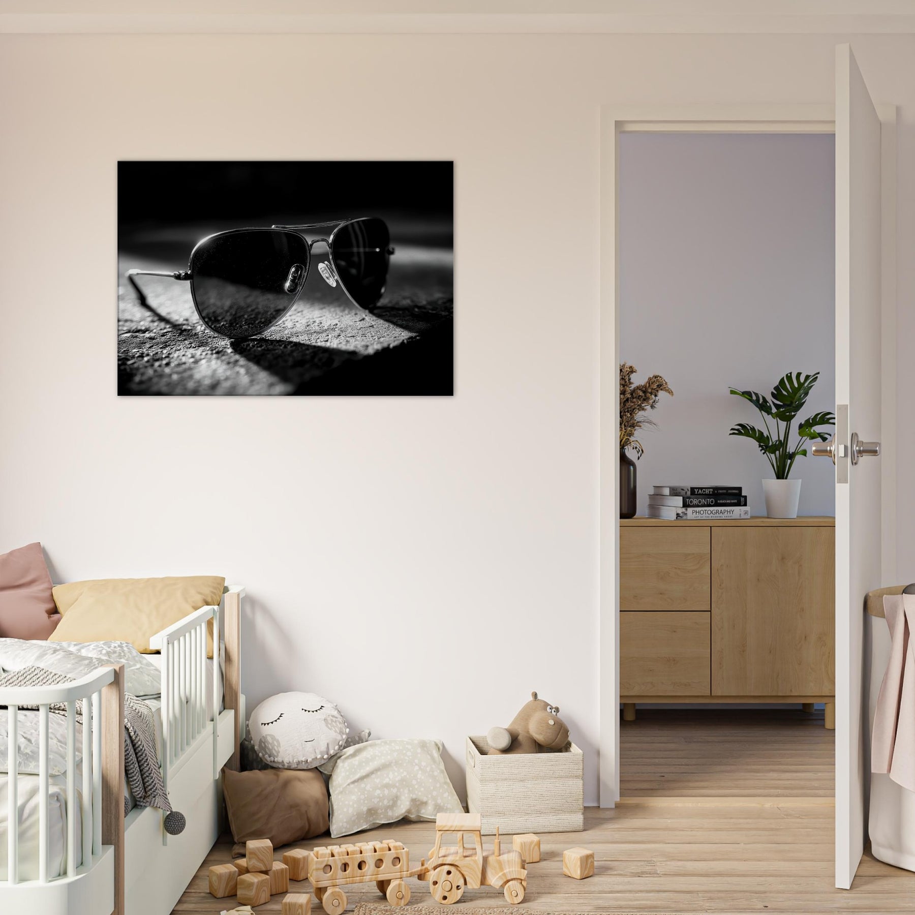 Enter a quiet moment where shadows sharpen into silhouette. This black and white study of Sunglasses invokes a cool, minimal mood that feels at once retro and contemporary.