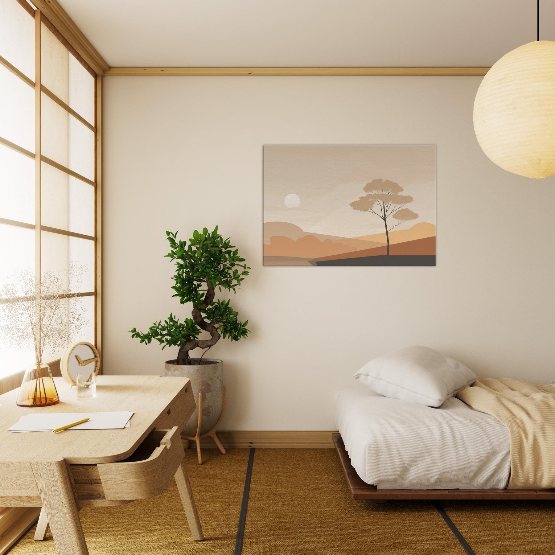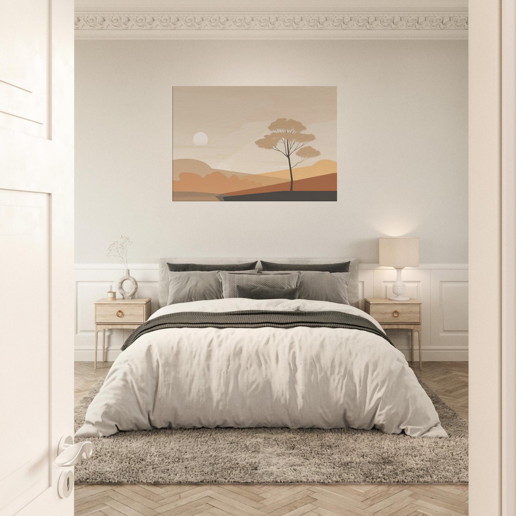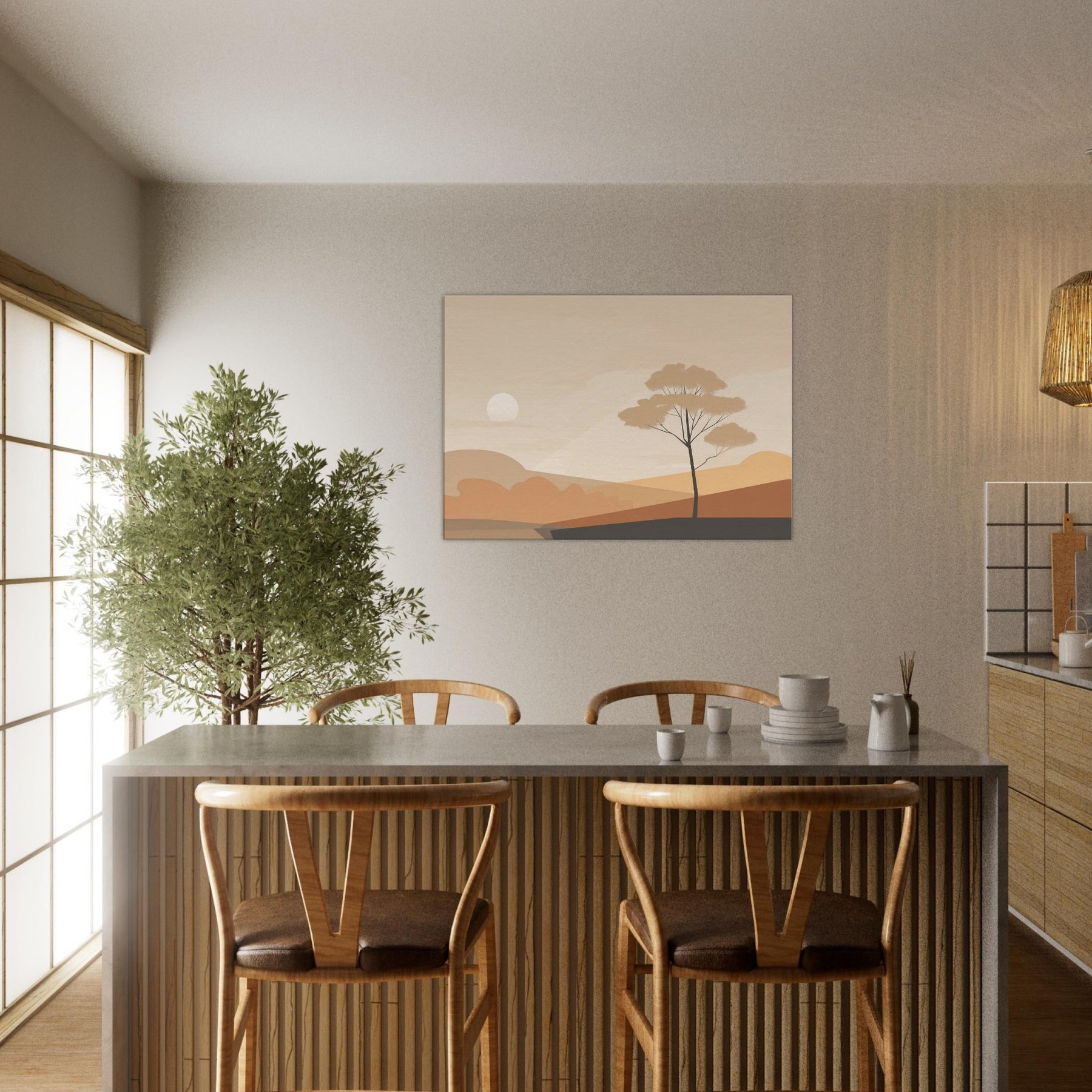 Let the warm, diffused sunset wash over your living space, a minimalist meditation in color and form. This composition floods the room with a calm, sun kissed atmosphere soft peaches, creams, and sands blending at the horizon. A solitary tree stands as a patient witness to the day’s end, inviting quiet reflection between tasks and conversations. Hang it in a living room or bedroom to soften edges, inspire peaceful evenings, and lend the space a timeless, nature inspired dignity.