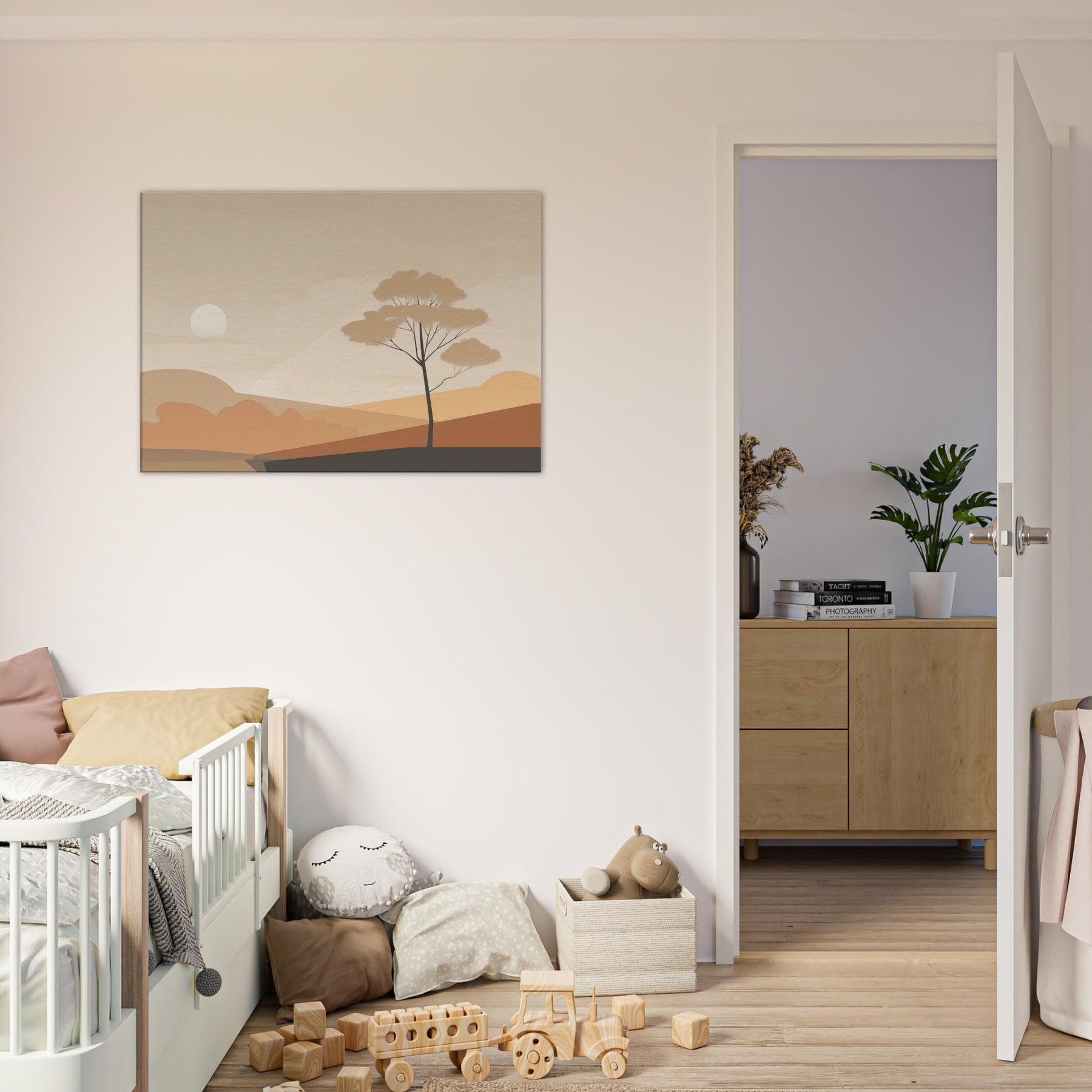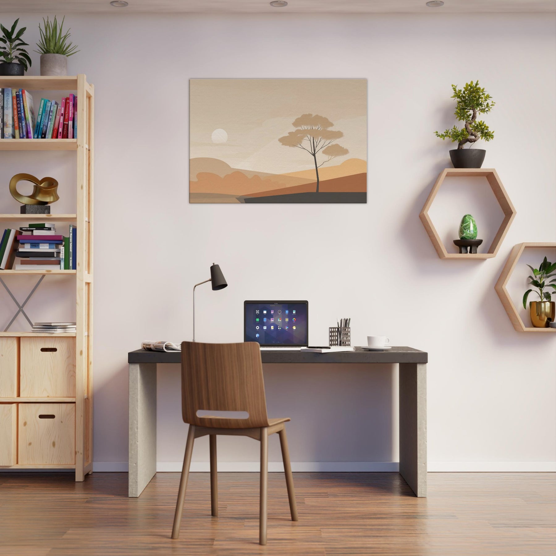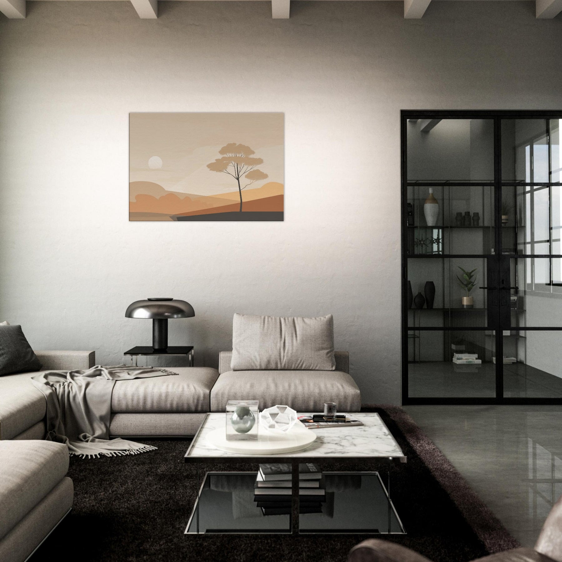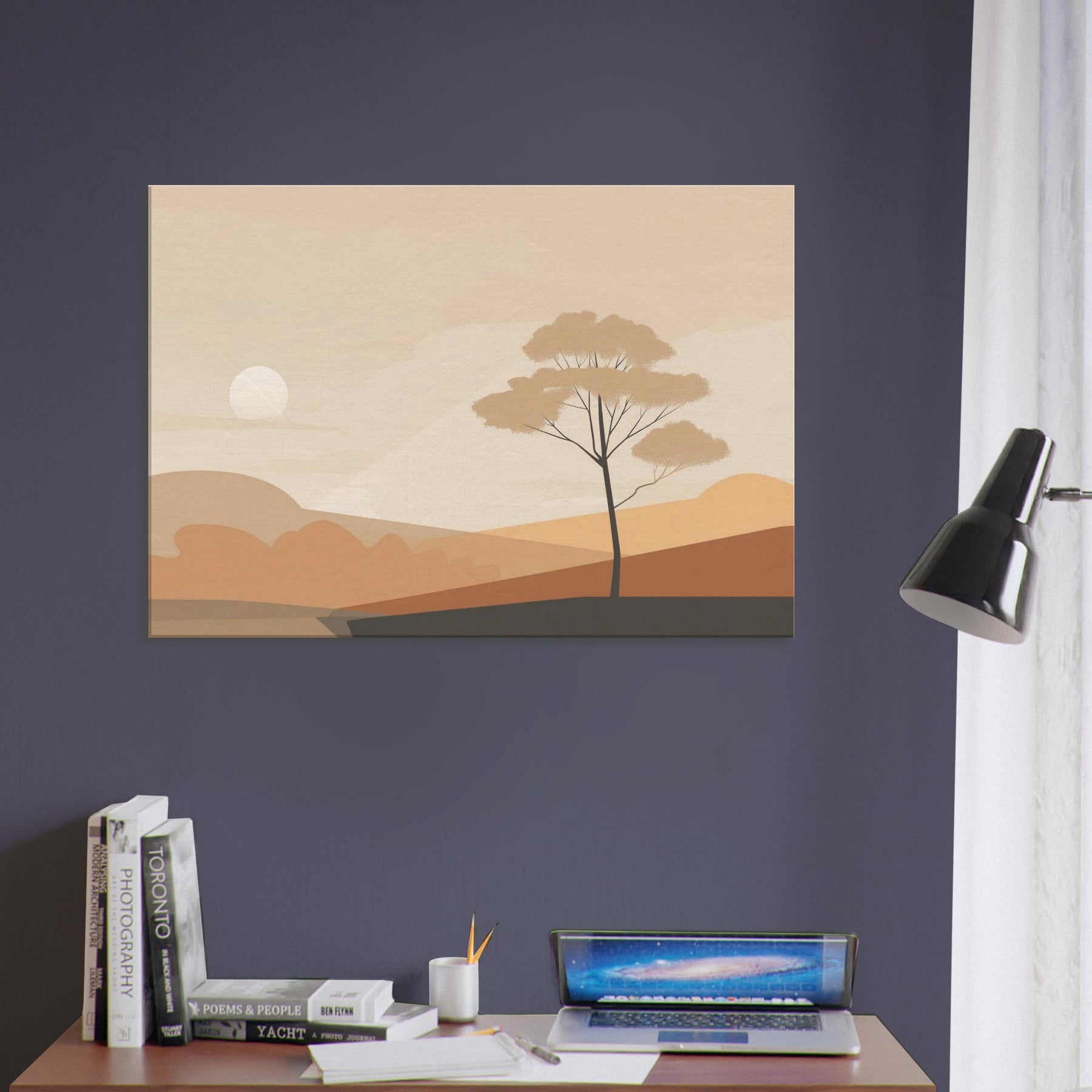 Let the warm, diffused sunset wash over your living space, a minimalist meditation in color and form. This composition floods the room with a calm, sun kissed atmosphere soft peaches, creams, and sands blending at the horizon. A solitary tree stands as a patient witness to the day’s end, inviting quiet reflection between tasks and conversations. Hang it in a living room or bedroom to soften edges, inspire peaceful evenings, and lend the space a timeless, nature inspired dignity.