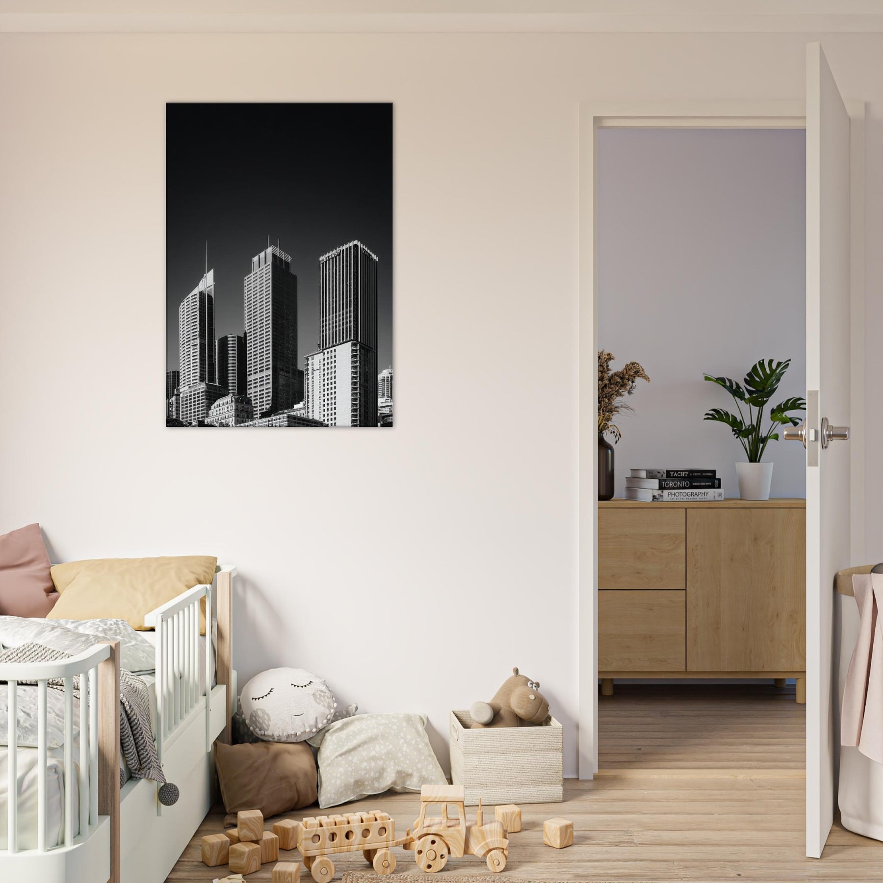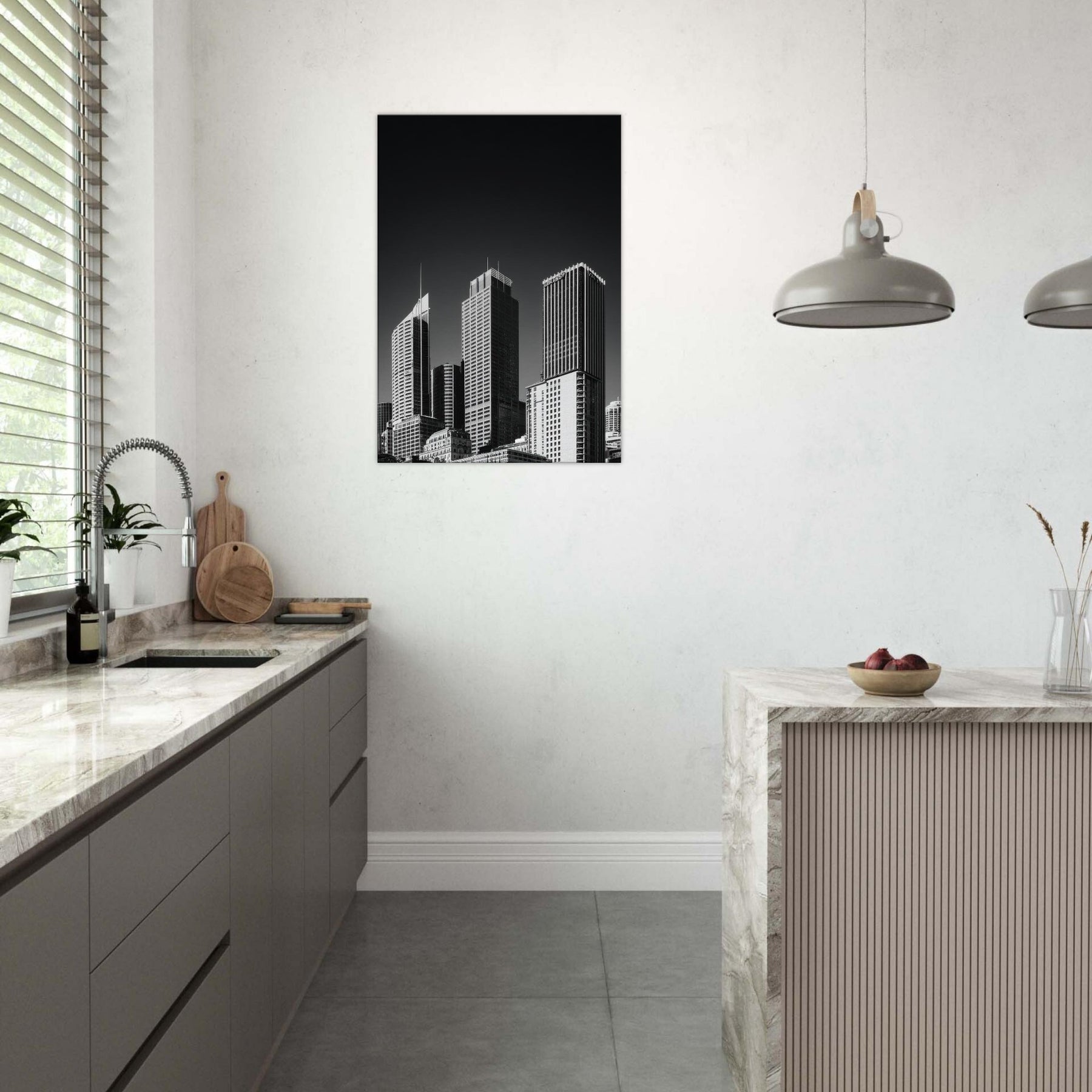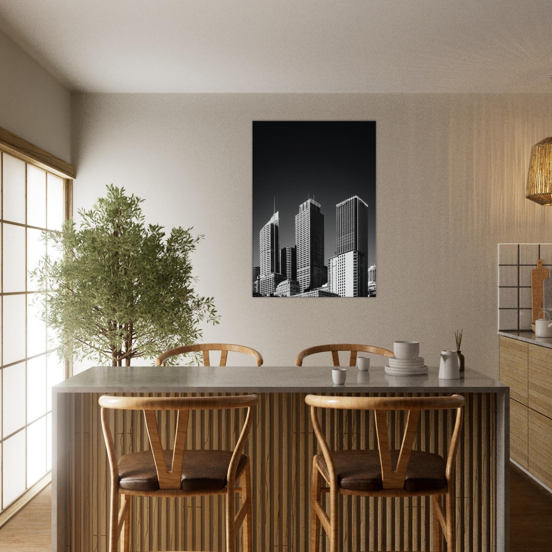 Perfect for a living area, study, or entry, it pairs effortlessly with minimal palettes and metallic accents, heightening a sense of spaciousness. A timeless reminder that urban beauty can reside in the stillness between shadows.