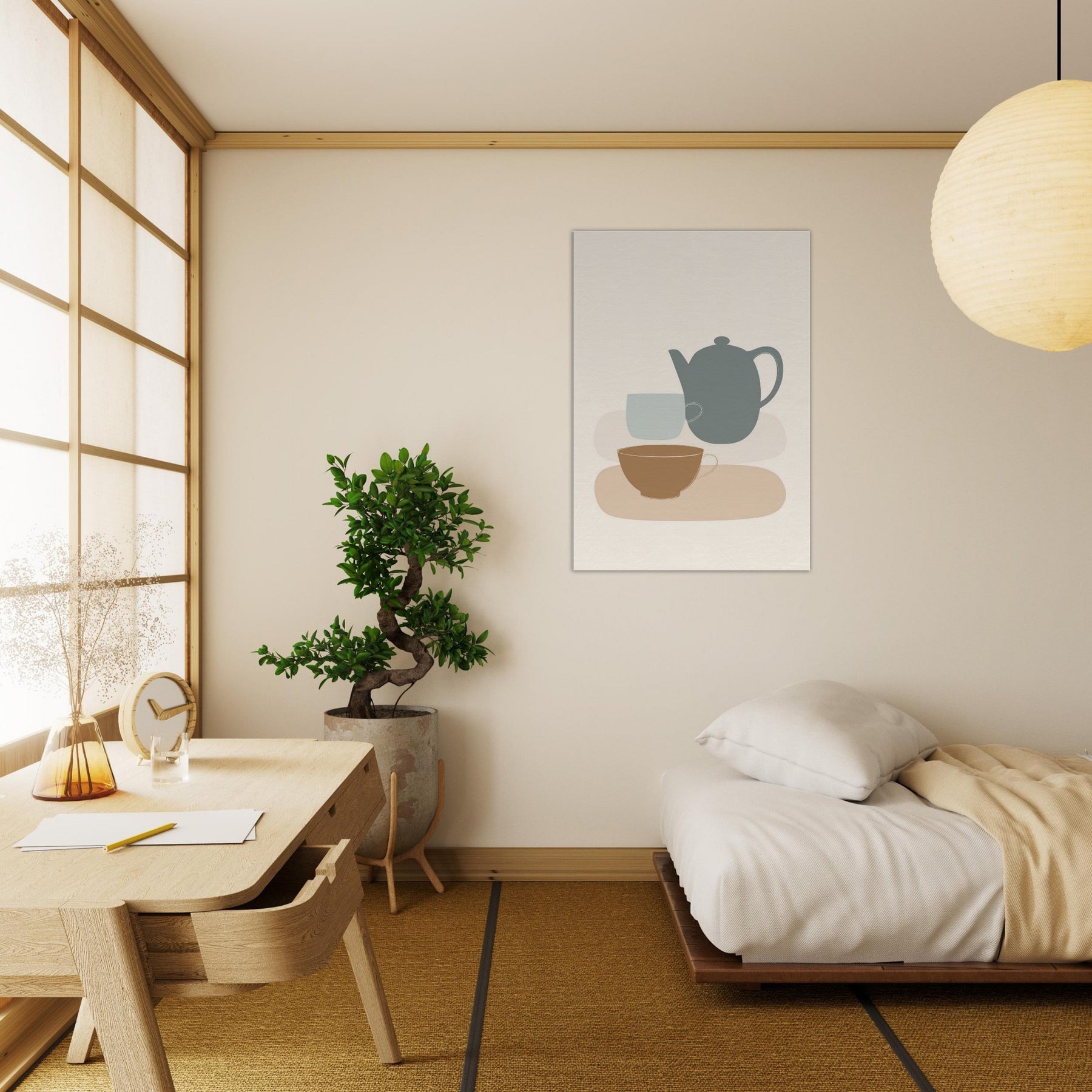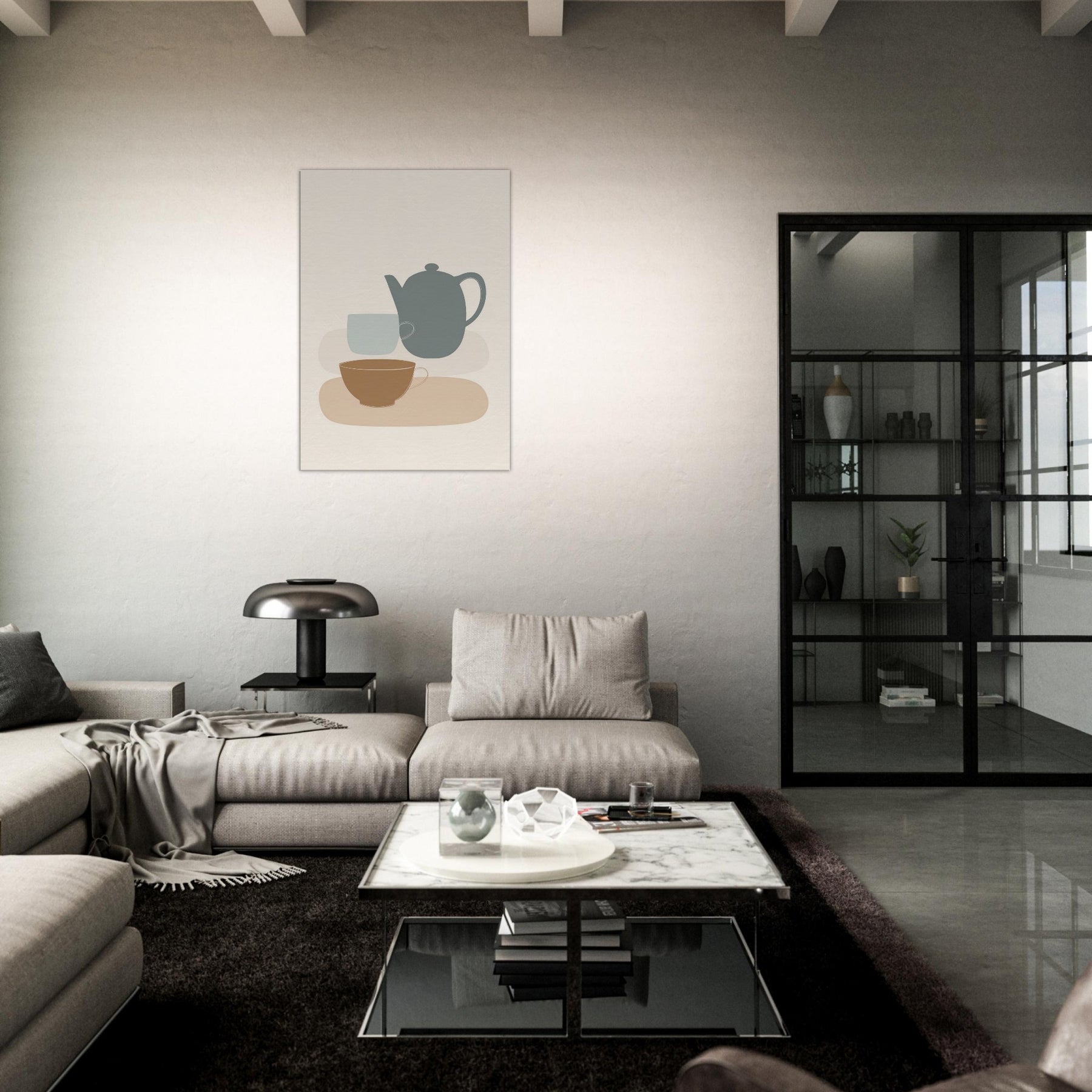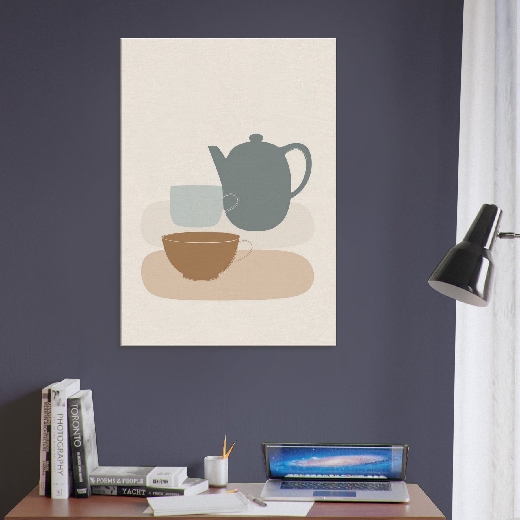 Tea Set rests in soft balance against a pale backdrop, inviting calm into any room. This minimalist composition gathers the quiet drama of everyday ritual the clink of cups, the warmth of a kettle, the hush between breaths into a serene still life you can live with. The Tea Set appears as understated silhouettes, its rounded forms and muted tones weaving into neutrals and light woods. Hang it to evoke cozy mornings, intimate conversations, and a refined, uncluttered space that feels gently alive.