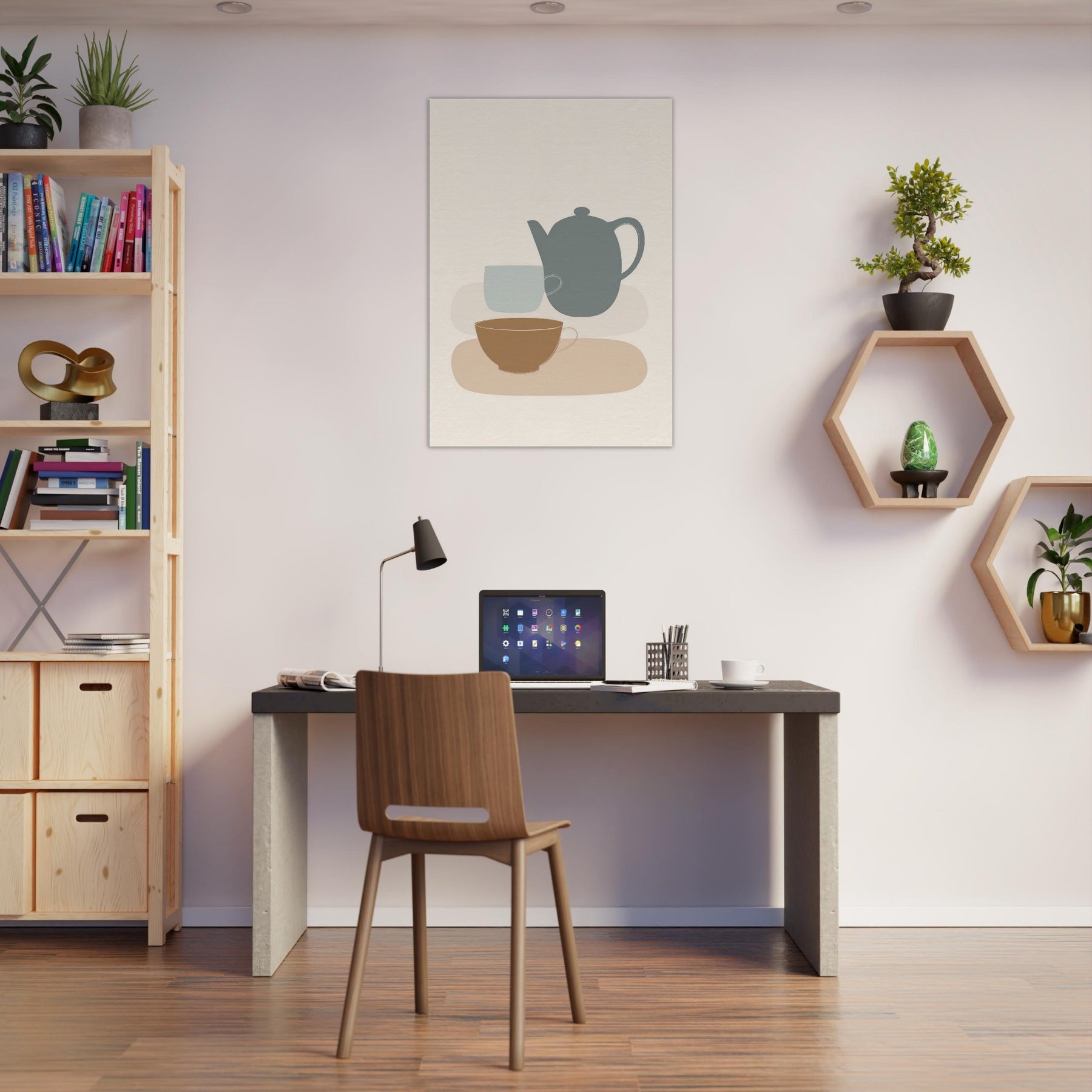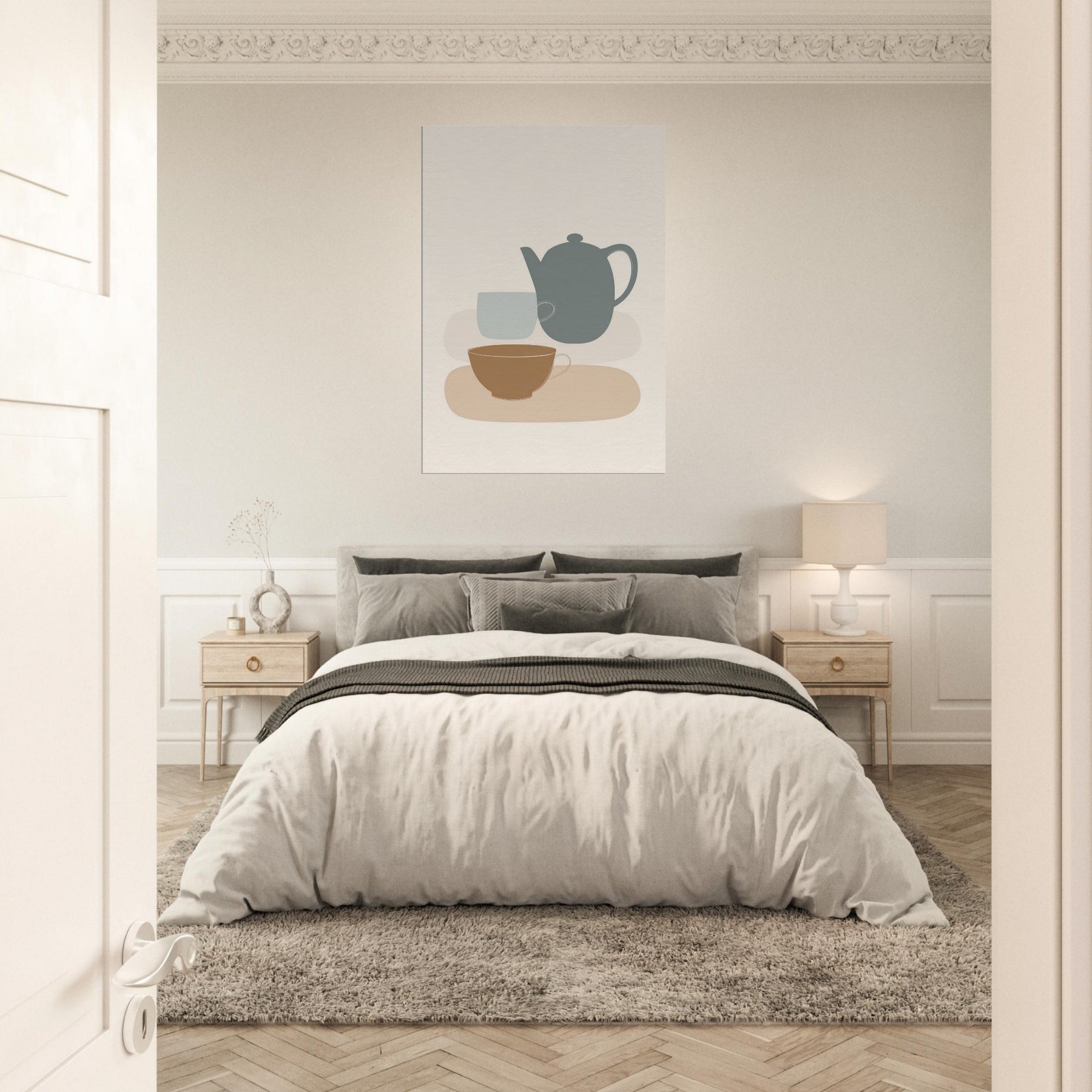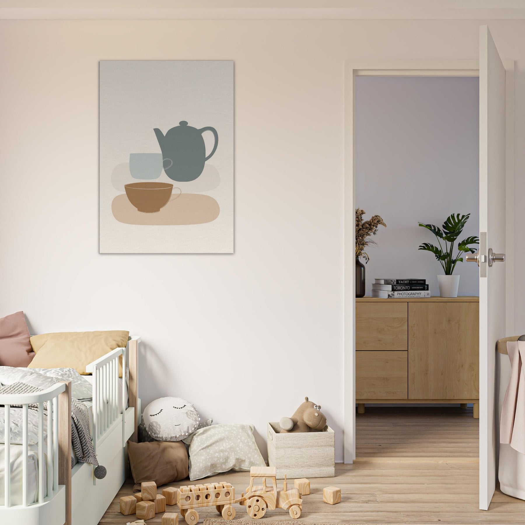 Tea Set rests in soft balance against a pale backdrop, inviting calm into any room. This minimalist composition gathers the quiet drama of everyday ritual the clink of cups, the warmth of a kettle, the hush between breaths into a serene still life you can live with. The Tea Set appears as understated silhouettes, its rounded forms and muted tones weaving into neutrals and light woods. Hang it to evoke cozy mornings, intimate conversations, and a refined, uncluttered space that feels gently alive.