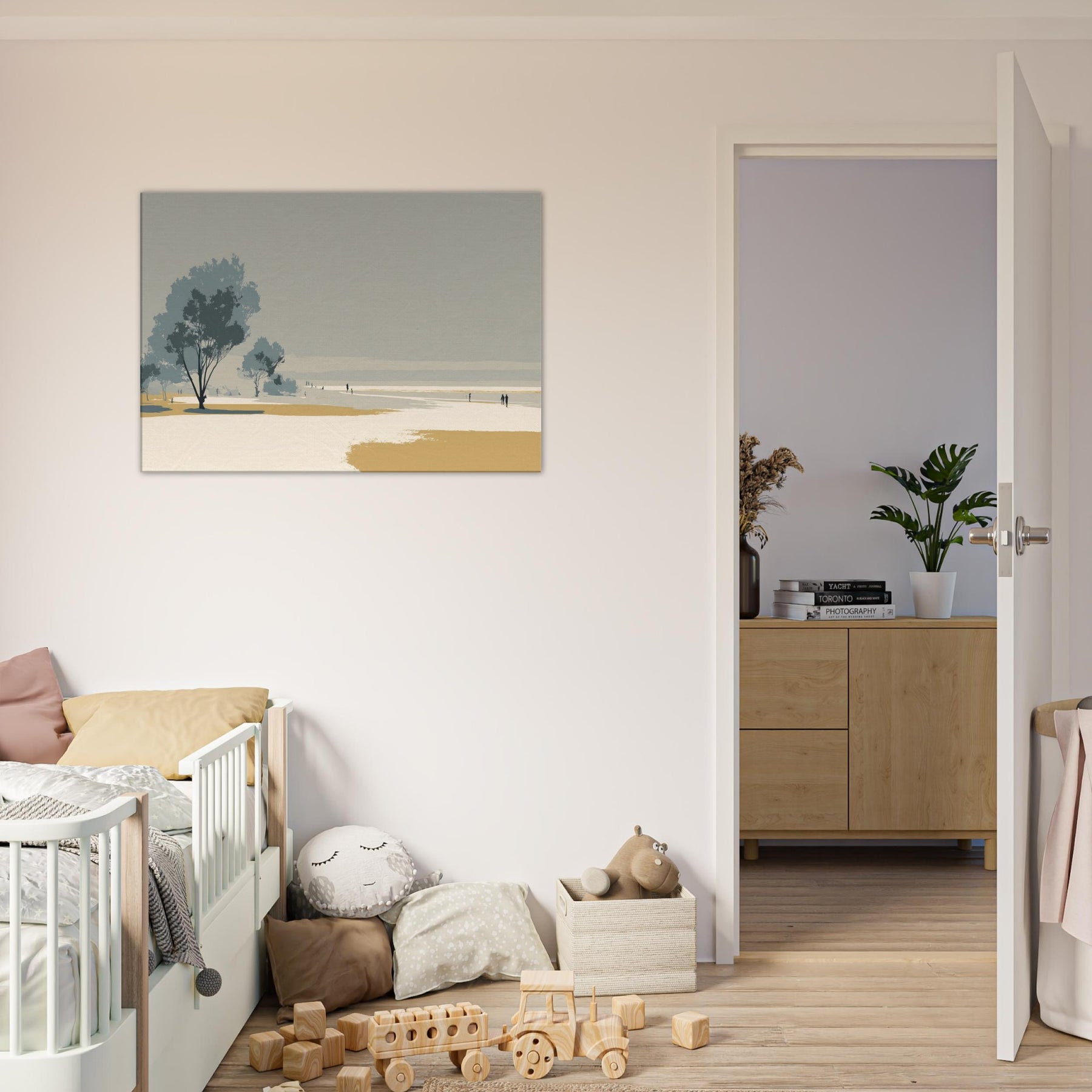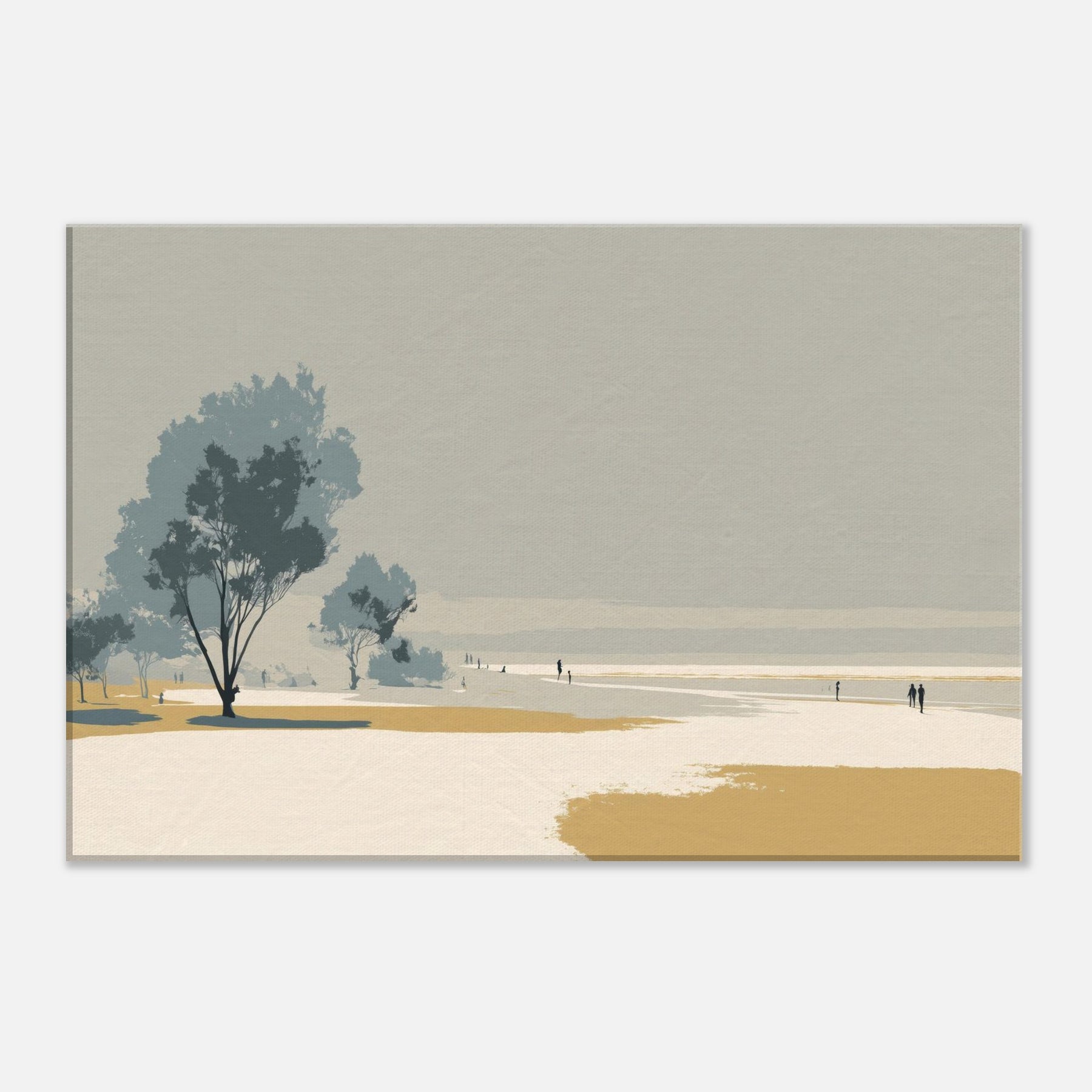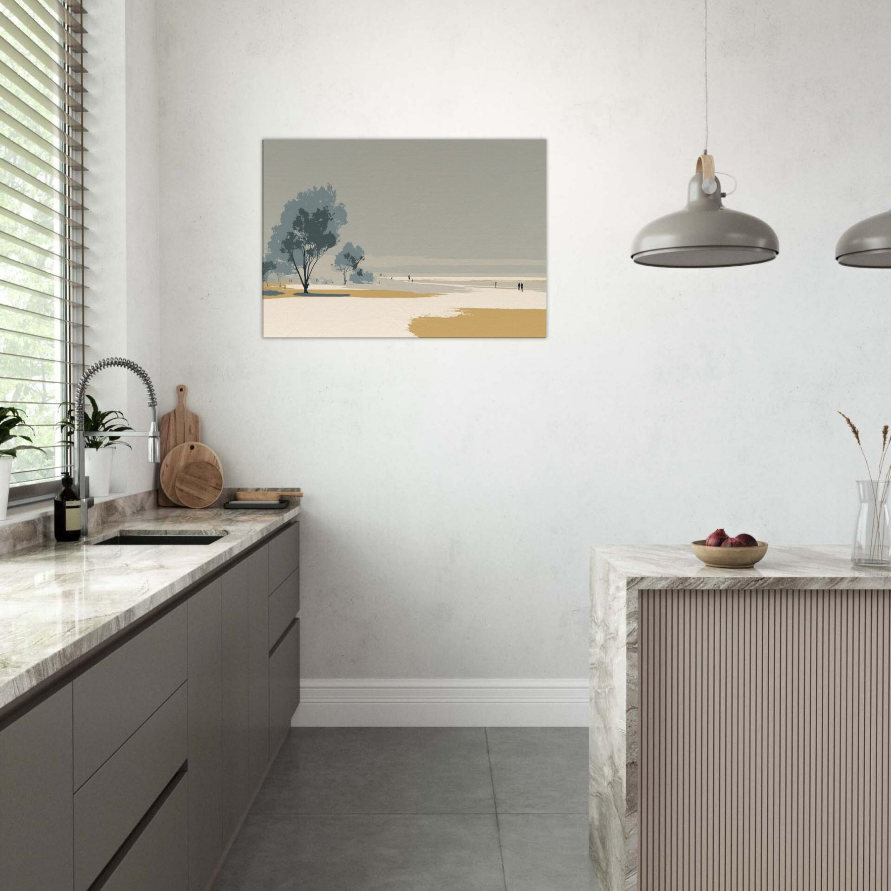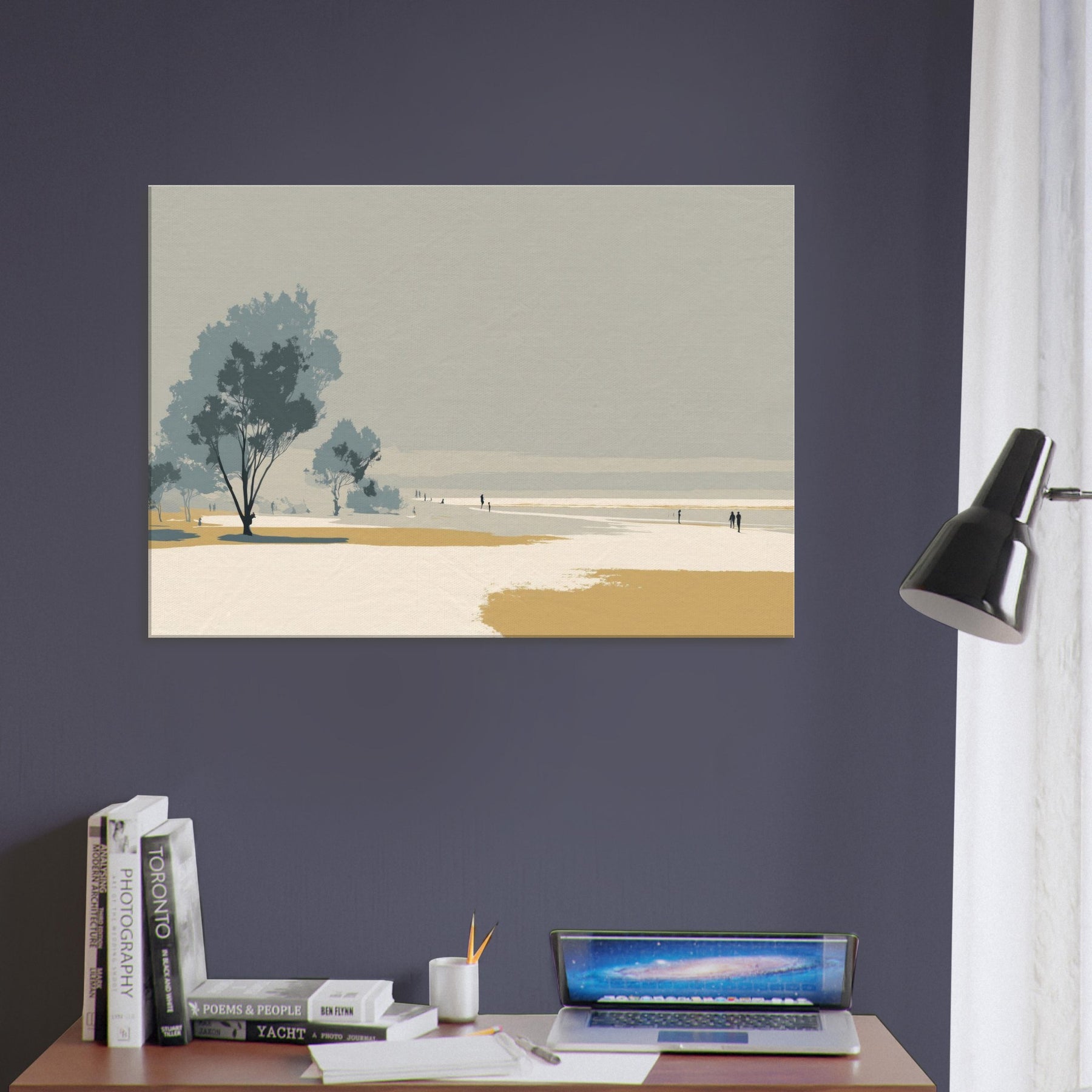 Let the Beach Minimalist scene wash your room in quiet light. Soft silhouettes of trees stand as gentle anchors along a sunlit shore, while expansive horizons invite the mind to rest. The restrained palette sand, sea gray, and muted blue whispers calm and clean, shaping a serene backdrop for conversation or contemplation. This artwork invites a sense of open air, turning a living space into a coastal retreat where every glance carries a breath of the sea.