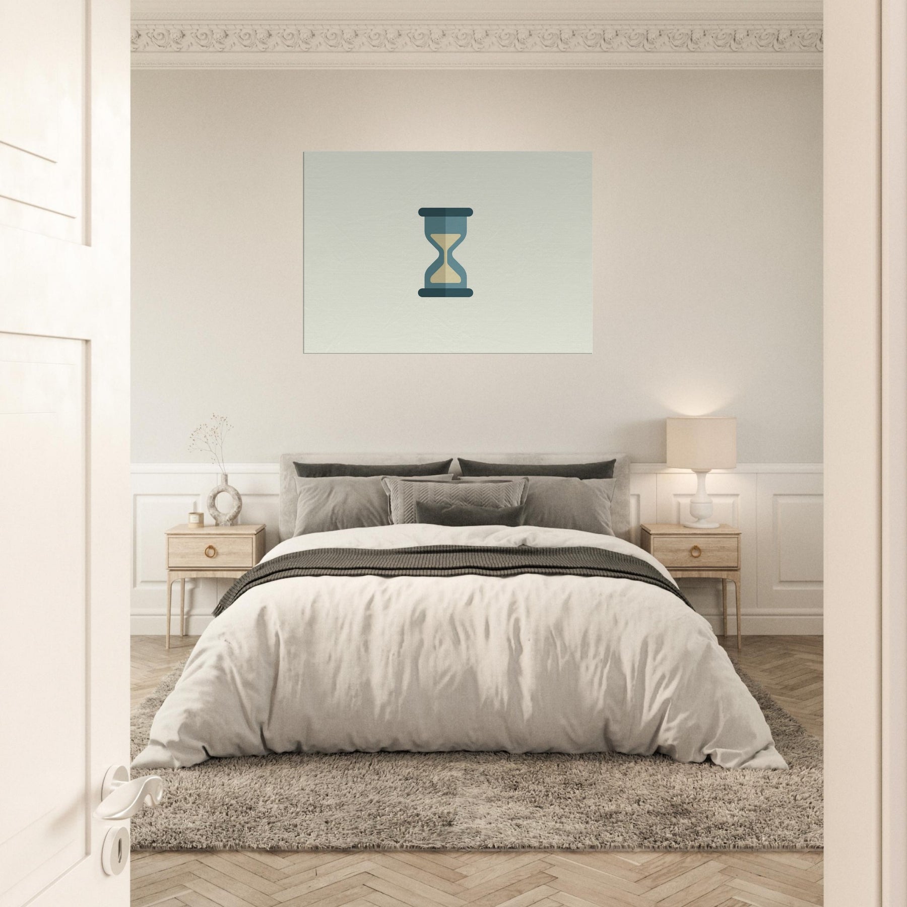An elegant Hourglass rests within a quiet, sunlit frame of negative space. This minimalist study of time dissolves into soft blue and sand tones, inviting you to breathe with its measured cadence. The Hourglass becomes a calm companion in a living room or study, catching the eye without shouting. Its balanced silhouette adds architectural calm to the wall, turning daily rituals into a contemplative ritual moments stretched, minutes slowed, a space to pause, reflect, and dream.