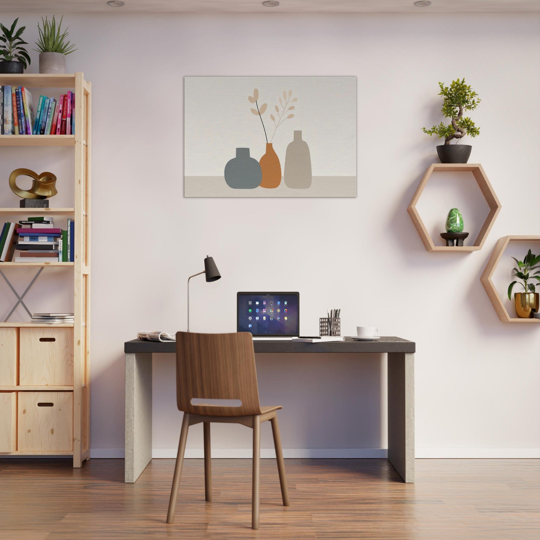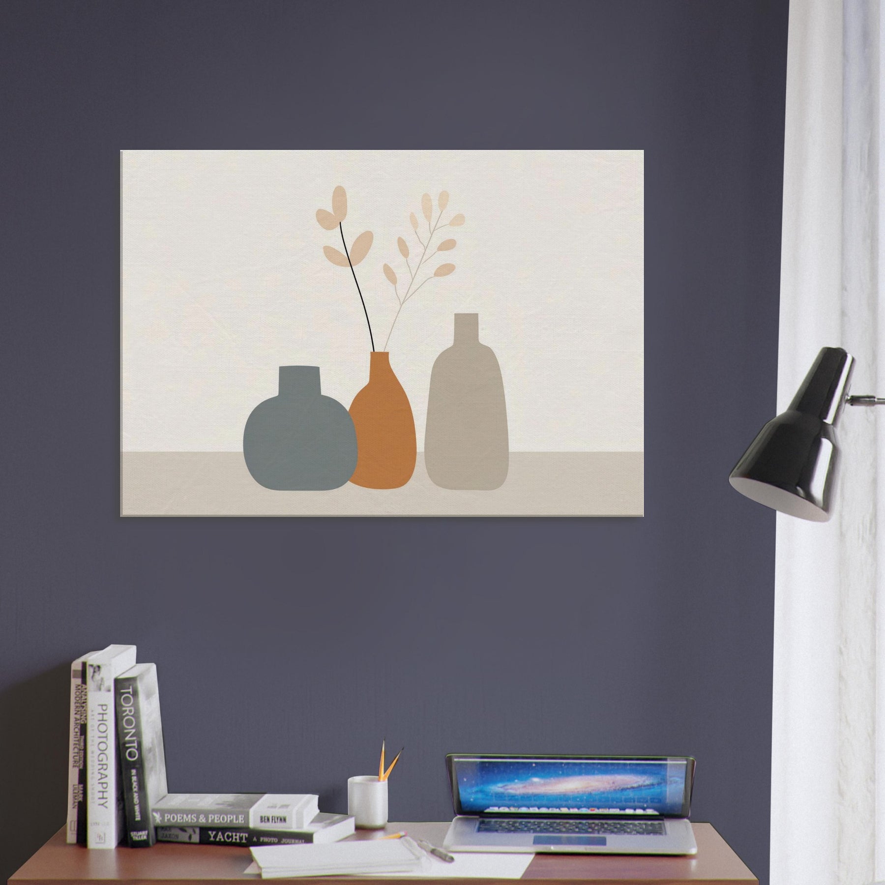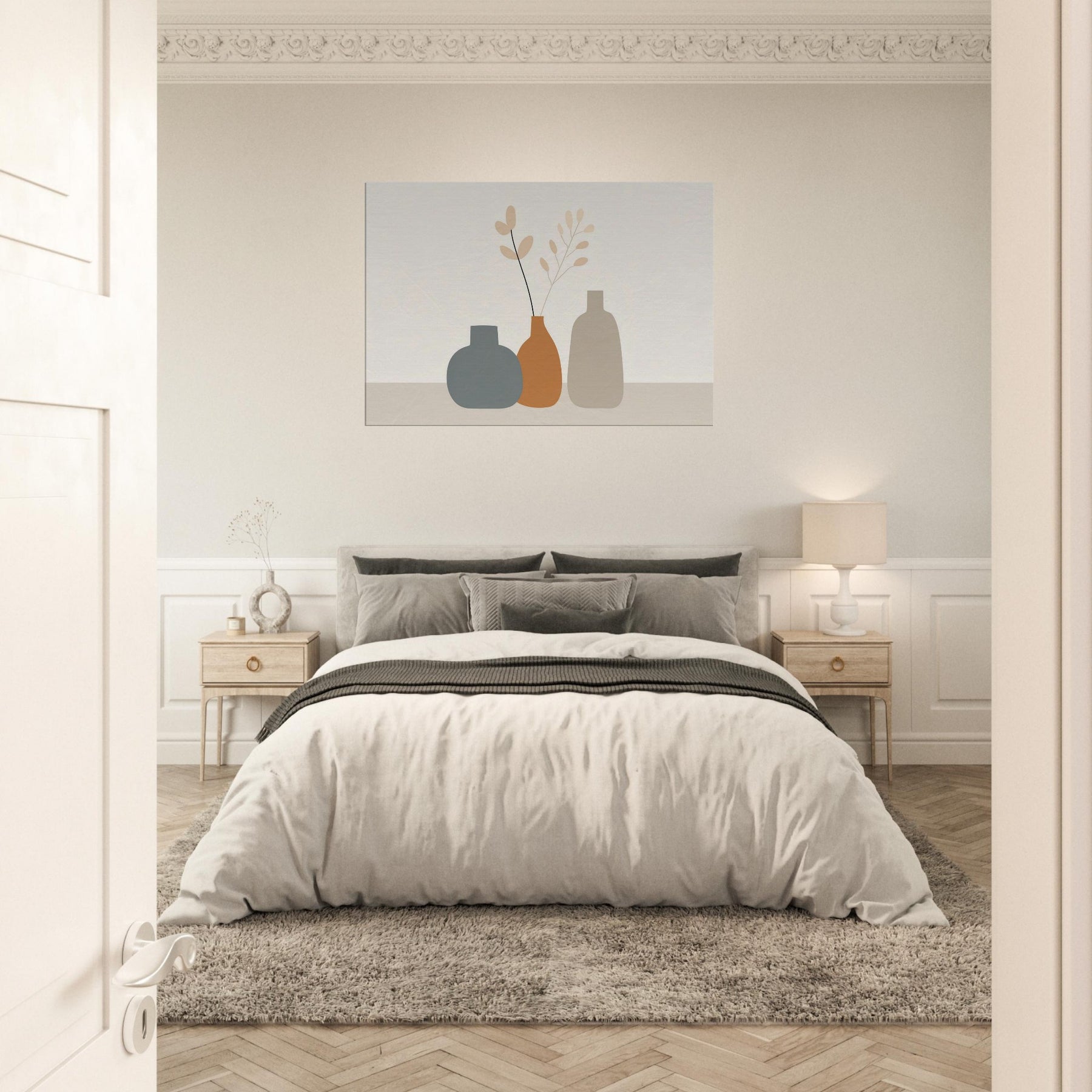 Vase Trio rests on a quiet tabletop, a study in soft forms and restrained color. The three silhouettes converse in muted earth tones, inviting a moment of pause and reflection. This composition casts a calm glow across the room, turning a simple corner into a sanctuary of balance and grace. Perfect above a console or in a bedroom nook, Vase Trio elevates everyday spaces with quiet charm and tactile warmth, encouraging slower, more intentional living.