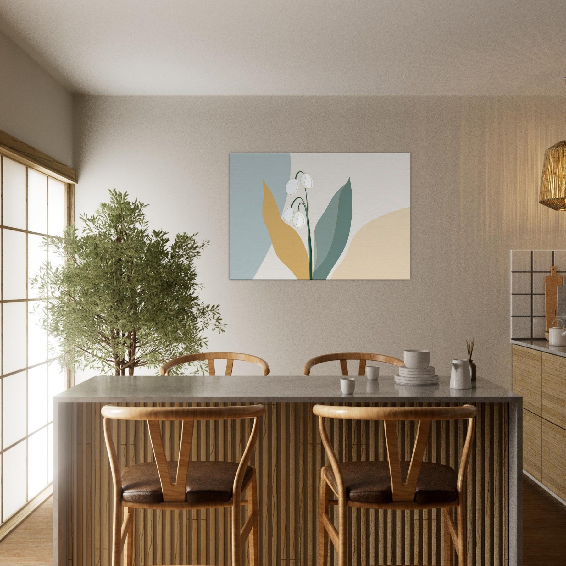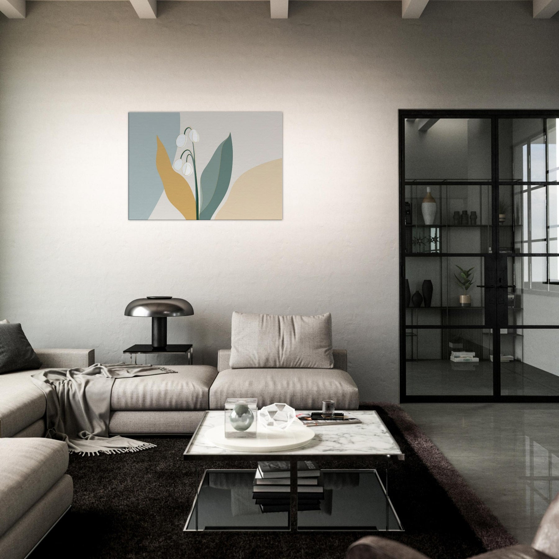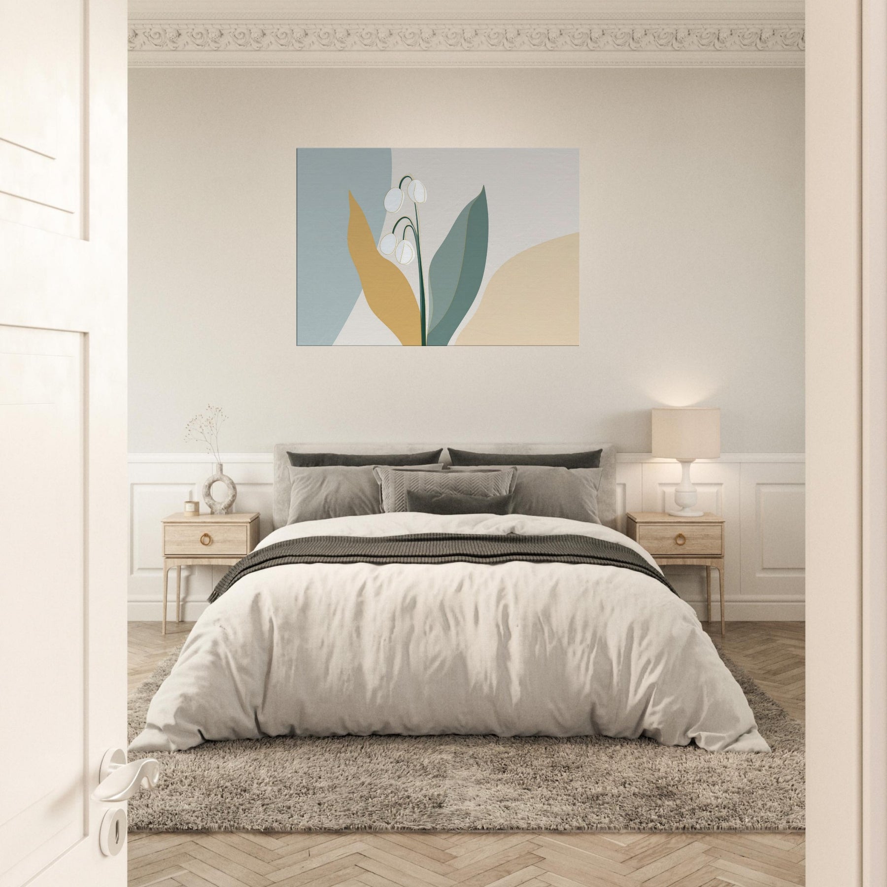 Breathing with a quiet, understated rhythm, this Lily of the Valley study invites calm into any room. The minimalist composition reduces nature to essential shapes soft bells, slender stems, and curving leaves in a soothing palette of sage, ivory, and warm sand. The result is a serene focal point that breathes light and space, guiding the eye without shouting. Perfect over a sofa, bedside, or entryway, it softens the atmosphere and makes daily life feel a touch more deliberate and delightful.