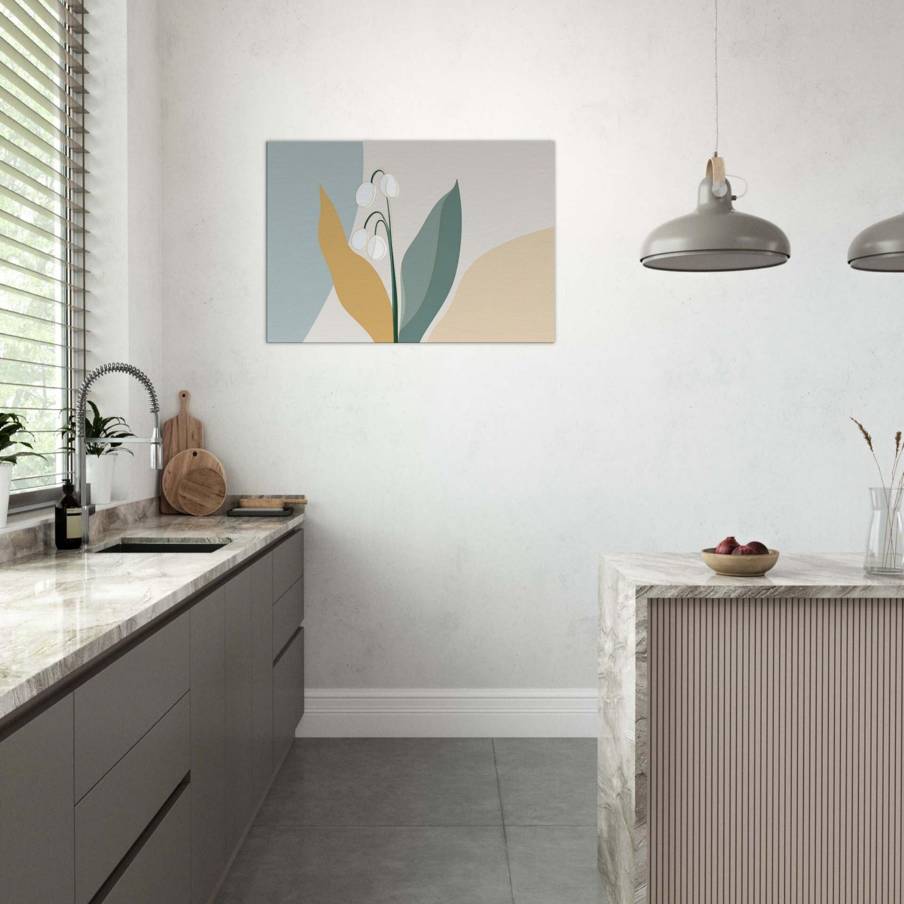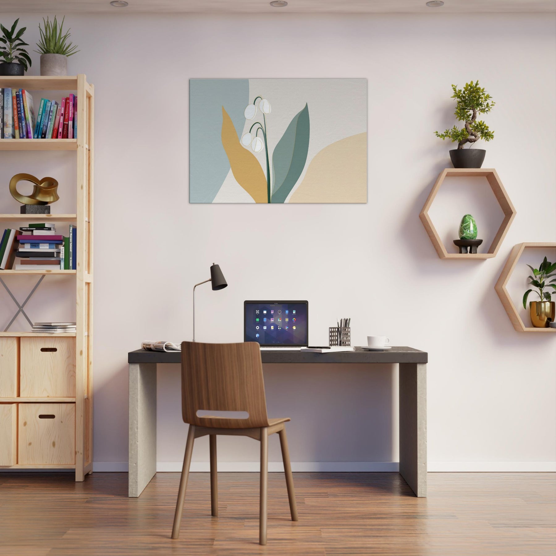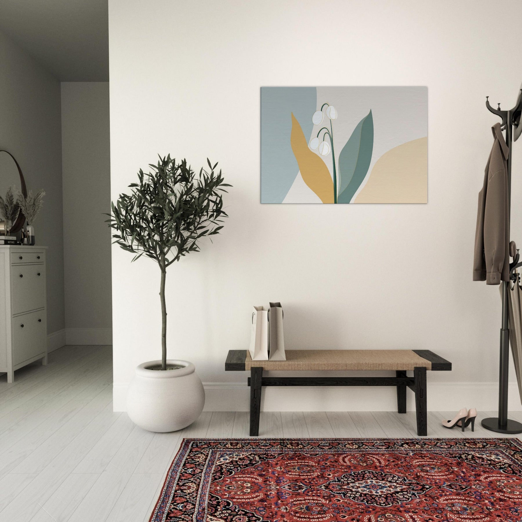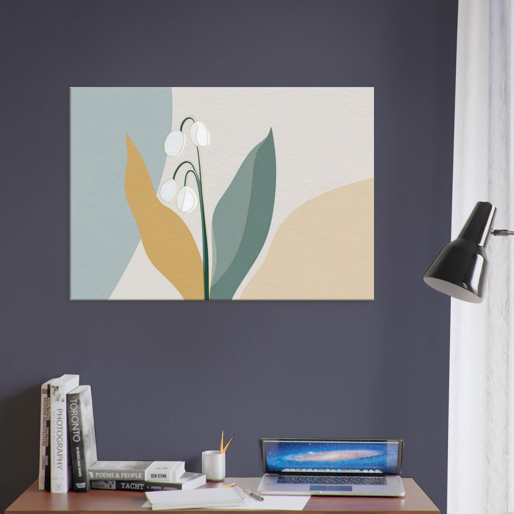 Breathing with a quiet, understated rhythm, this Lily of the Valley study invites calm into any room. The minimalist composition reduces nature to essential shapes soft bells, slender stems, and curving leaves in a soothing palette of sage, ivory, and warm sand. The result is a serene focal point that breathes light and space, guiding the eye without shouting. Perfect over a sofa, bedside, or entryway, it softens the atmosphere and makes daily life feel a touch more deliberate and delightful.