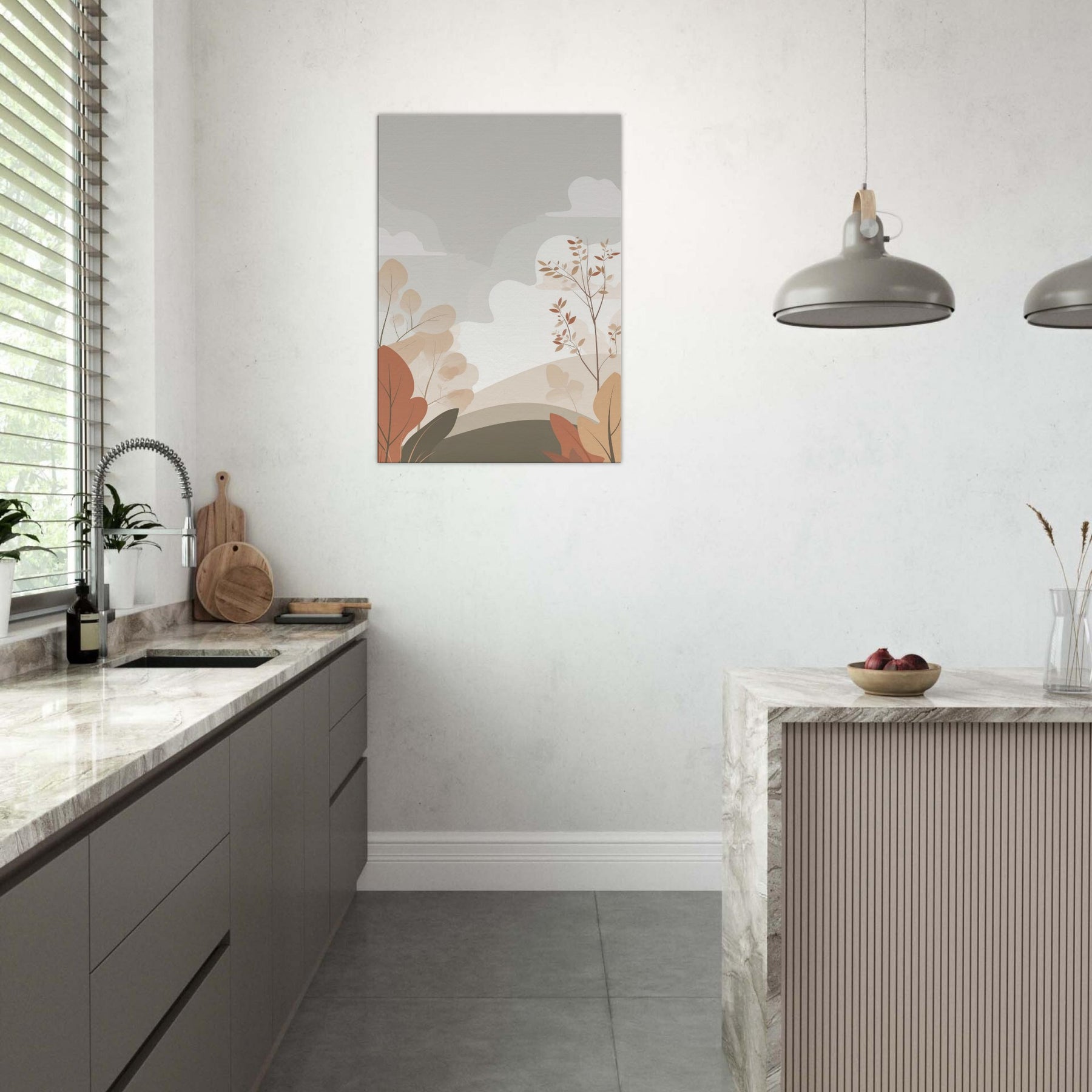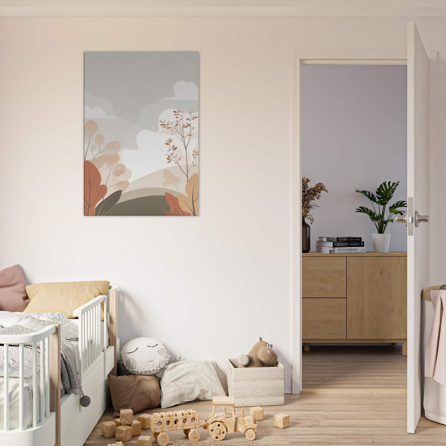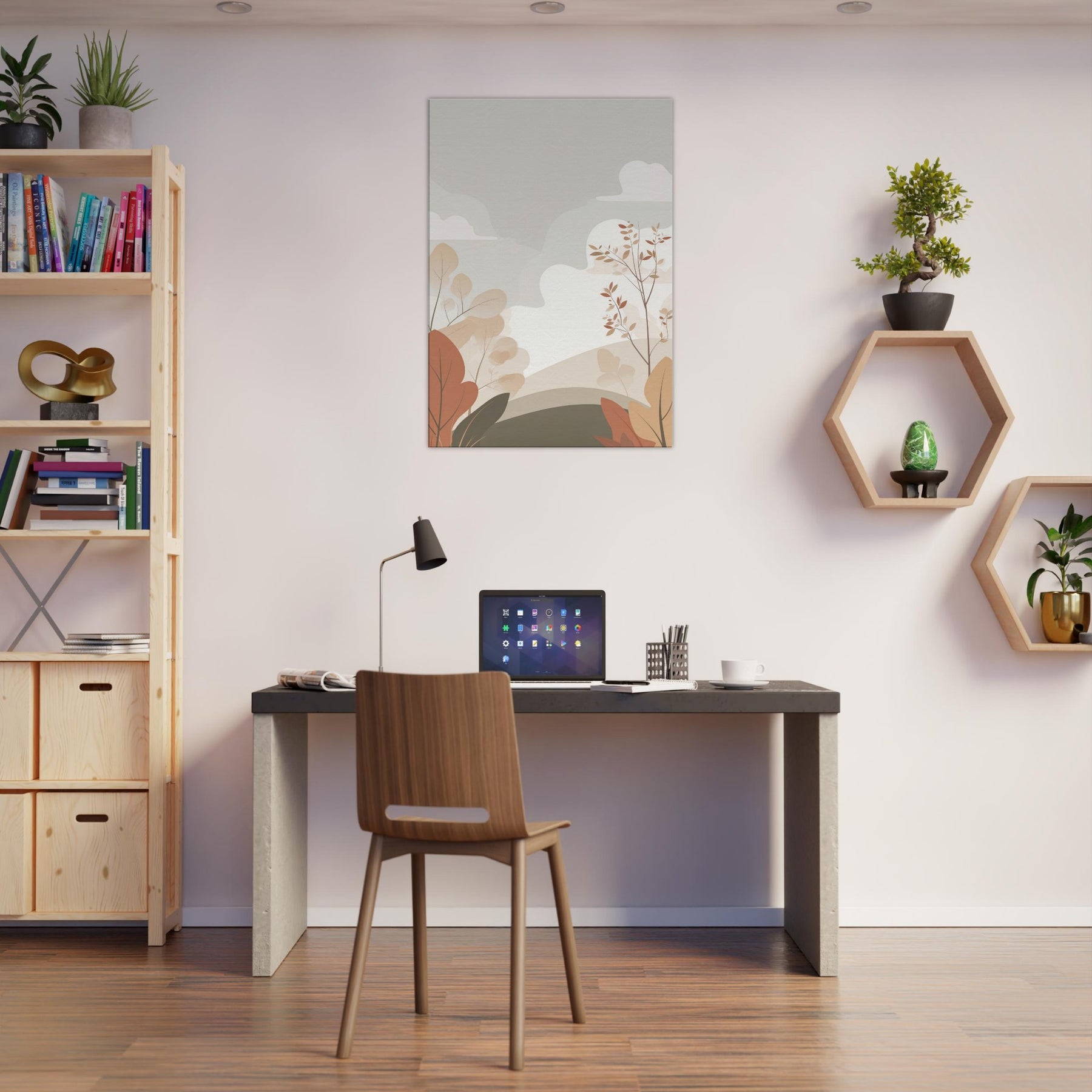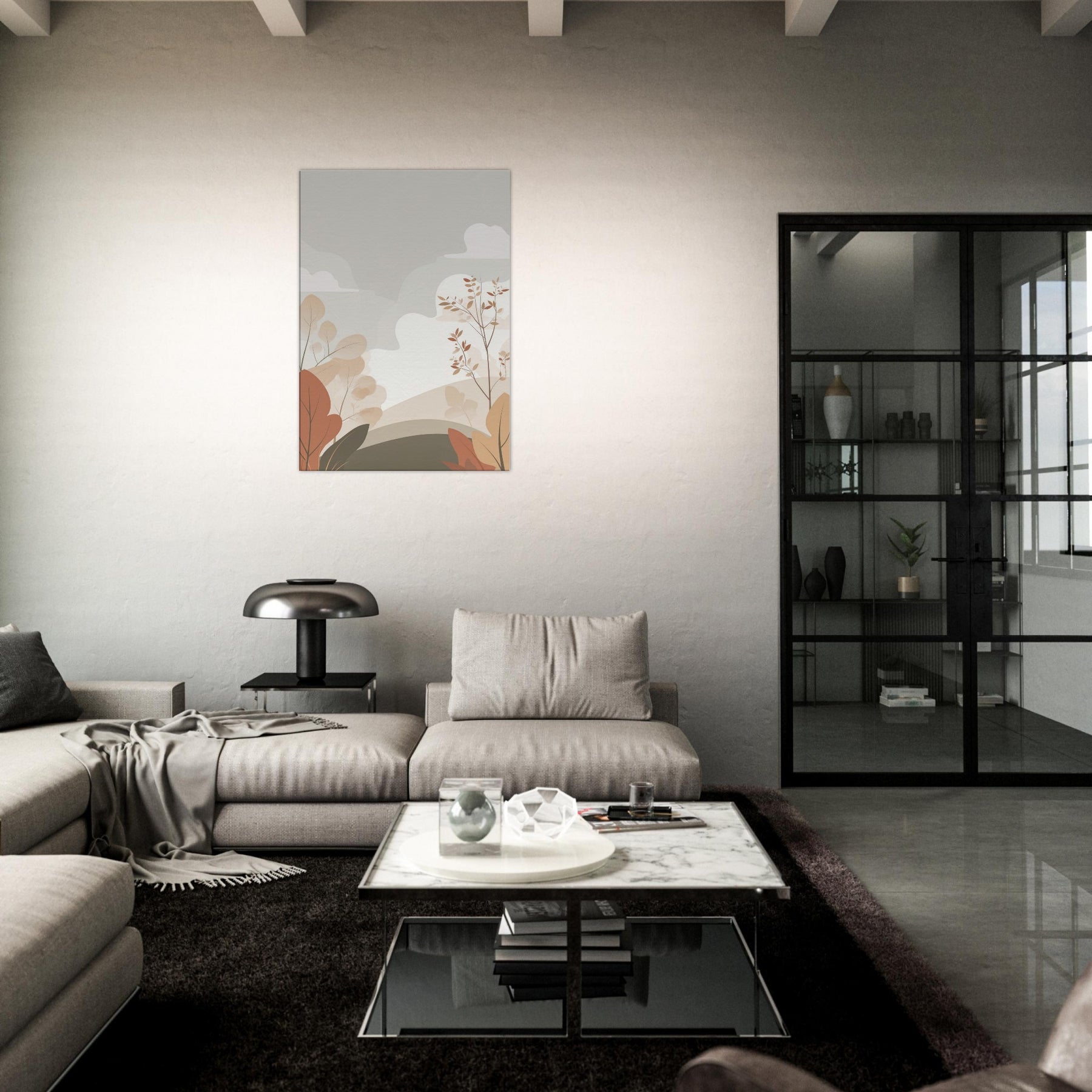 Vineyard unfolds in a tranquil morning, where soft ochre and sage drift over muted hills. This minimalist study of nature captures light kissing leaves, inviting quiet reflection in any living space. The Vineyard is rendered in gentle silhouettes and warm earth tones, creating room to breathe and dream. Hang it above a sofa or in a corridor to awaken calm, connection to the outdoors, and a subtle sense of spacious serenity.