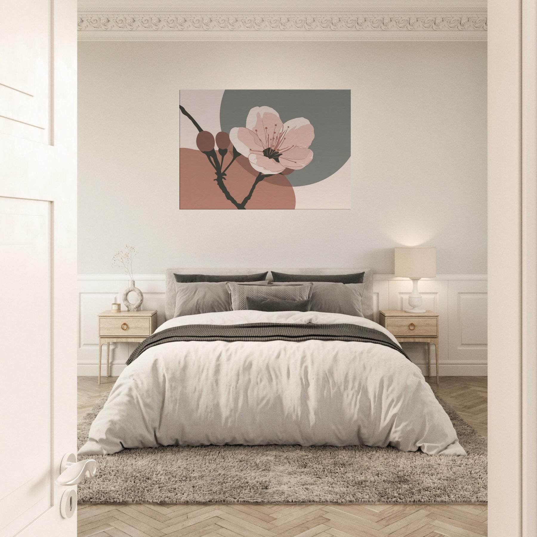 Cherry Blossom Minimalist Wall Art invites a quiet, sunlit moment into any room. Delicate petals unfurl in soft blush and pale ivory, set against warm earth tones and a calm, muted backdrop. The restrained composition invites light to linger, making a living space feel more open and contemplative. Perfect above a sofa or beside an entryway, this piece becomes a breath of nature subtle, refined, and soothing drawing the eye with a single, graceful gesture that echoes the season's renewal.