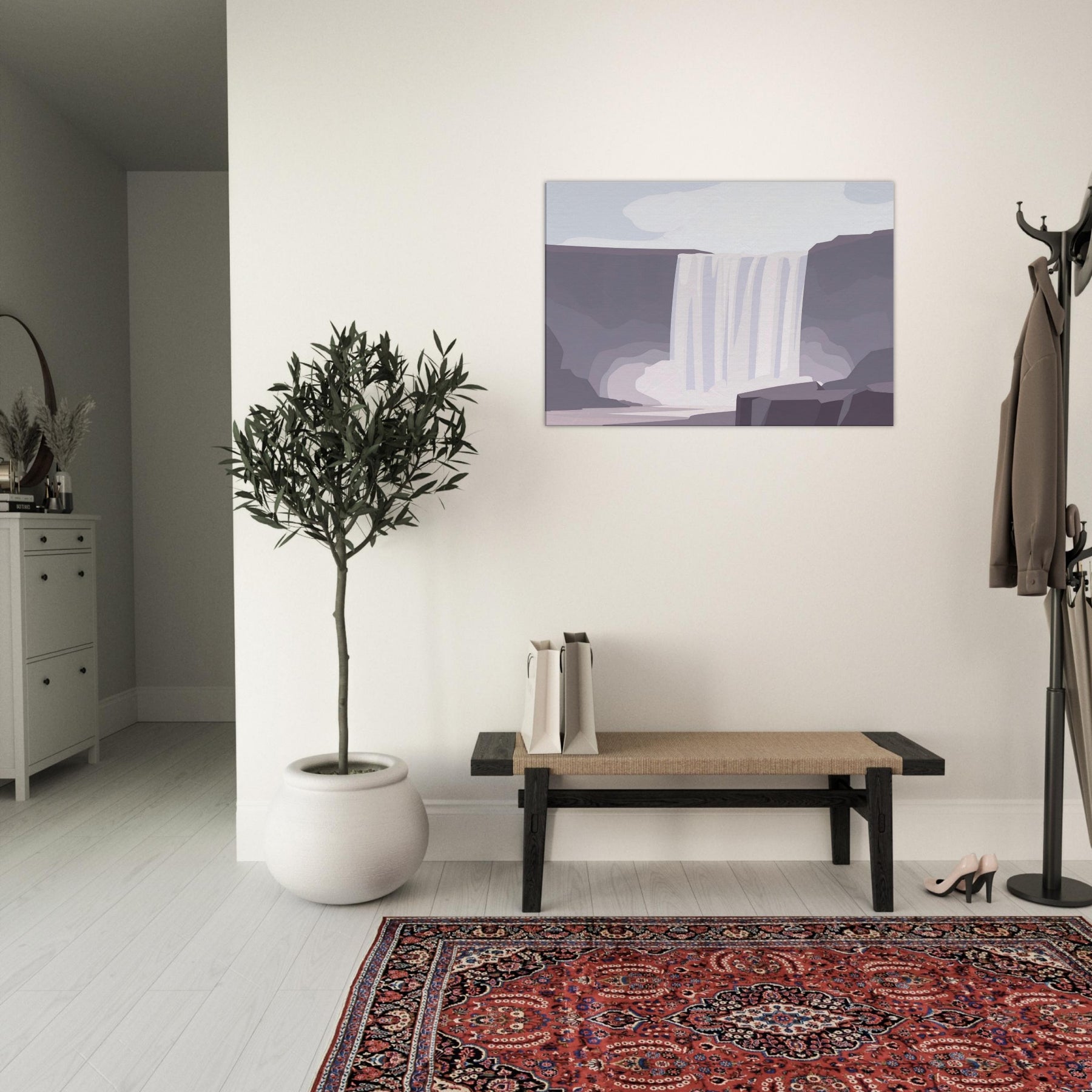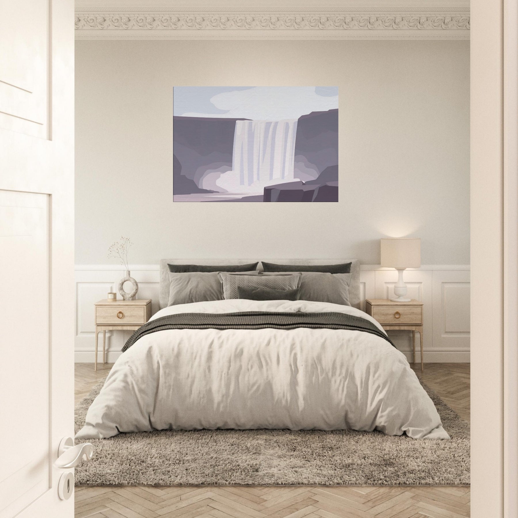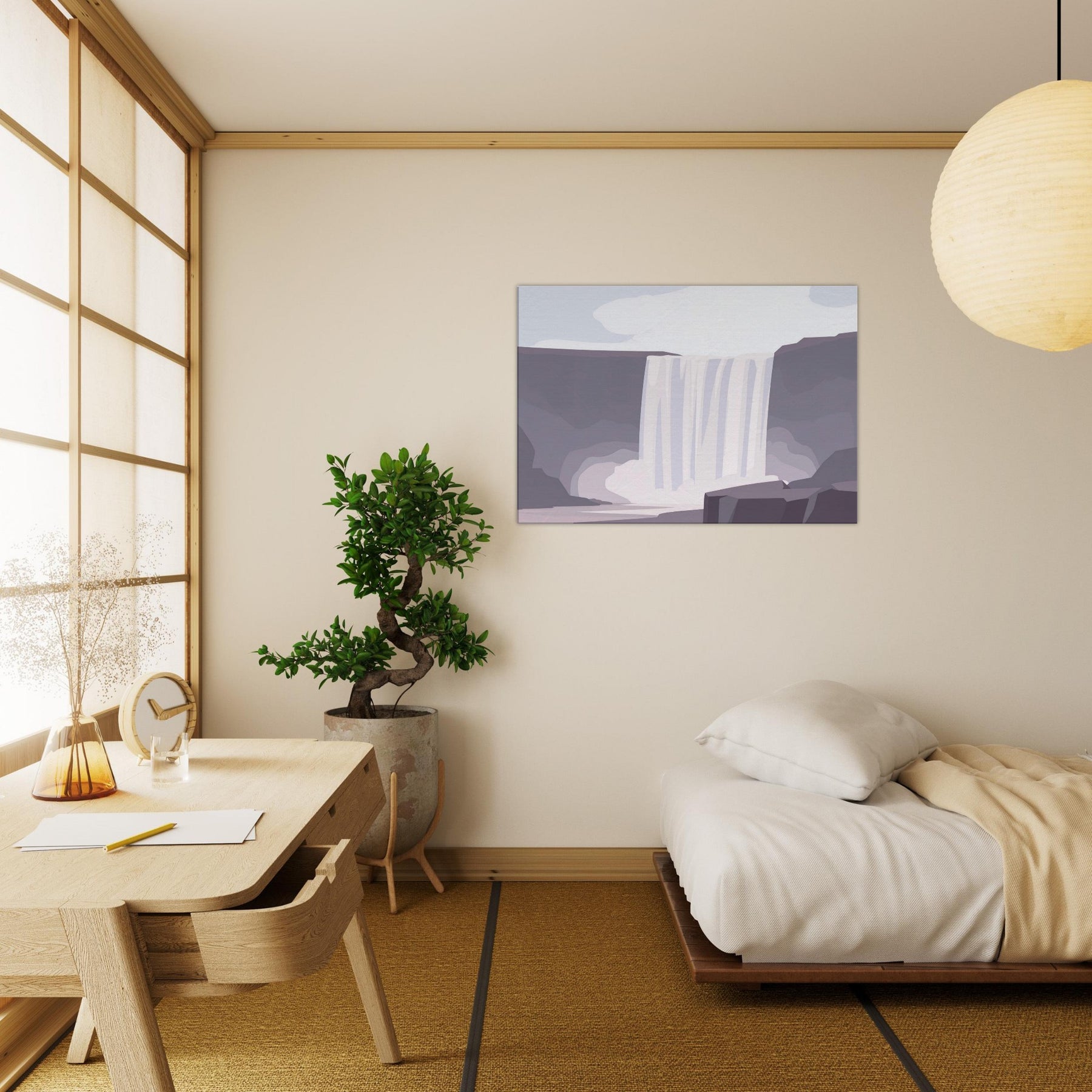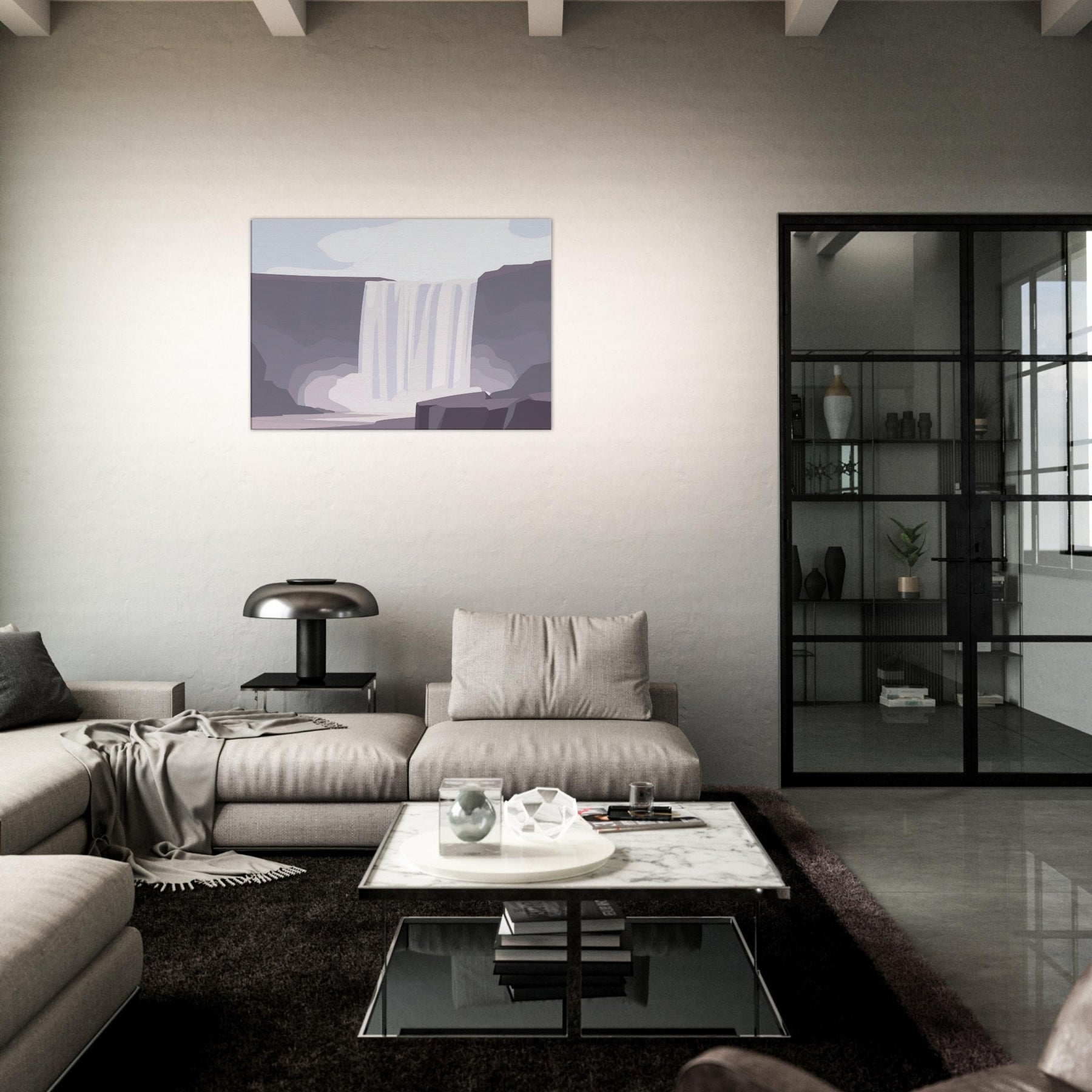 Immerse your living space in the hush of a distant Waterfall, distilled into soft, tonal planes. This minimalist composition captures nature's rhythm with light, shadow, and mist, inviting calm into any room. The cascade reads as quiet ribbons against cool rock, creating a serene focal point that enhances a living room or bedroom with a sense of open air and gentle motion. A refined anchor for spaces that crave clarity, balance, and a subtle, nature infused glow.