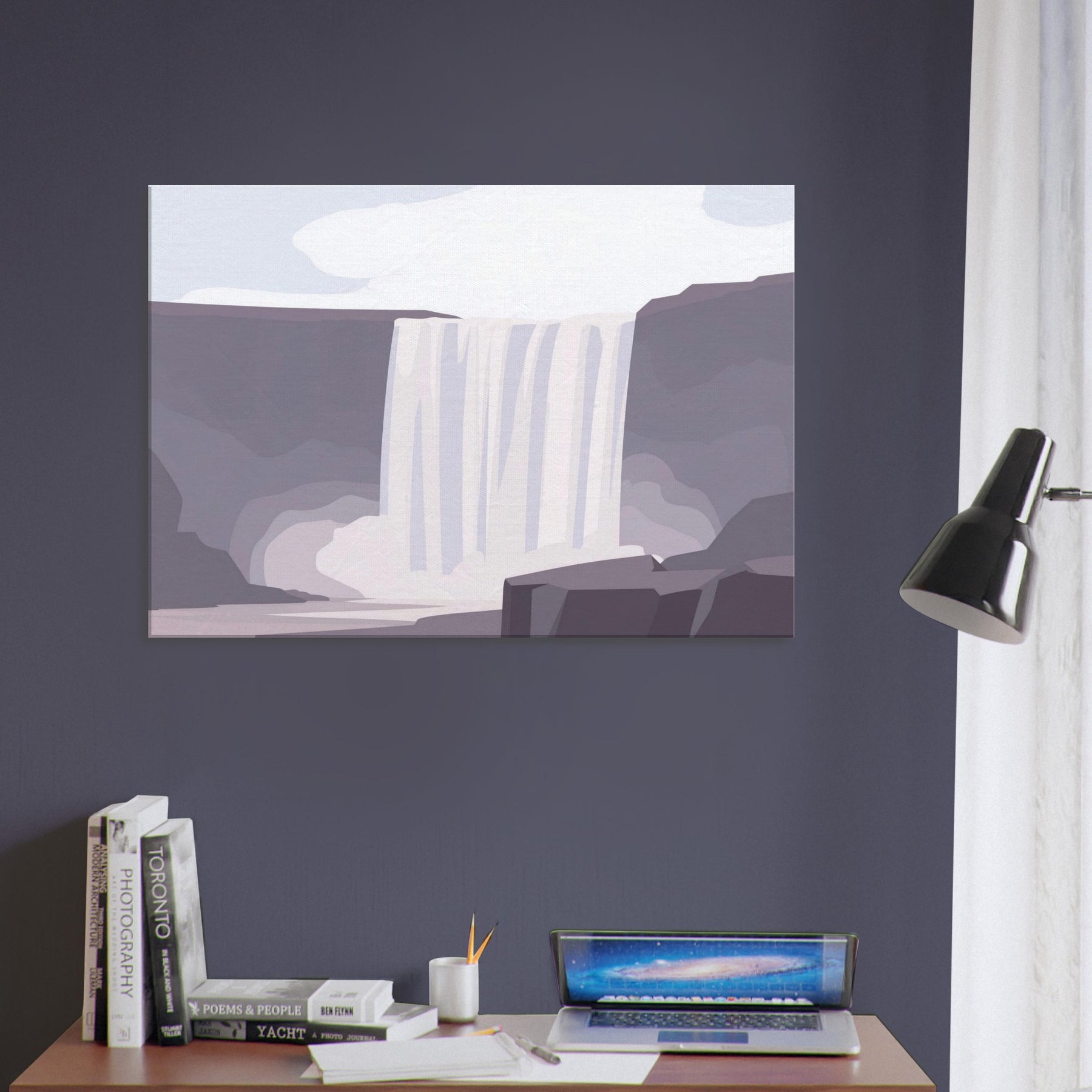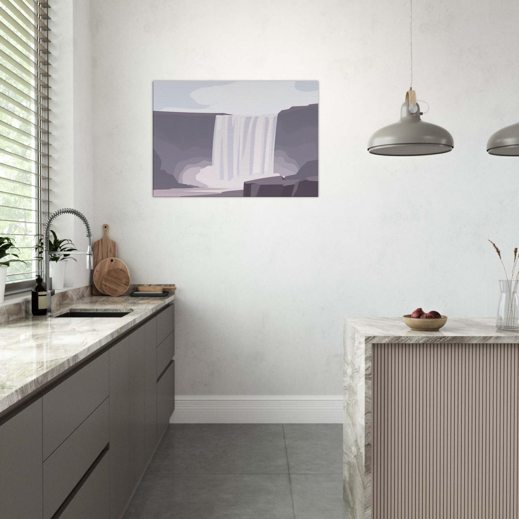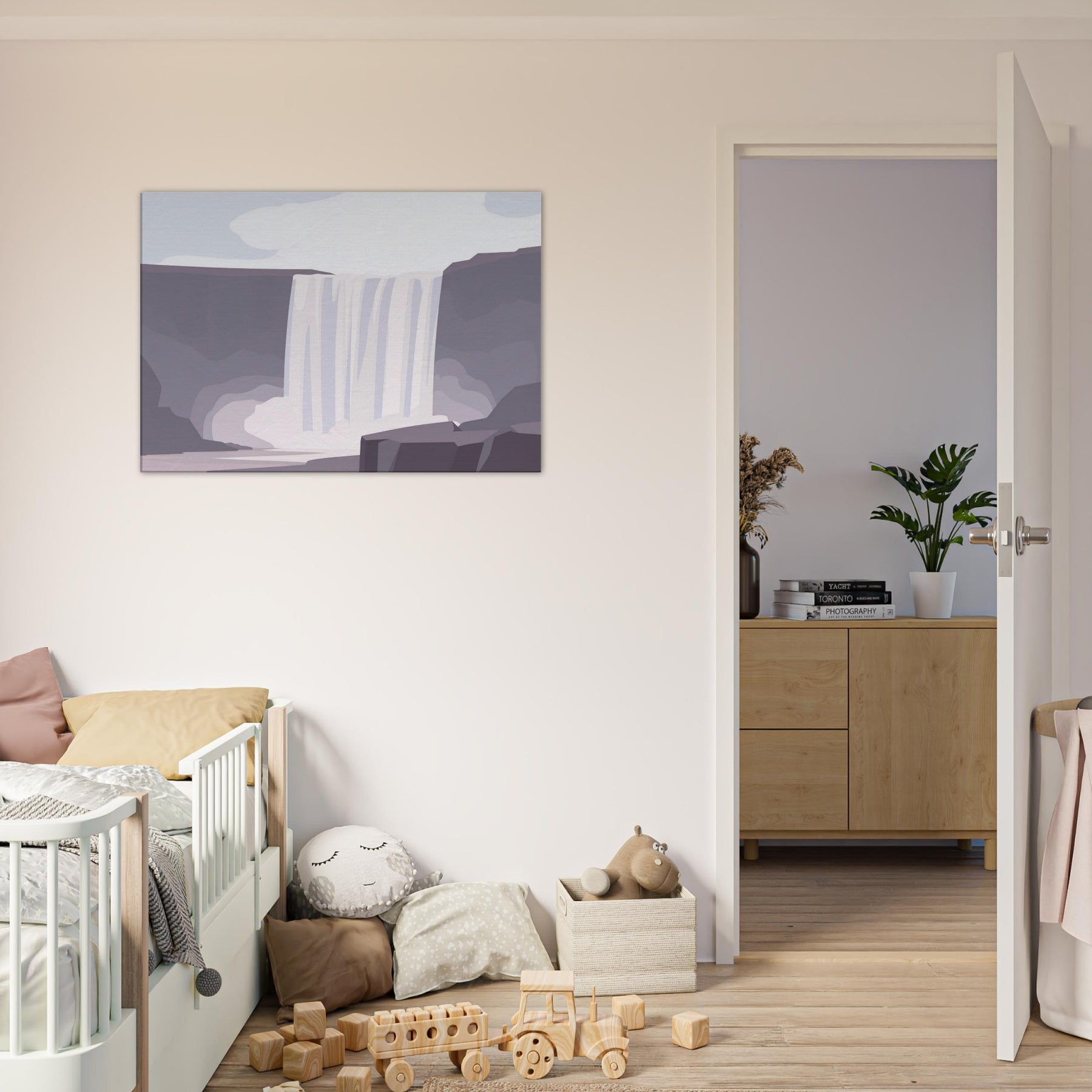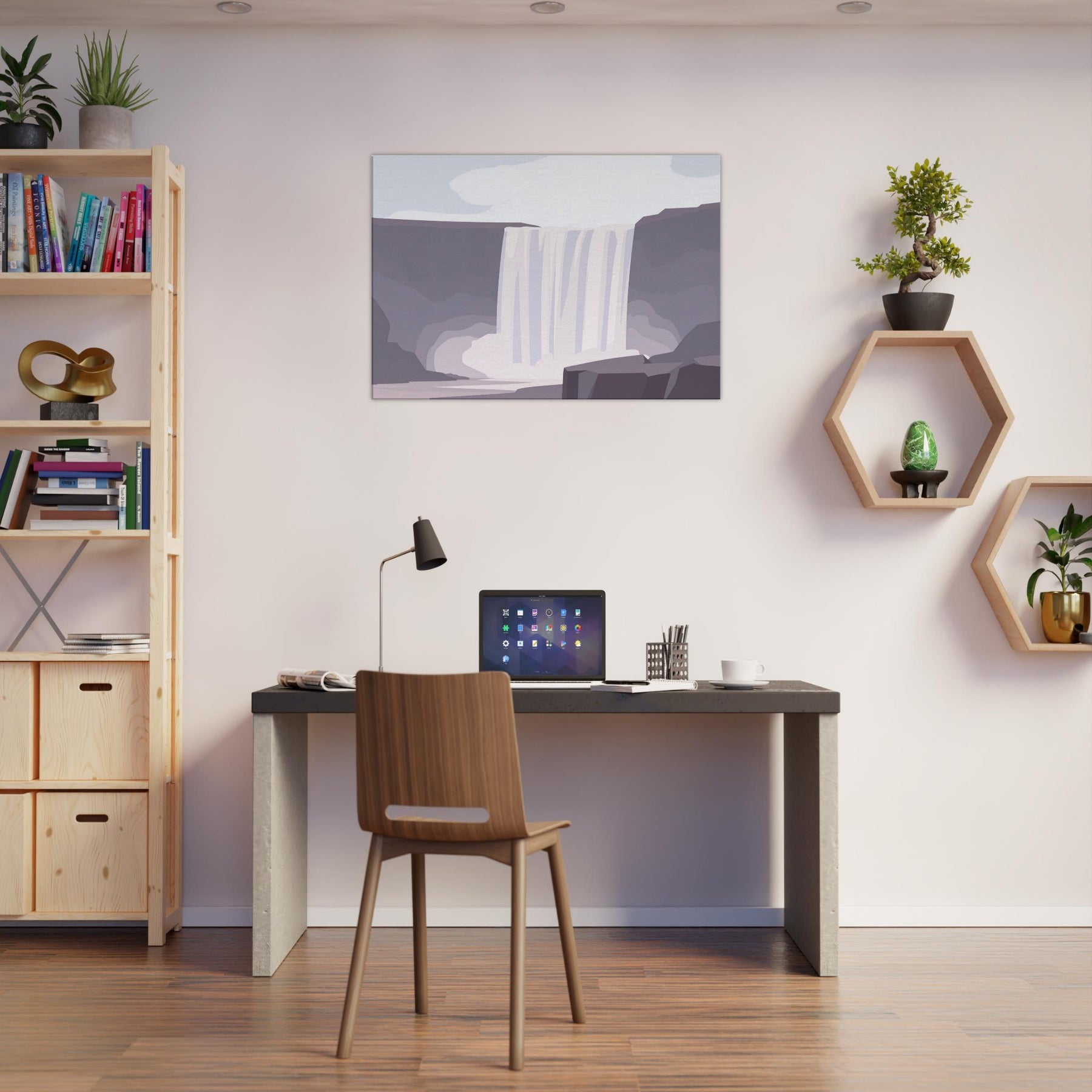 Immerse your living space in the hush of a distant Waterfall, distilled into soft, tonal planes. This minimalist composition captures nature's rhythm with light, shadow, and mist, inviting calm into any room. The cascade reads as quiet ribbons against cool rock, creating a serene focal point that enhances a living room or bedroom with a sense of open air and gentle motion. A refined anchor for spaces that crave clarity, balance, and a subtle, nature infused glow.