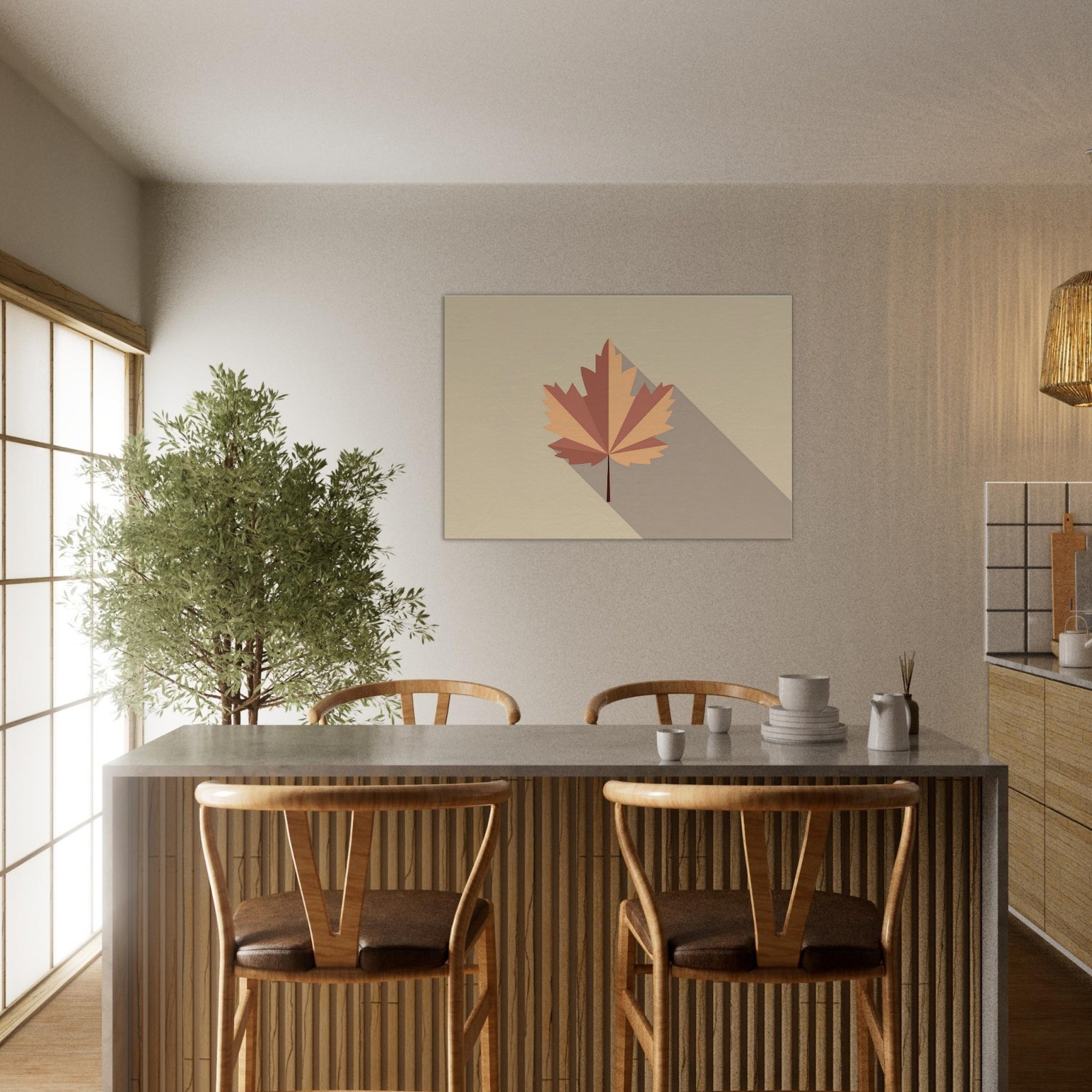 A breath of autumn captured in a single, pared back leaf. This minimalist study softens the room with warm apricot and clay tones, casting a quiet, sunlit shadow that travels across the wall. The Maple Leaf sits against a calm field, its facets like folded light, inviting slower moments and conscious breathing. Perfect above a sofa or bedside, it elevates living spaces with subtle texture, natural grace, and a sense of seasonal ease an everyday reminder to pause and breathe.