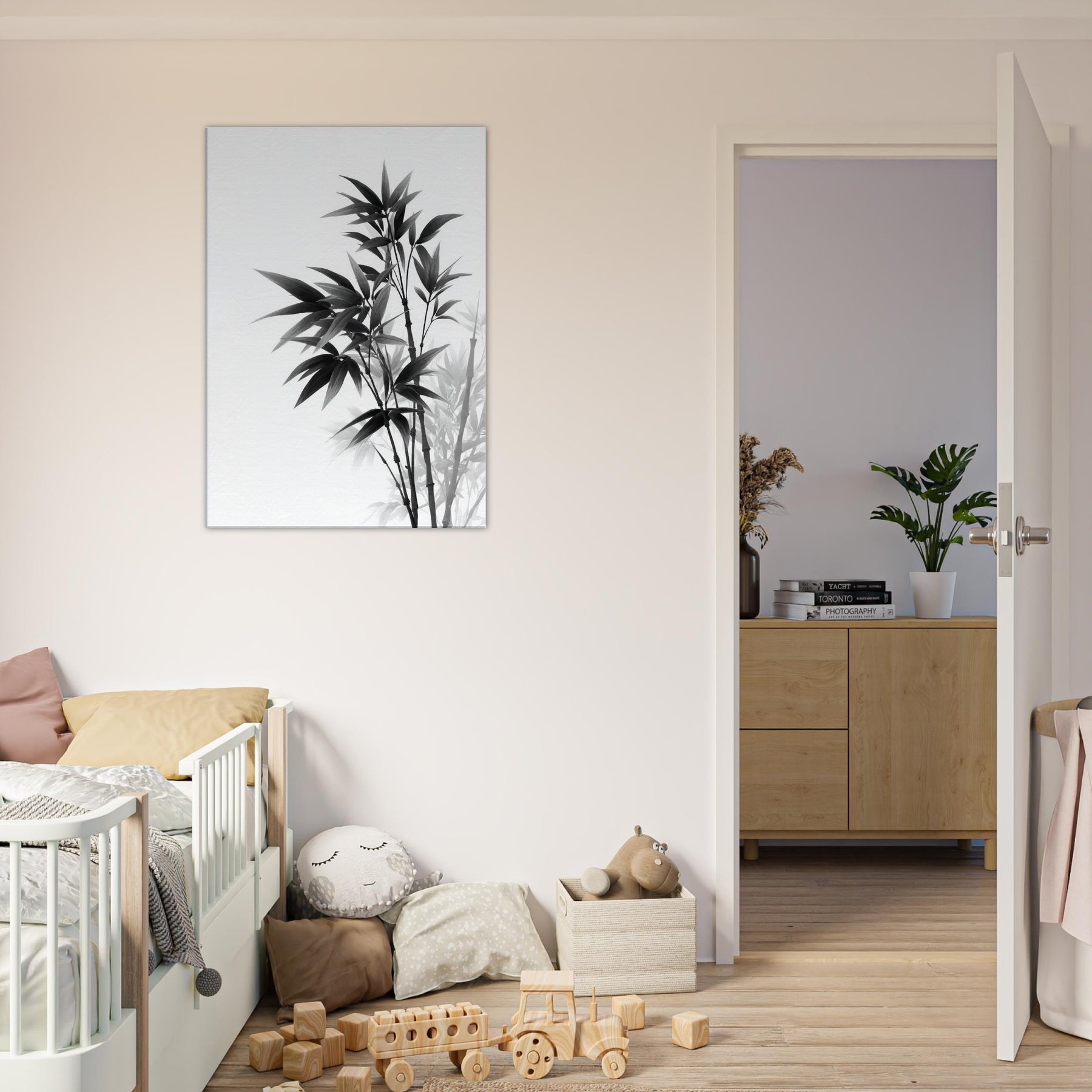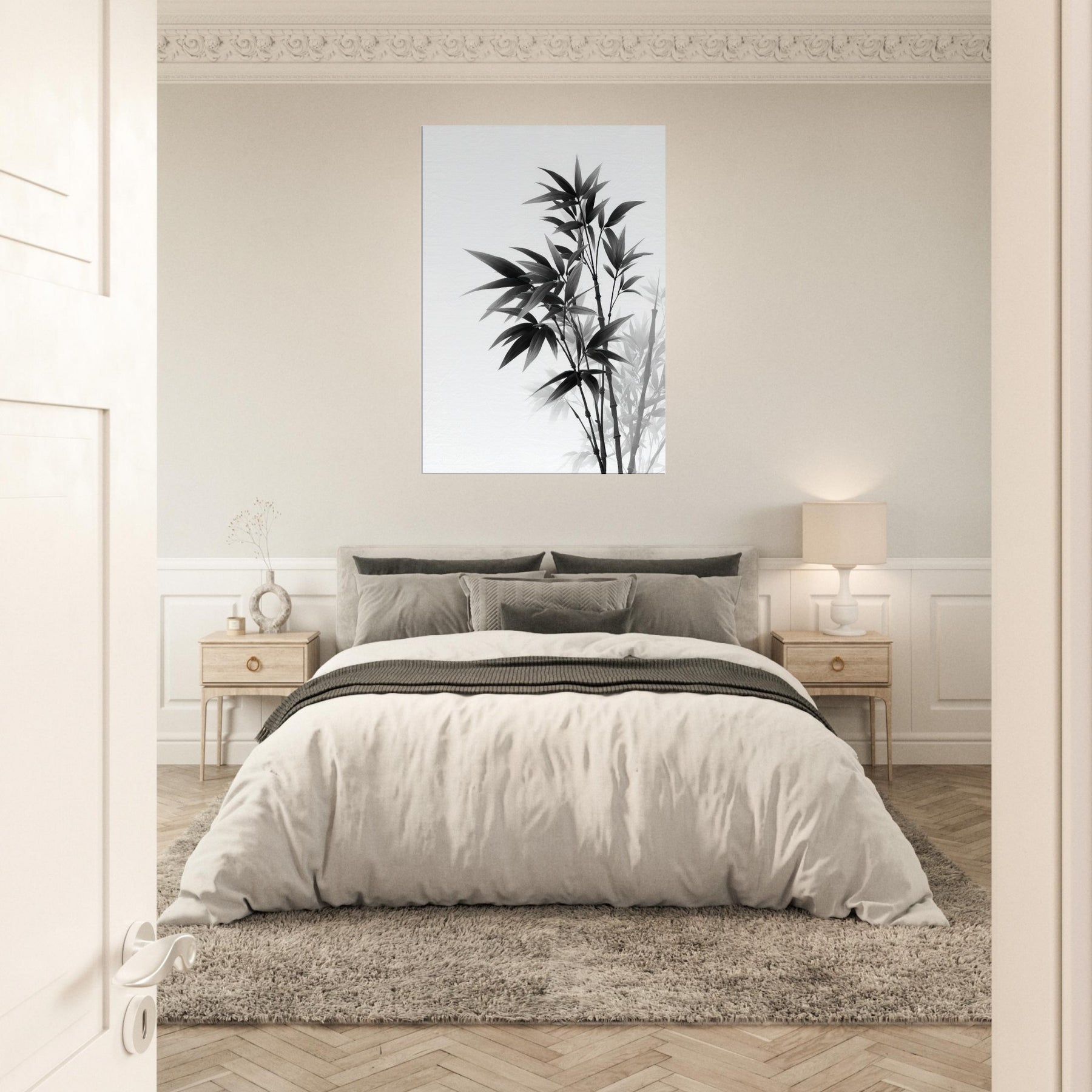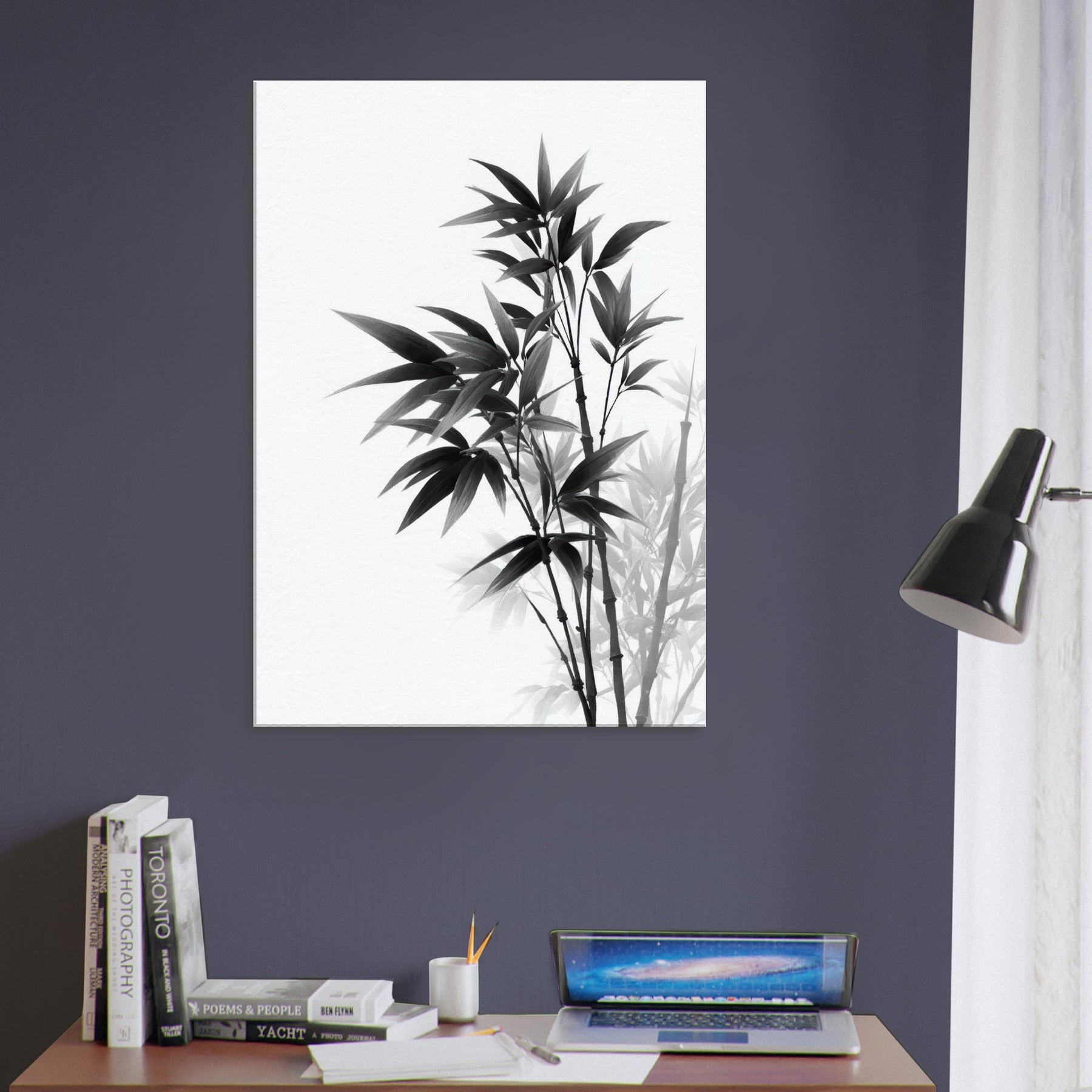 Bamboo Stalks drift in grayscale, a quiet study of resilience and rhythm. The black and white stems thread upward, their leaves catching light just so, crafting a poised breeze of texture across the wall. Negative space breathes around them, inviting calm and focus to any living space. This image lends a refined, nature inspired sophistication perfect for a lounge, office, or bedroom where a subtle, elegant contrast enhances conversation, quiet moments, and everyday rituals alike.