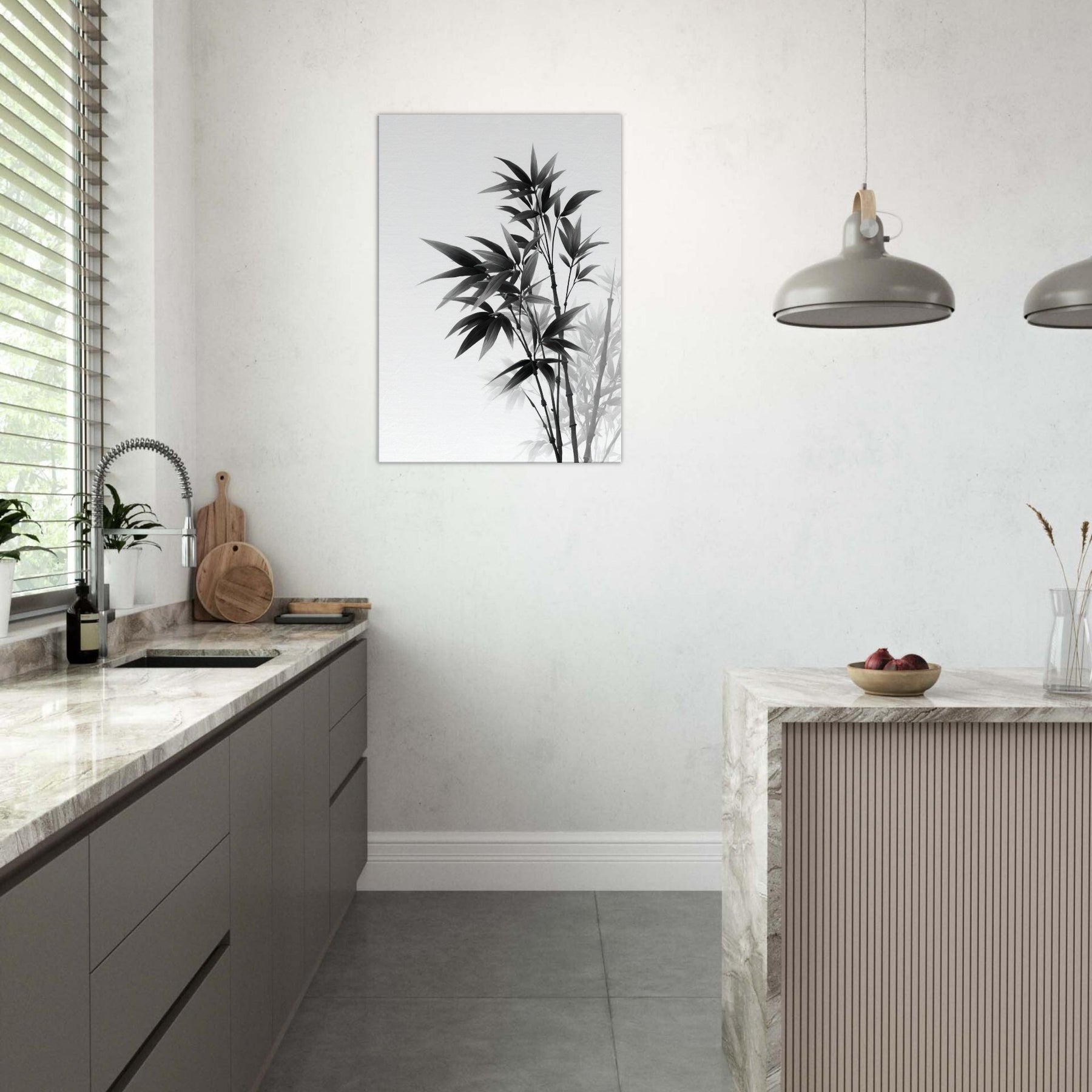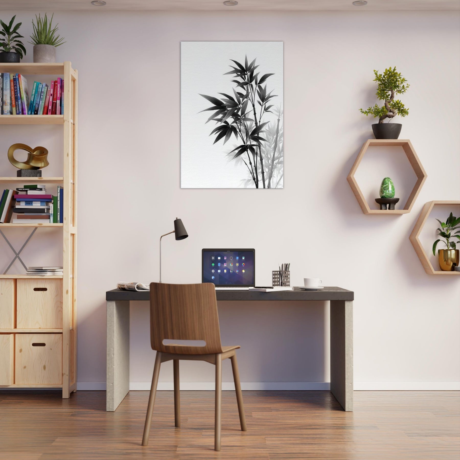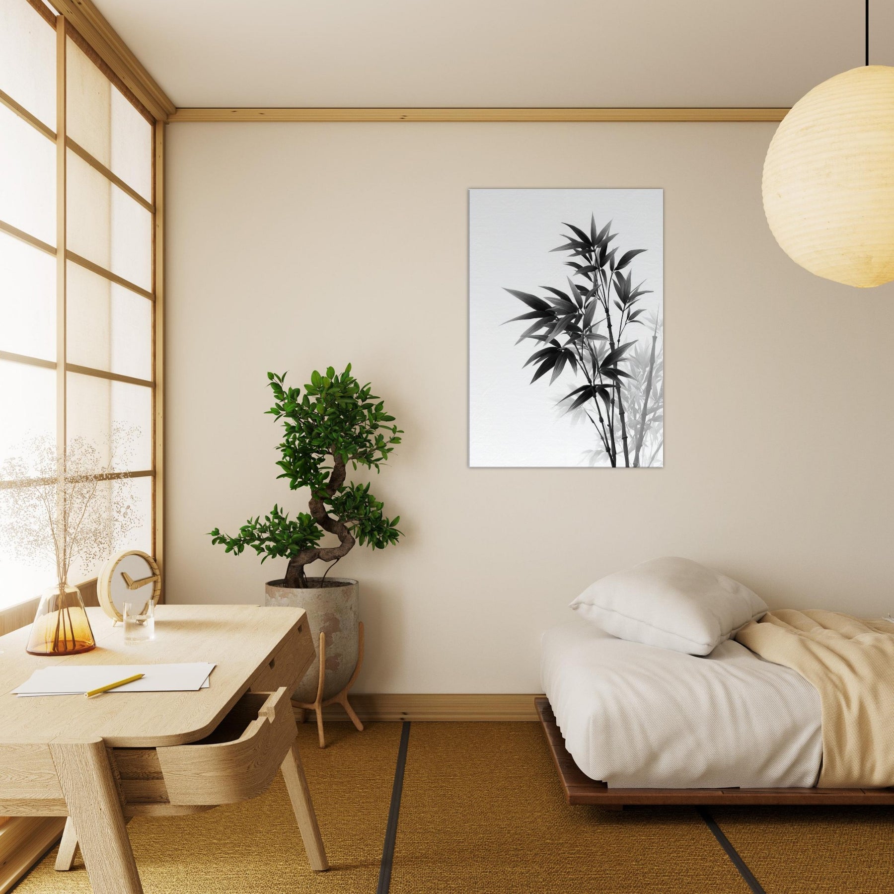 Bamboo Stalks drift in grayscale, a quiet study of resilience and rhythm. The black and white stems thread upward, their leaves catching light just so, crafting a poised breeze of texture across the wall. Negative space breathes around them, inviting calm and focus to any living space. This image lends a refined, nature inspired sophistication perfect for a lounge, office, or bedroom where a subtle, elegant contrast enhances conversation, quiet moments, and everyday rituals alike.
