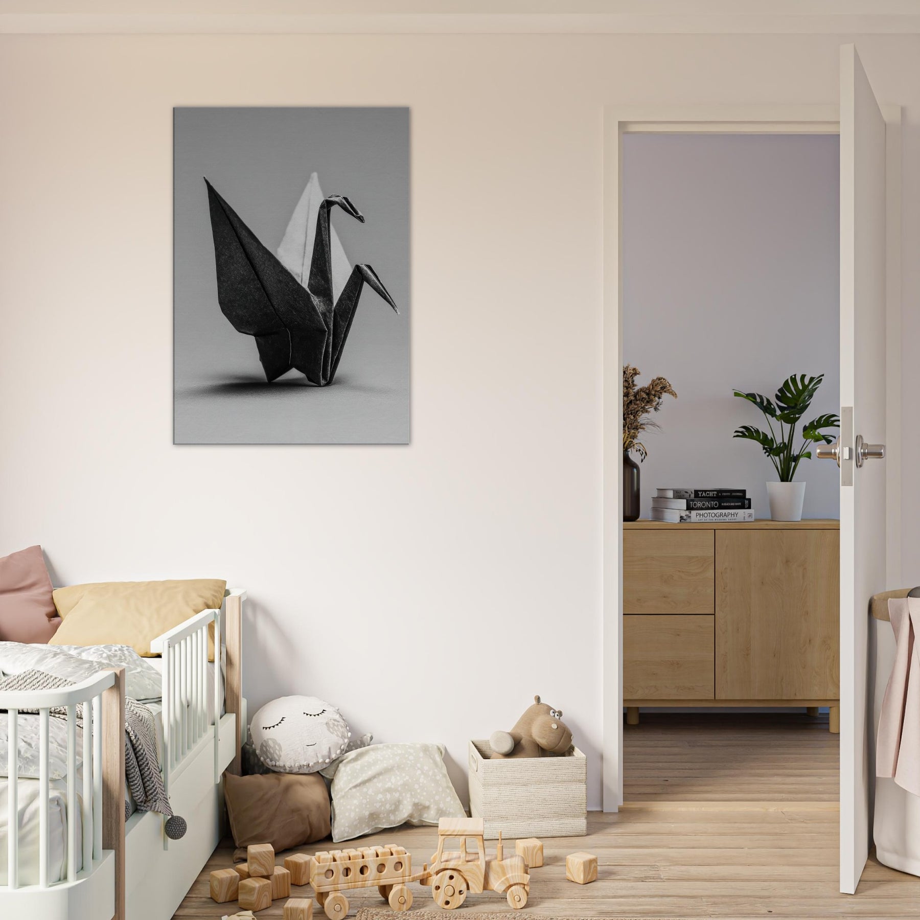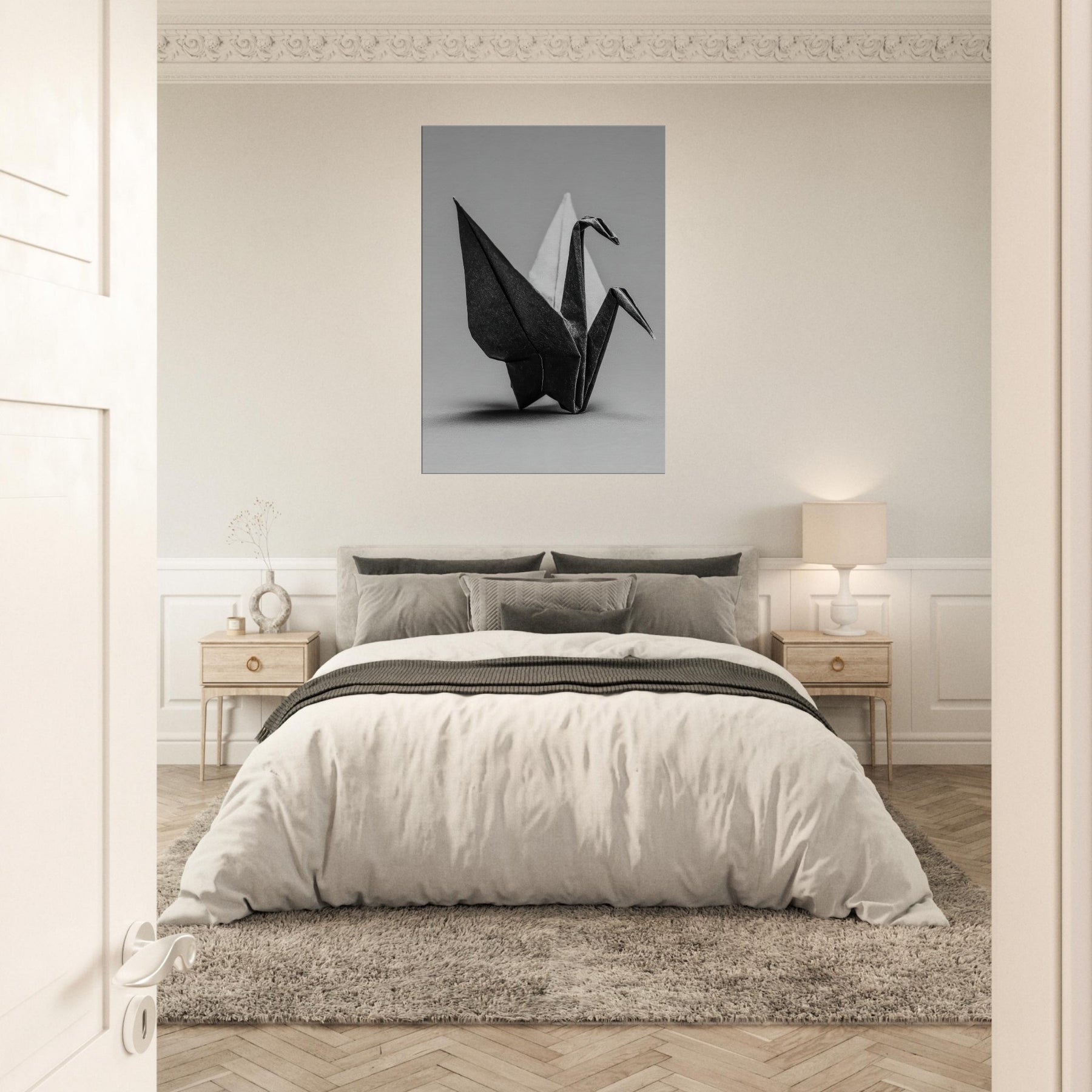 This artwork unfolds in quiet elegance, captured in stark black and white that invites stillness rather than sentiment. This wall art suggests a moment of deliberate restraint, where each fold becomes a line of light and shadow, a gentle counterpoint to busier rooms.