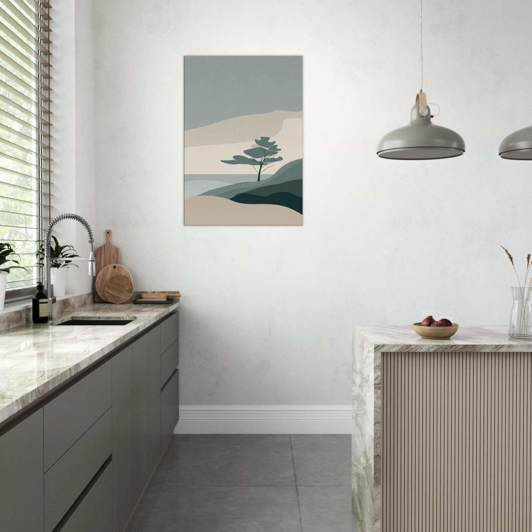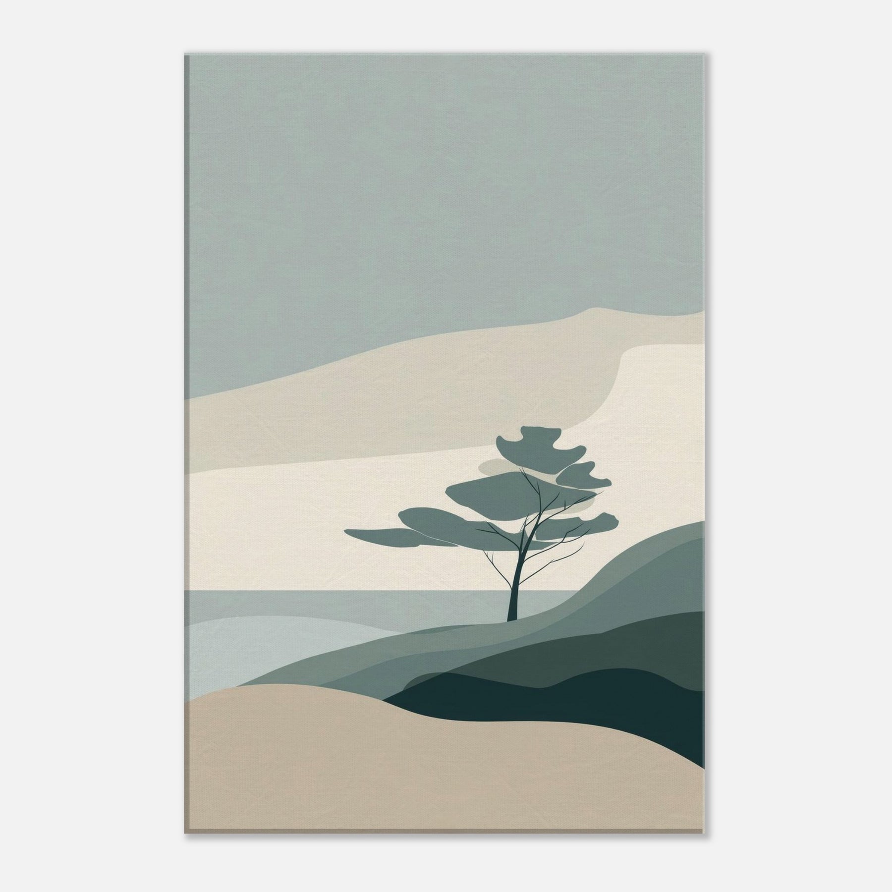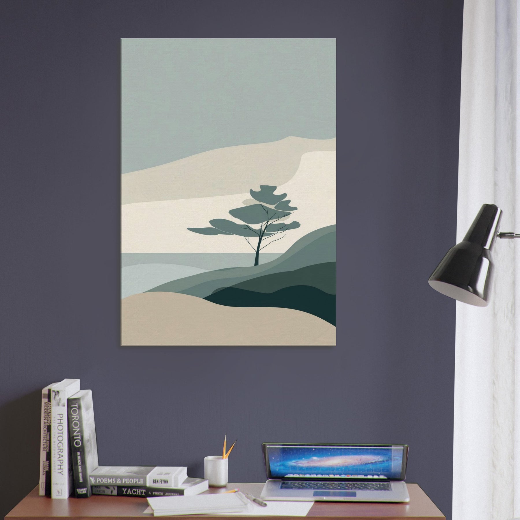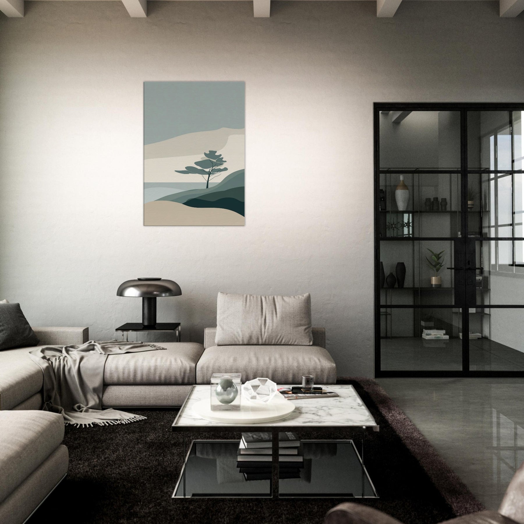 Soft hues and gentle contour lines invite the beach into your living room: a lone tree standing against a horizon of muted dunes and sea, rendered in a restrained palette that feels timeless. This minimalist composition breathes calm into any space, turning the room into a quiet retreat where memory of breezes and salt air lingers. Hang it to anchor a seating area, invite reflective moments, and let the light play across its serene forms. The Beach becomes a peaceful, everyday escape.