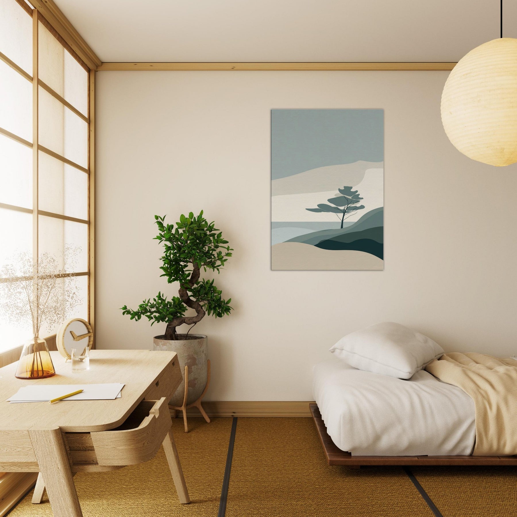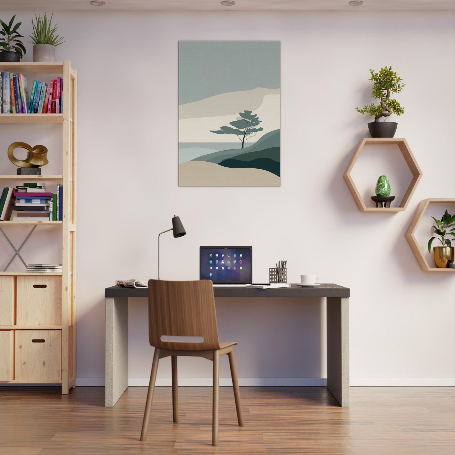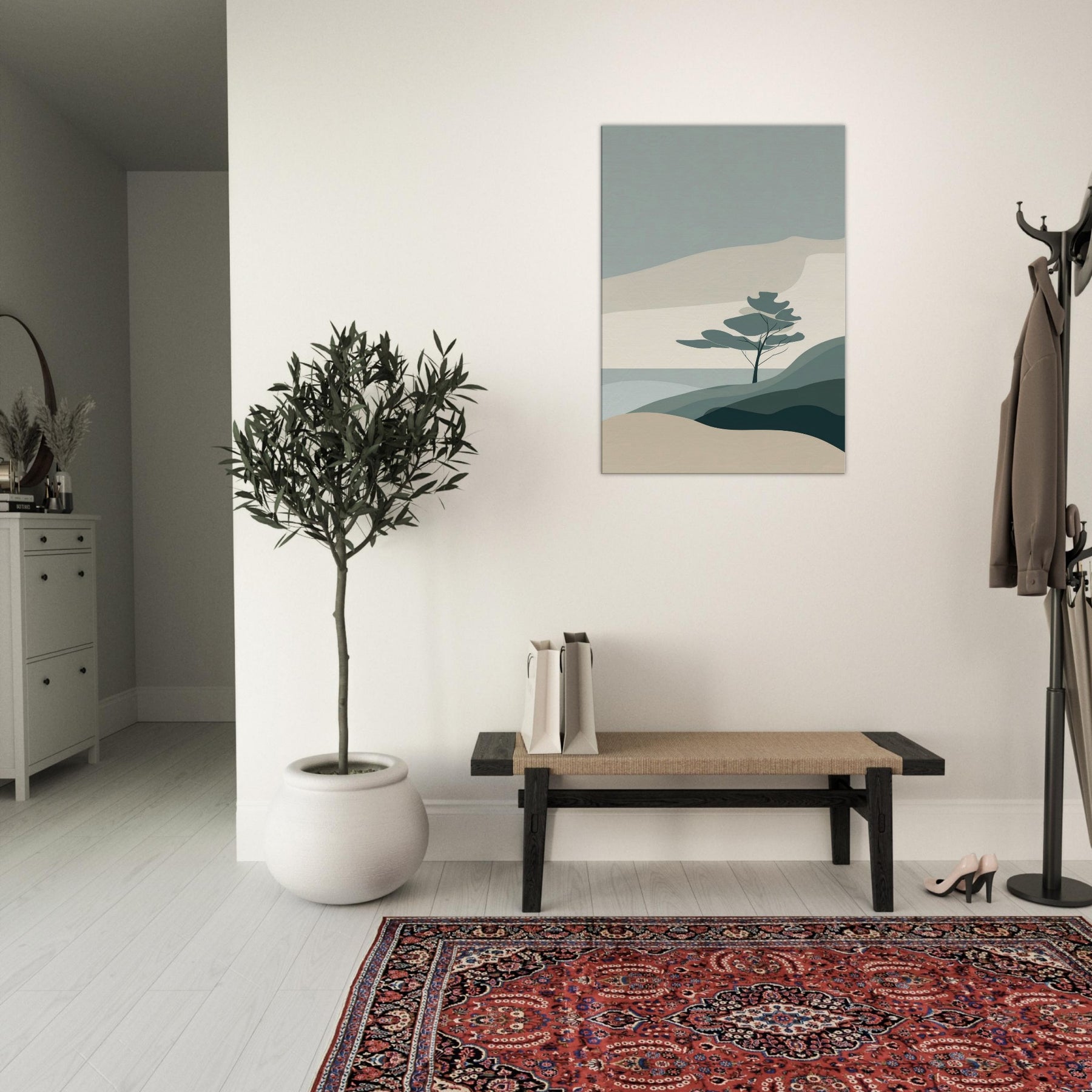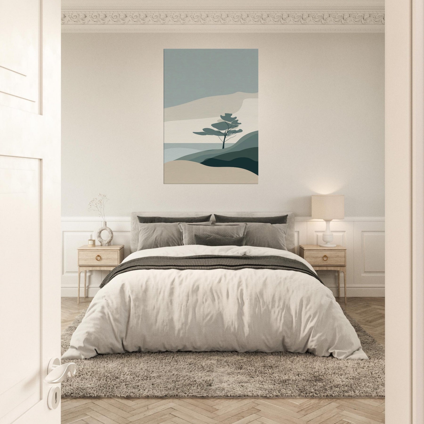 Soft hues and gentle contour lines invite the beach into your living room: a lone tree standing against a horizon of muted dunes and sea, rendered in a restrained palette that feels timeless. This minimalist composition breathes calm into any space, turning the room into a quiet retreat where memory of breezes and salt air lingers. Hang it to anchor a seating area, invite reflective moments, and let the light play across its serene forms. The Beach becomes a peaceful, everyday escape.