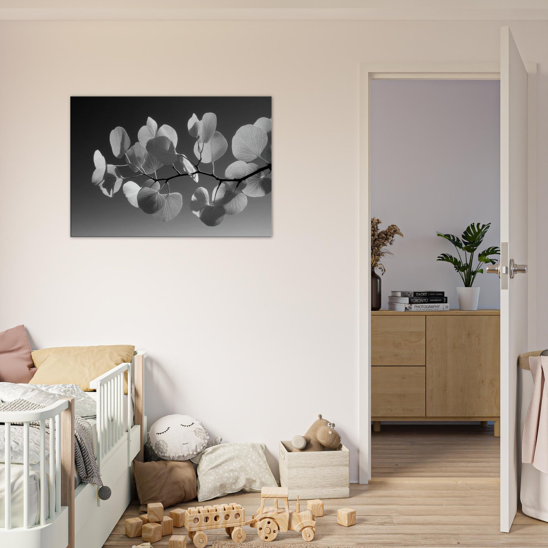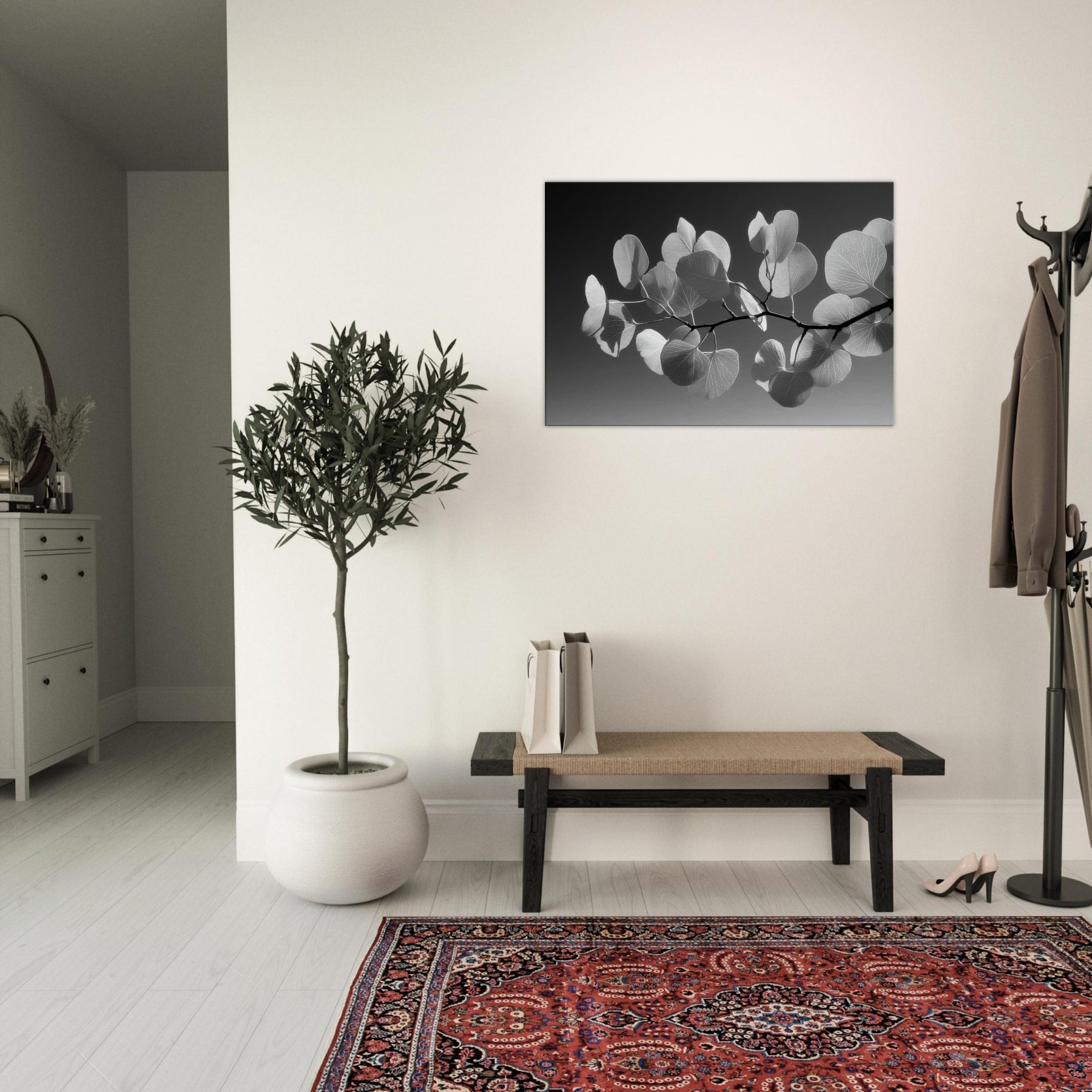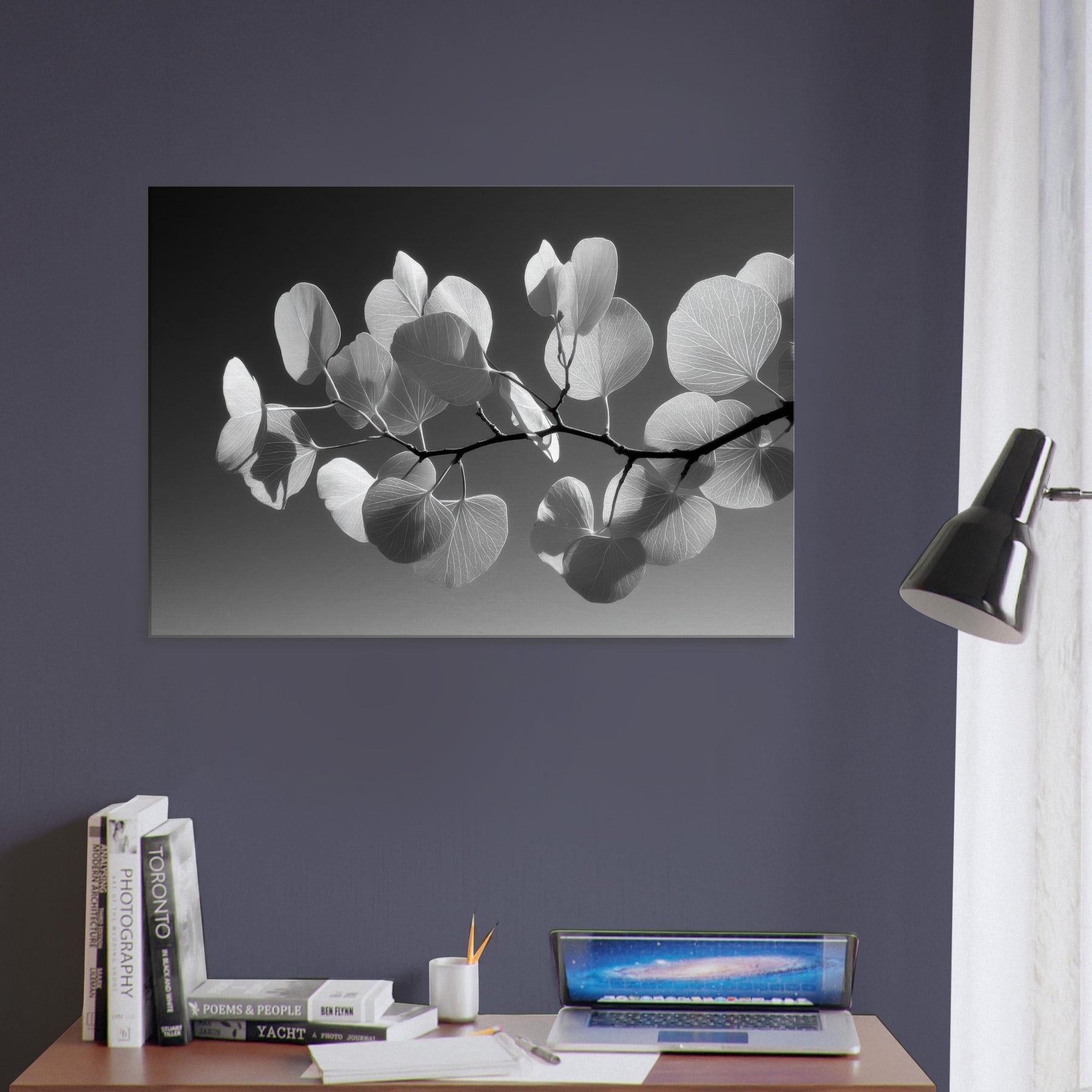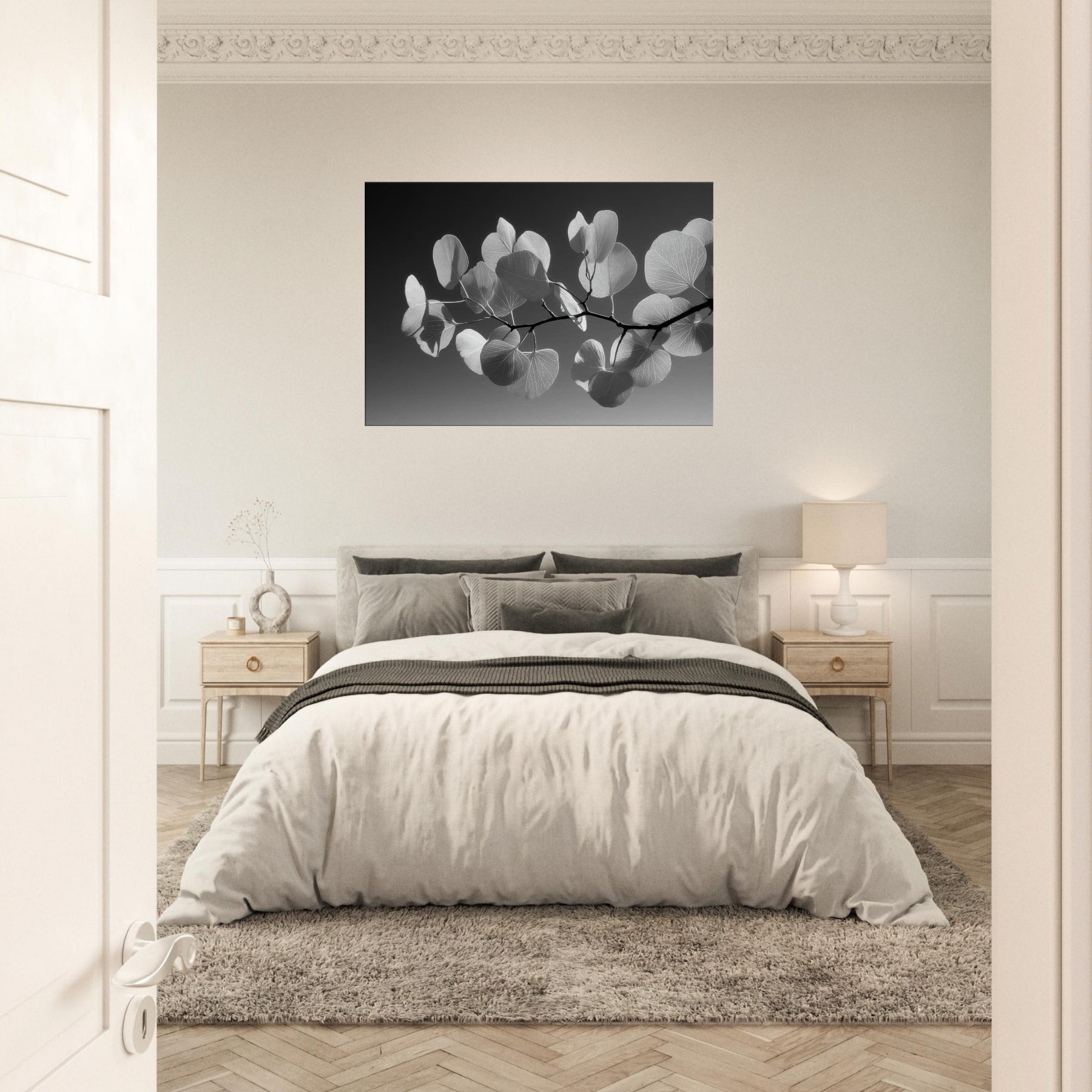 Capturing the quiet cadence of Eucalyptus on a branch, this black and white study unfolds like a breath drawn in ink. The delicate silhouettes, with veins tracing gentle light across each leaf, invite stillness and reflection, turning any living space into a sanctuary of calm. With its restrained contrast and airy composition, it pairs effortlessly with modern minimalism or classical warmth, elevating walls with natural poetry. Hang it where morning light or soft lamp glow can braid shadows and bring Eucalyptus to life.