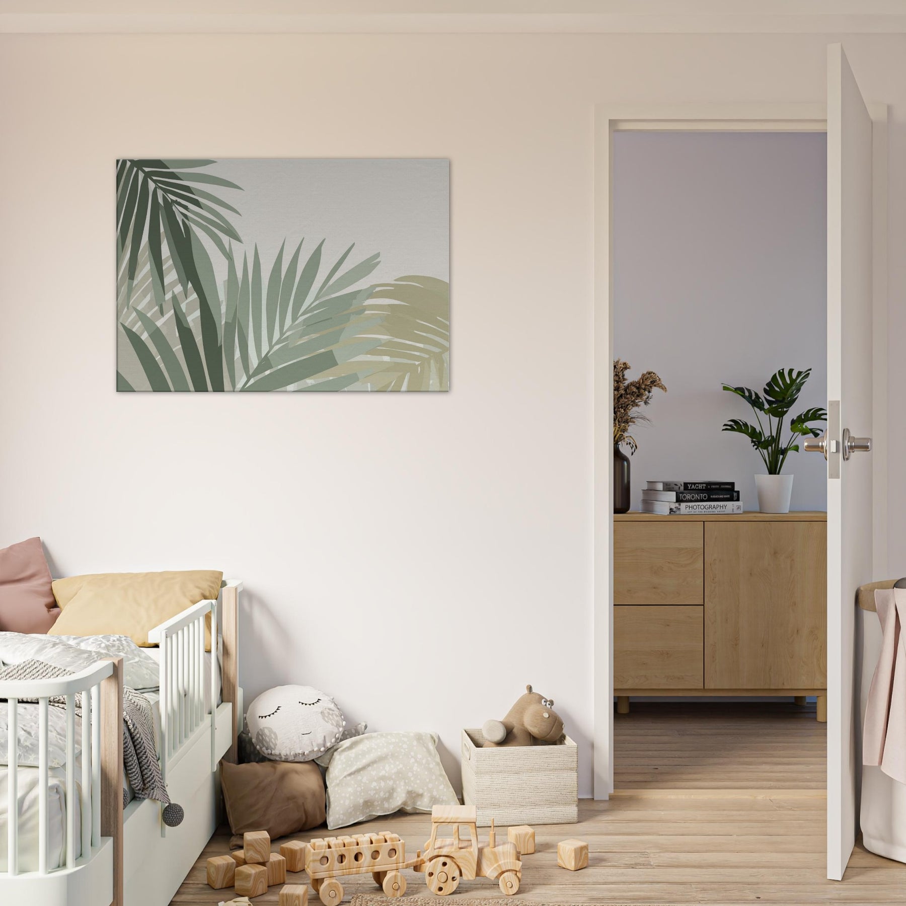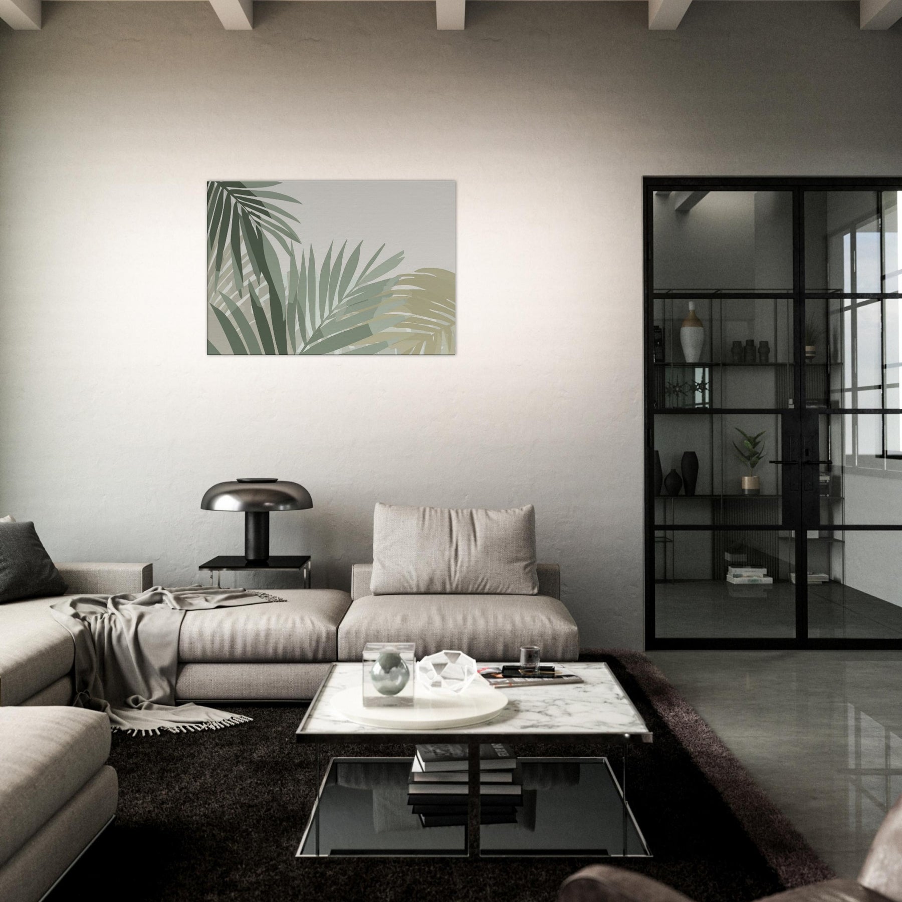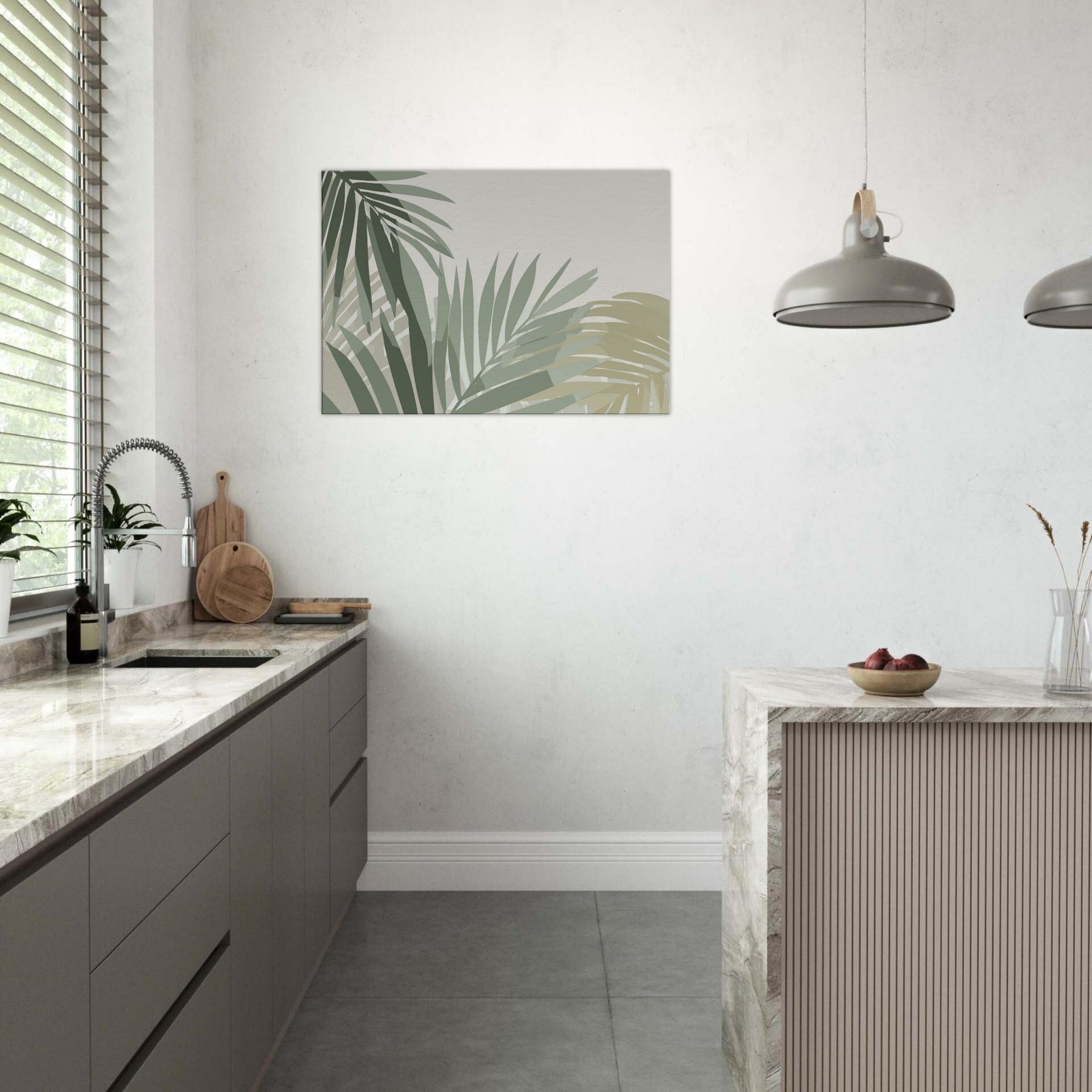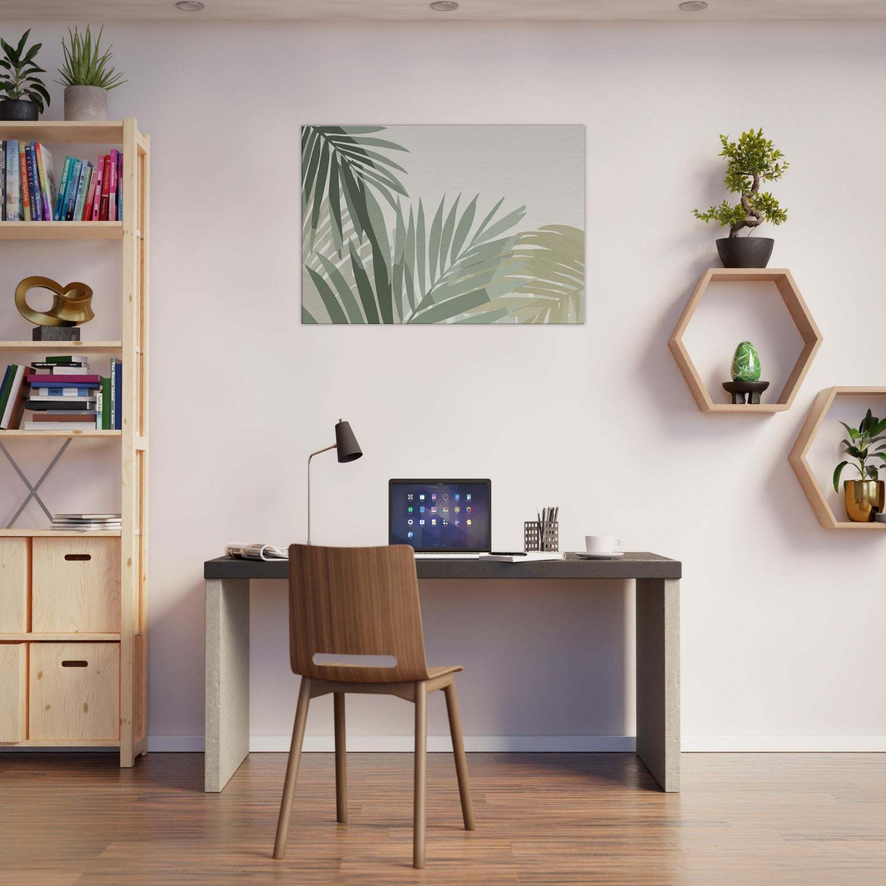 An understated meditation in light and form, this piece explores the quiet elegance of Palm Leaves through soft, overlapping silhouettes. The gentle palette sage, seafoam, and sand evokes early morning light and the hush of a sunlit terrace. With its minimalist composition, it invites breath and balance into a living room or bedroom, adding a breathable calm that pairs with linen textures and natural wood. Hang it where you want space to breathe, and let the Palm Leaves inspire subtle, everyday serenity.
