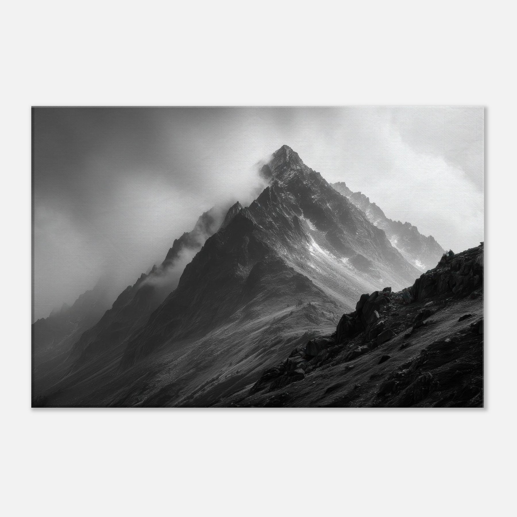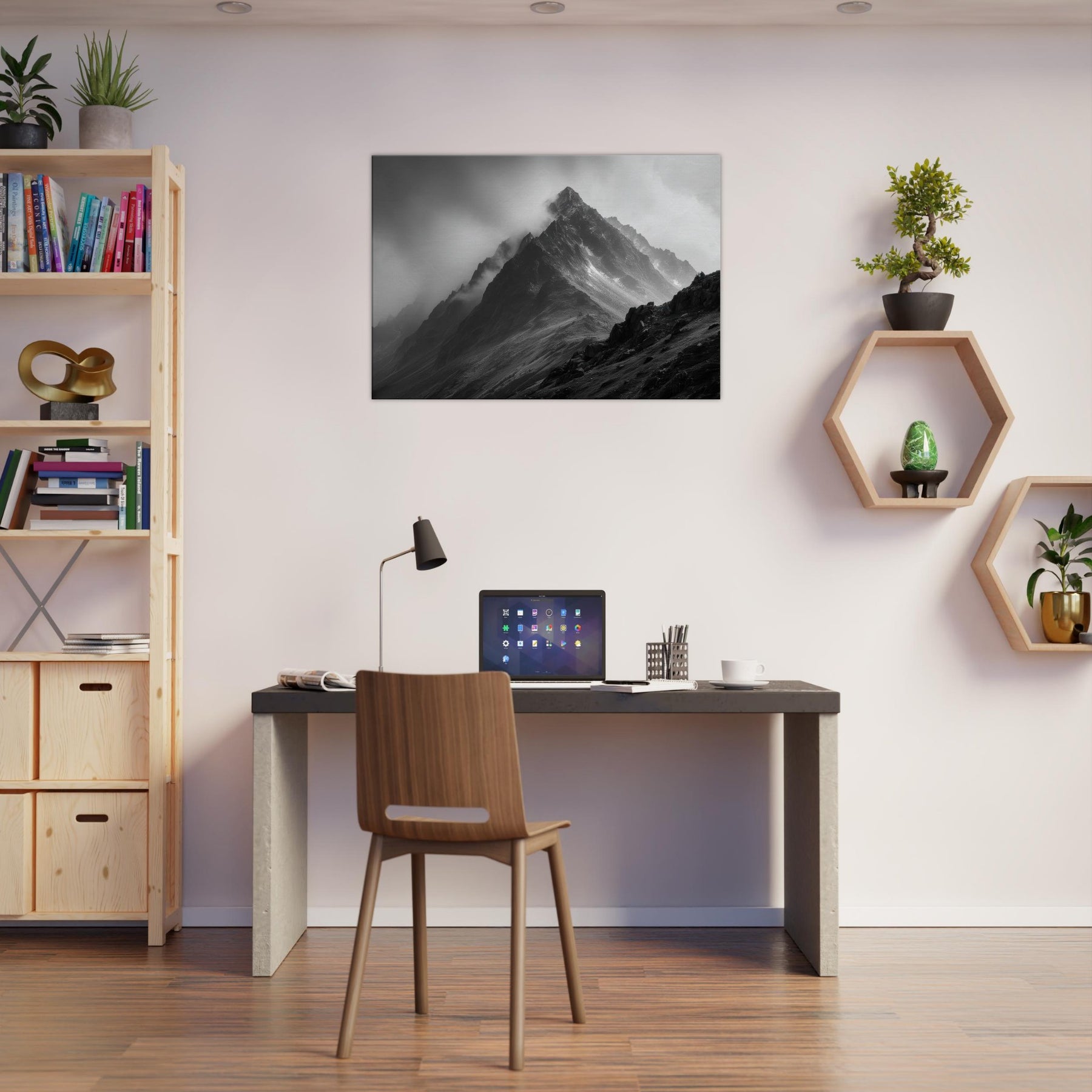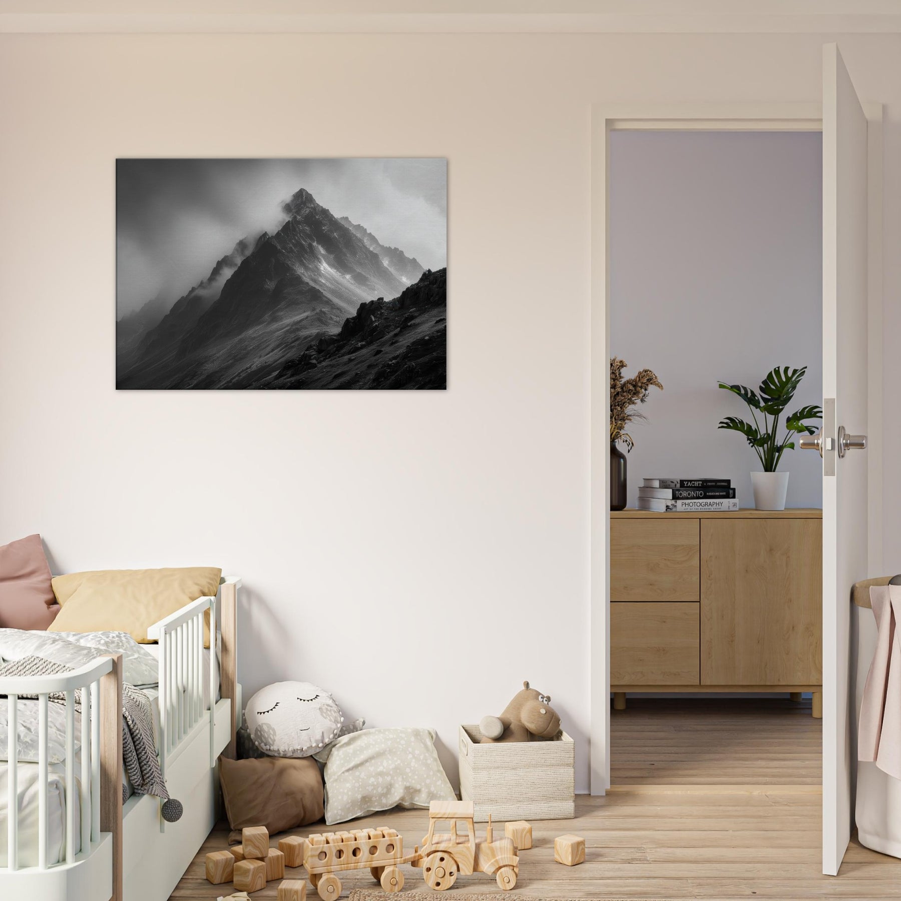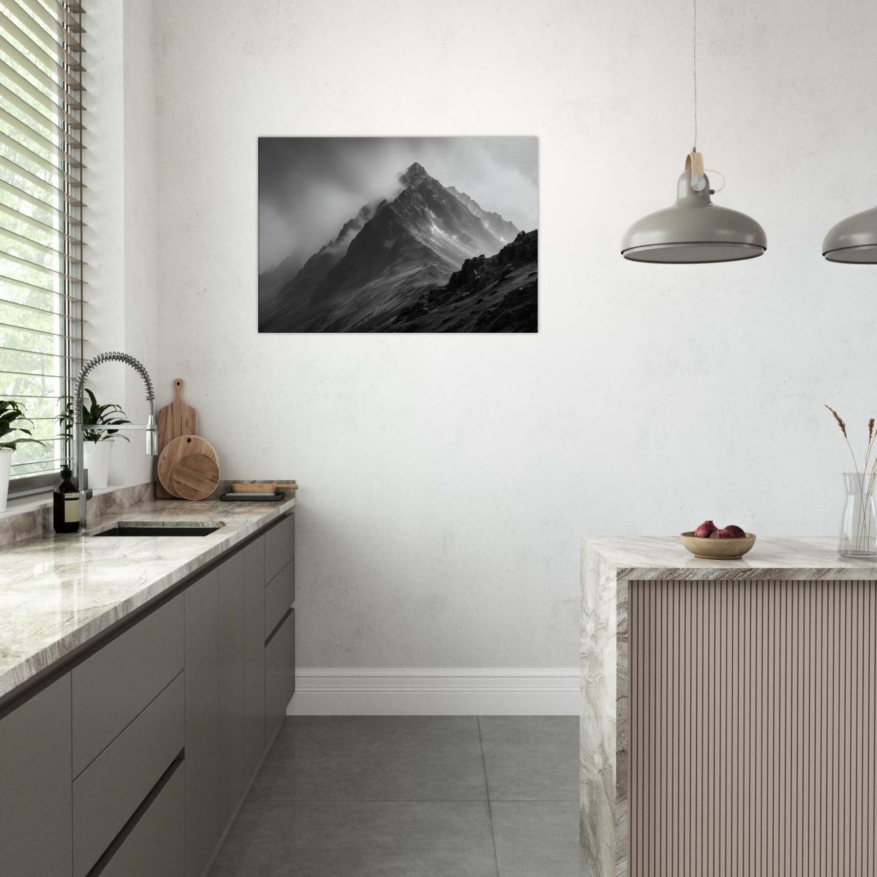 An arresting black and white portrayal of mountains rising through mist, this wall art invites quiet reflection. The stark contrast and softened textures evoke wind, shadow, and drifting clouds, wrapping a room in calm drama. Perfect for a living room, study, or entryway, it anchors seating with a natural focal point and effortlessly complements modern decor. The Mountains become a timeless backdrop for everyday moments and thoughtful conversation, a serene, cinematic accent that heightens atmosphere without overpowering the space.