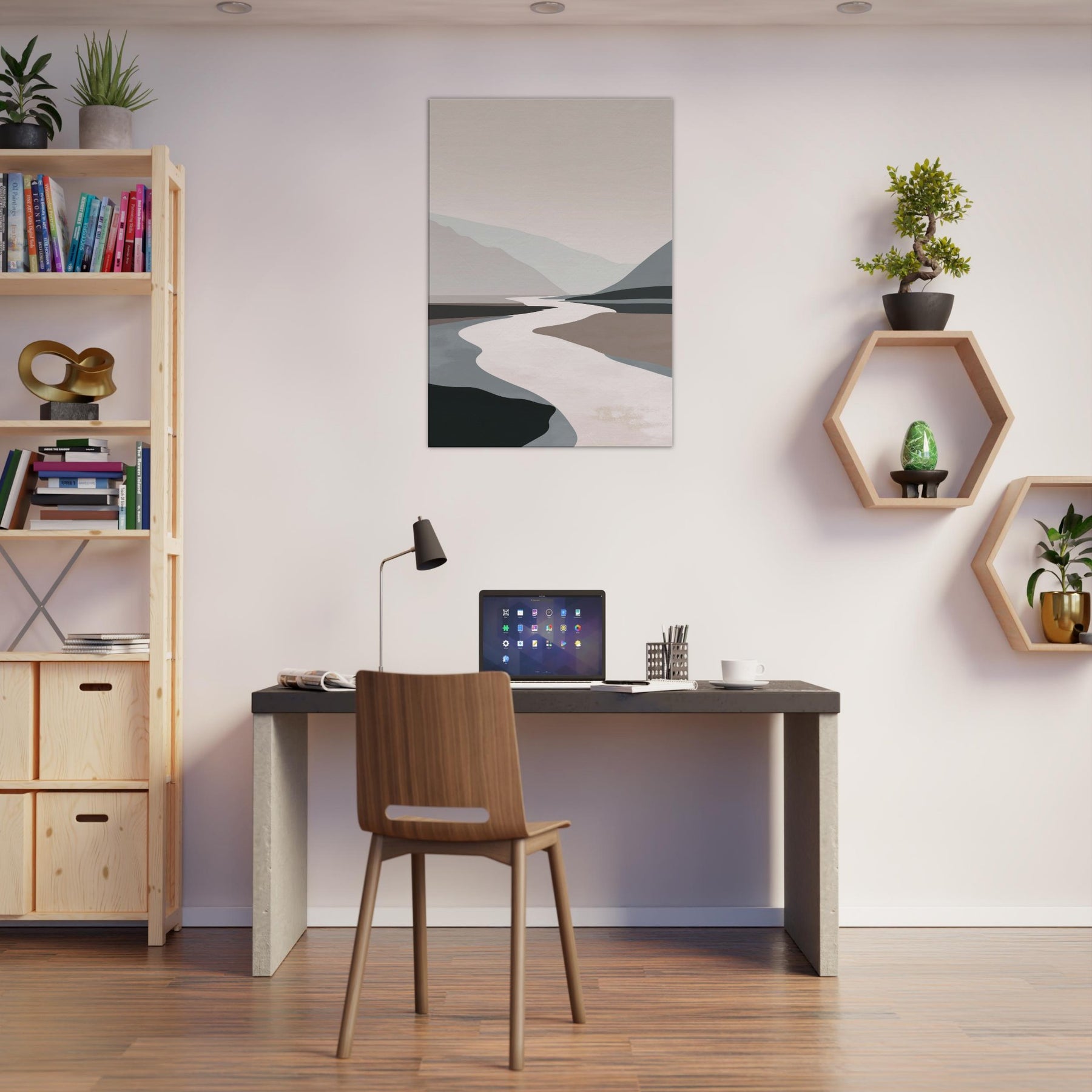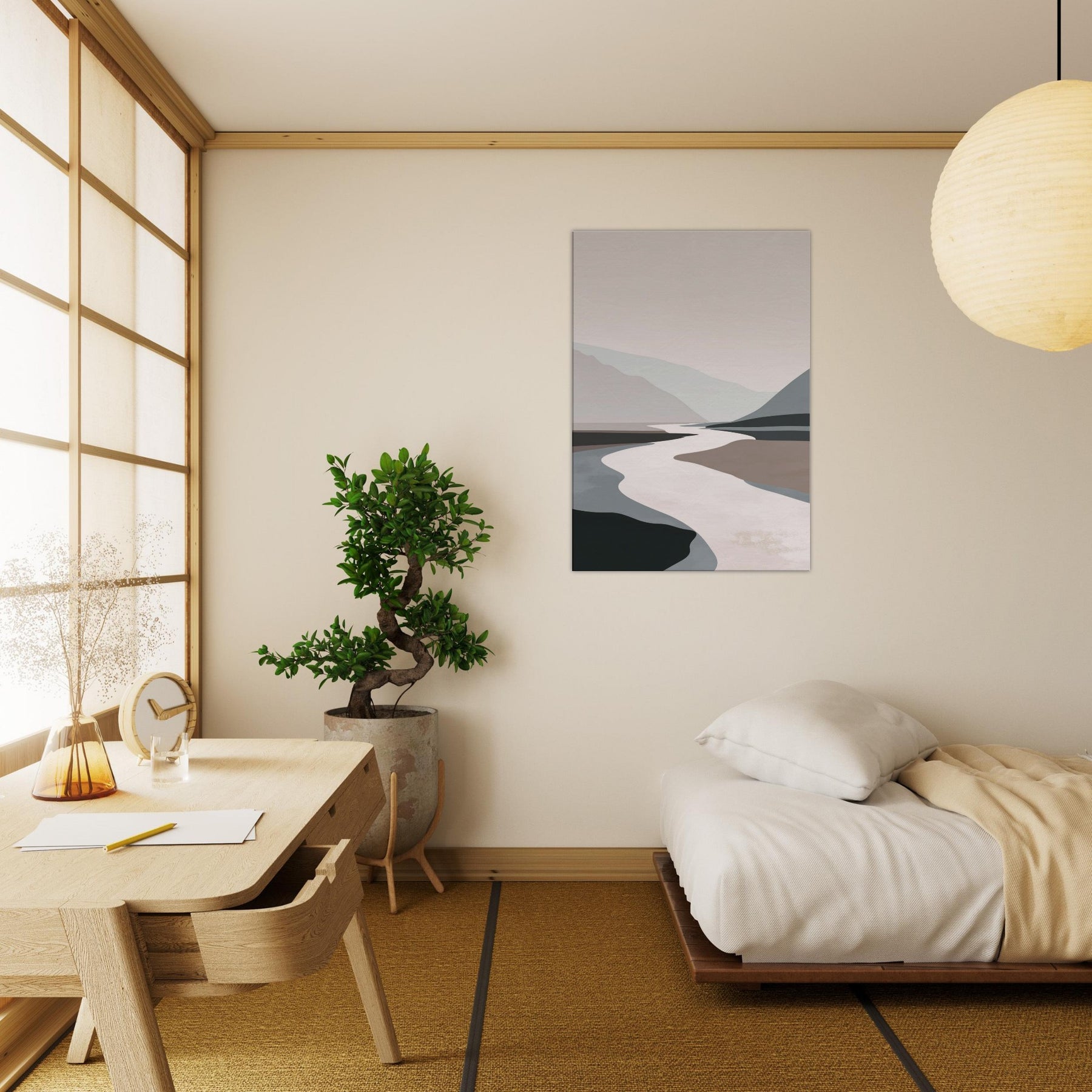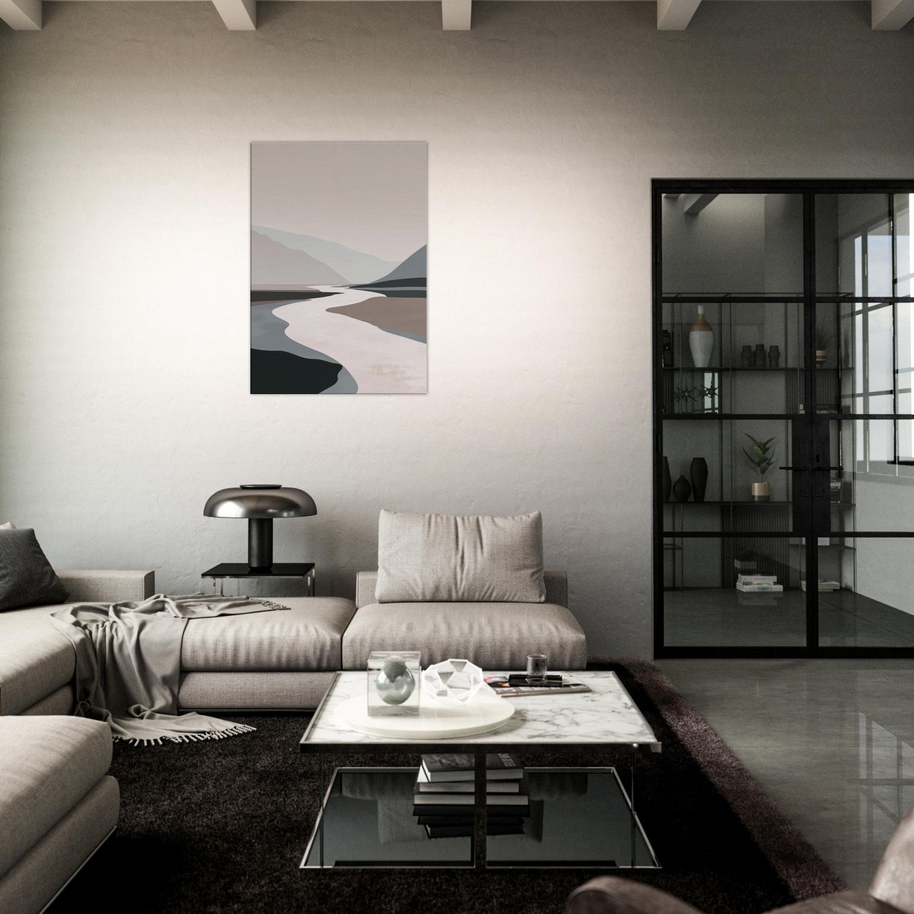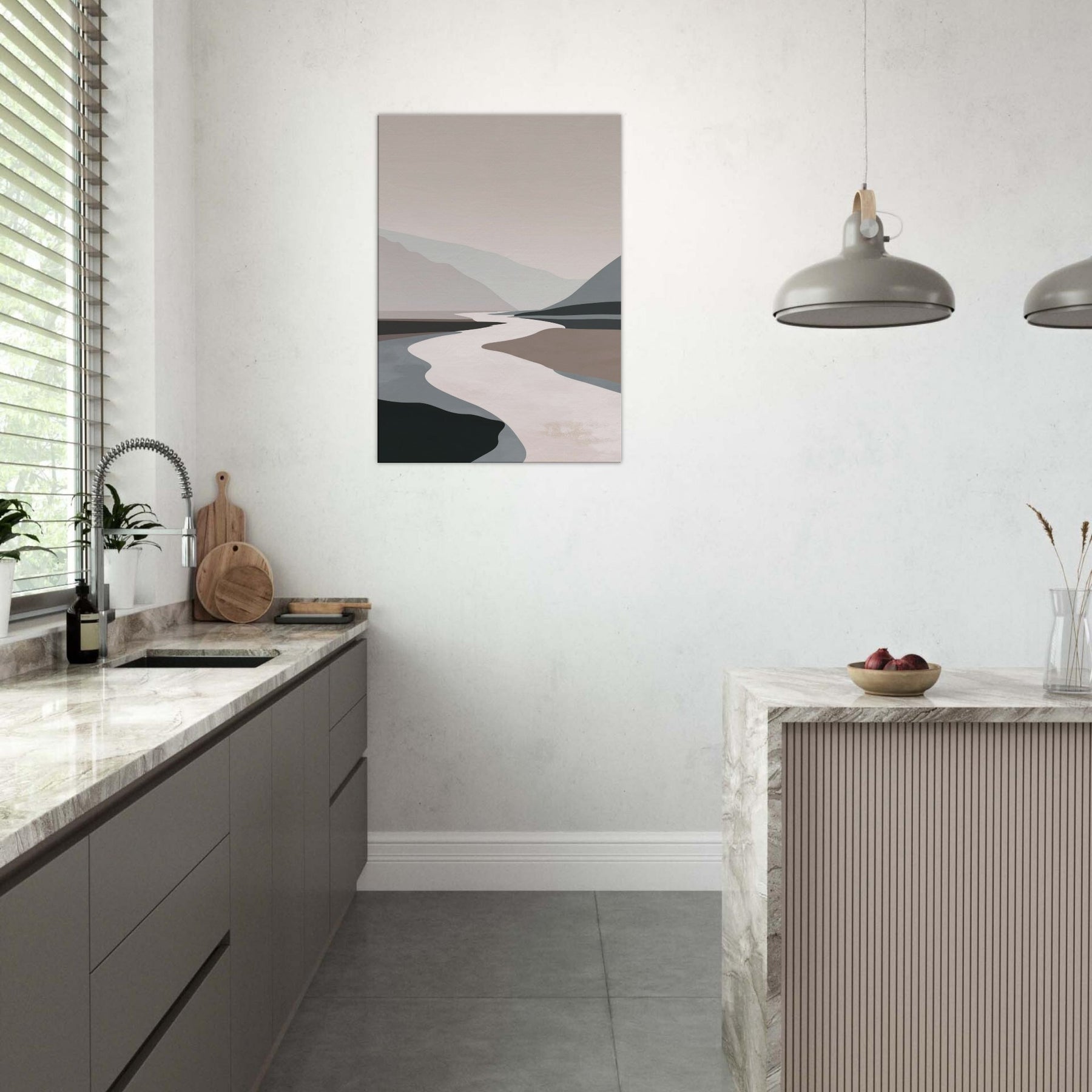Immerse your room in a quiet where the River becomes a meditative accent. This minimalist composition reveals the power of restraint: a whispered palette of sand, slate, and pale rose that glides along the canvas like light on water. The soft, curving river breaks the stillness with gentle rhythm, inviting contemplation without overpowering the room. Hang it to create a serene focal point a subtle, everyday escape that enhances living spaces with calm, clarity, and a touch of nature’s expansive horizon.