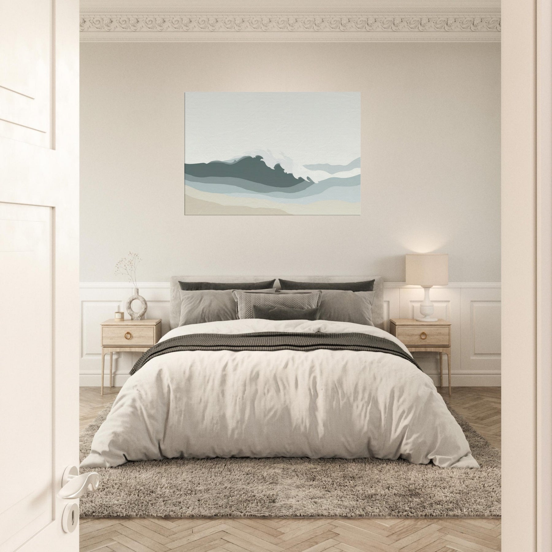 Ocean Waves unfurl in a quiet, generous sweep of understated color, inviting stillness into any room. This minimalist composition captures the rhythm of the shore with layered greens, blues, and cream that breathe as you do. The scene feels like a window to a calm morning soft edges, gentle contrast, and a vast, empty sky above. Hang it in a living room or bedroom to anchor natural light, soften furniture, and elevate everyday moments into a coastal pause.