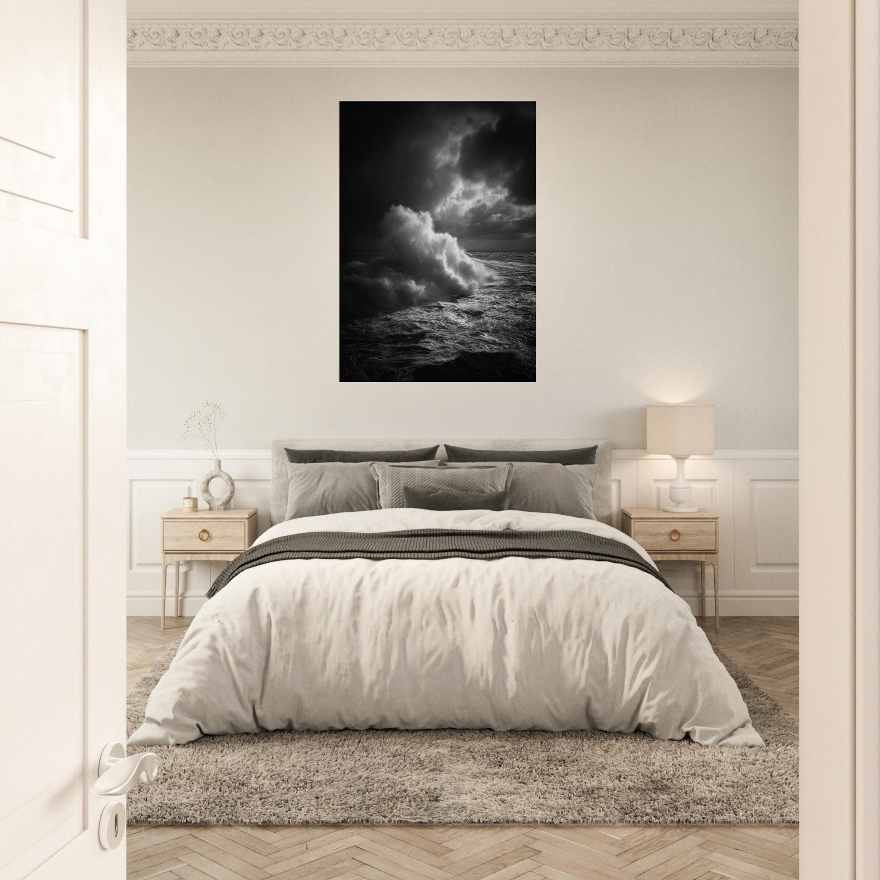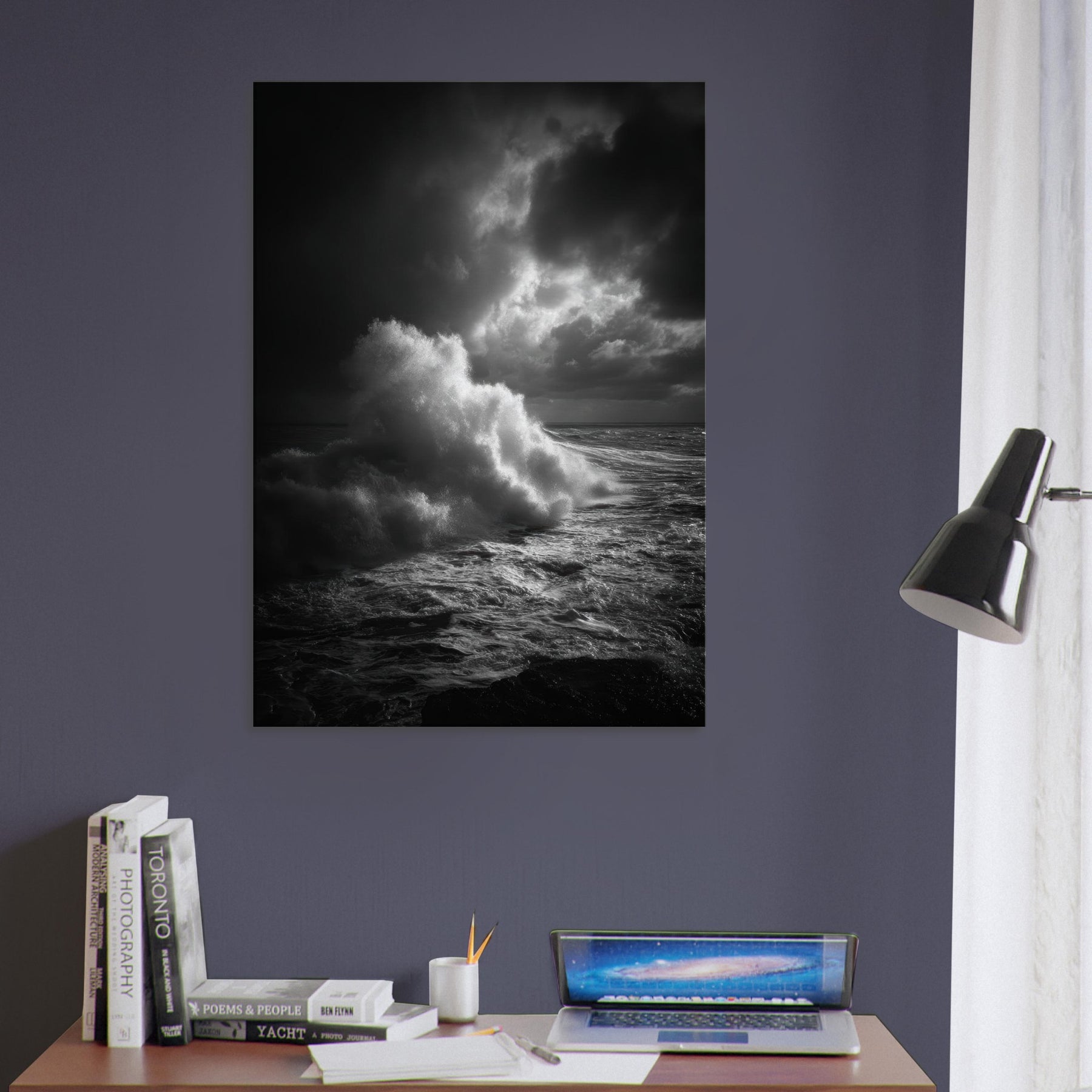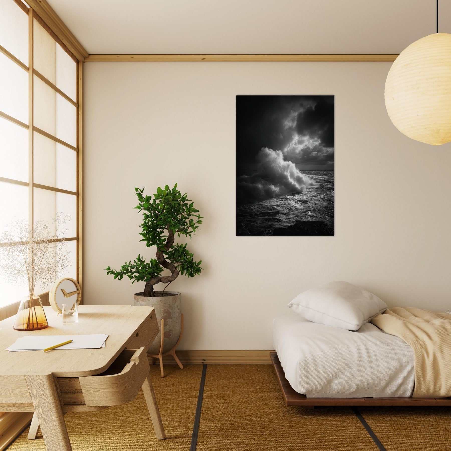 Let the sea rise within your room: a black and white study in momentum and light that quiets the mind as it stirs the senses. The towering wave, carved in stark contrast and tactile texture, invites a moment of breath between tasks, a cinematic horizon in which your furniture, rug, and art share the same pulse.