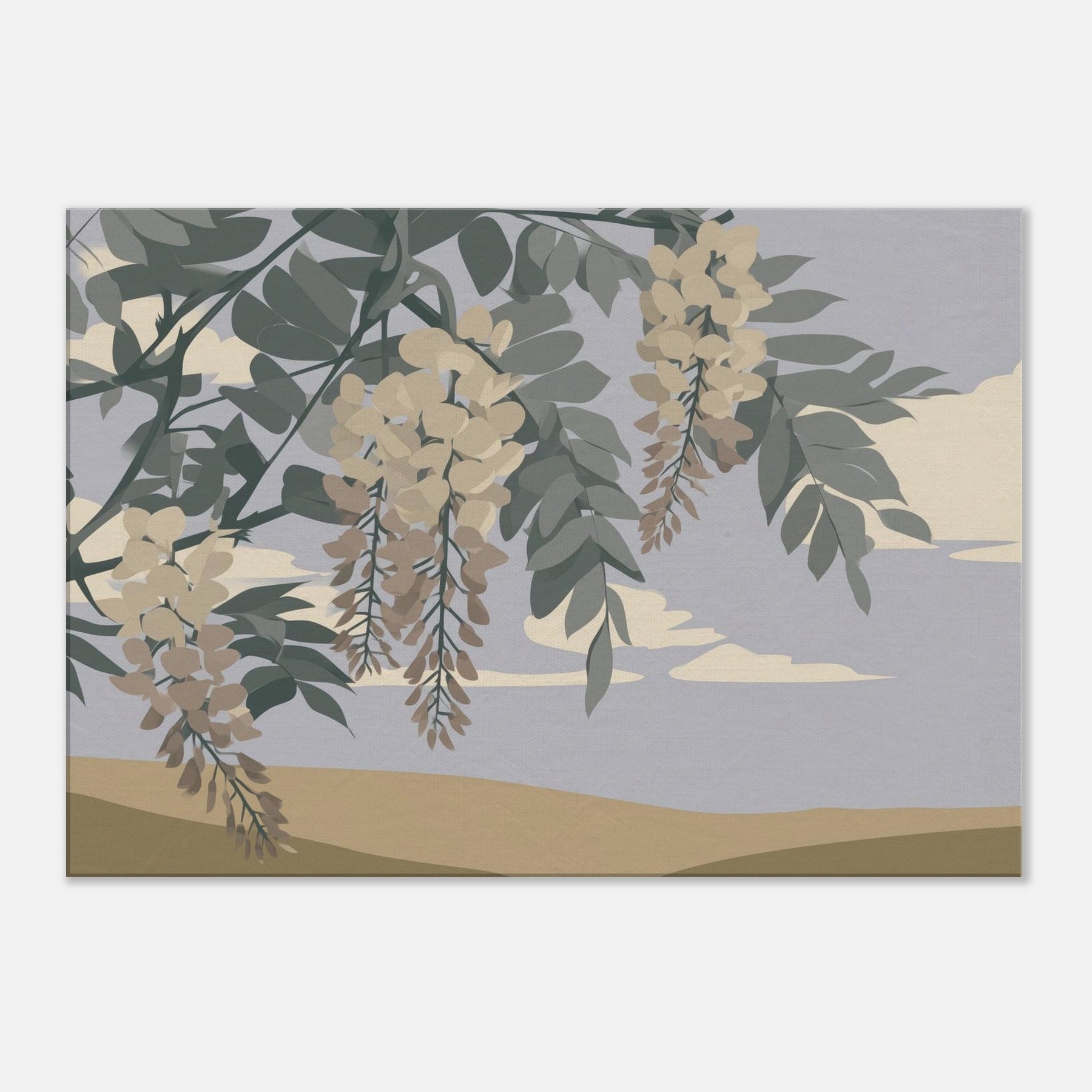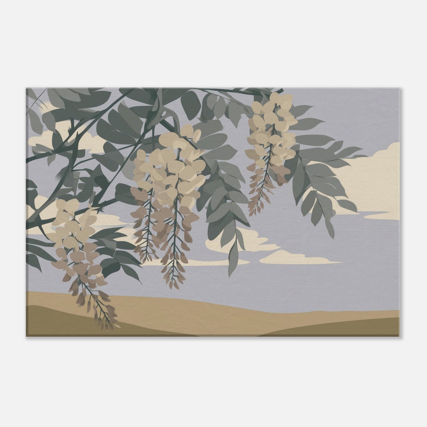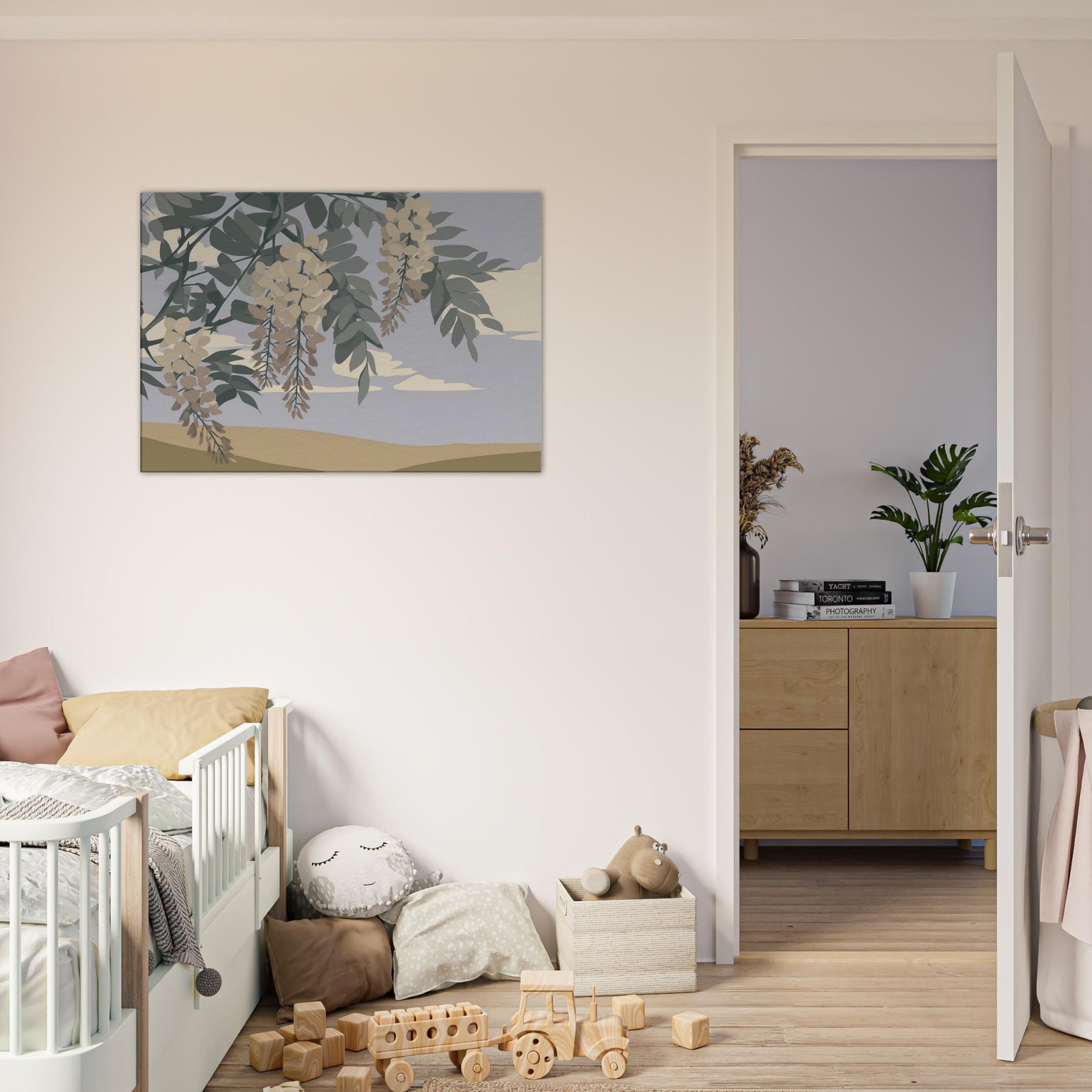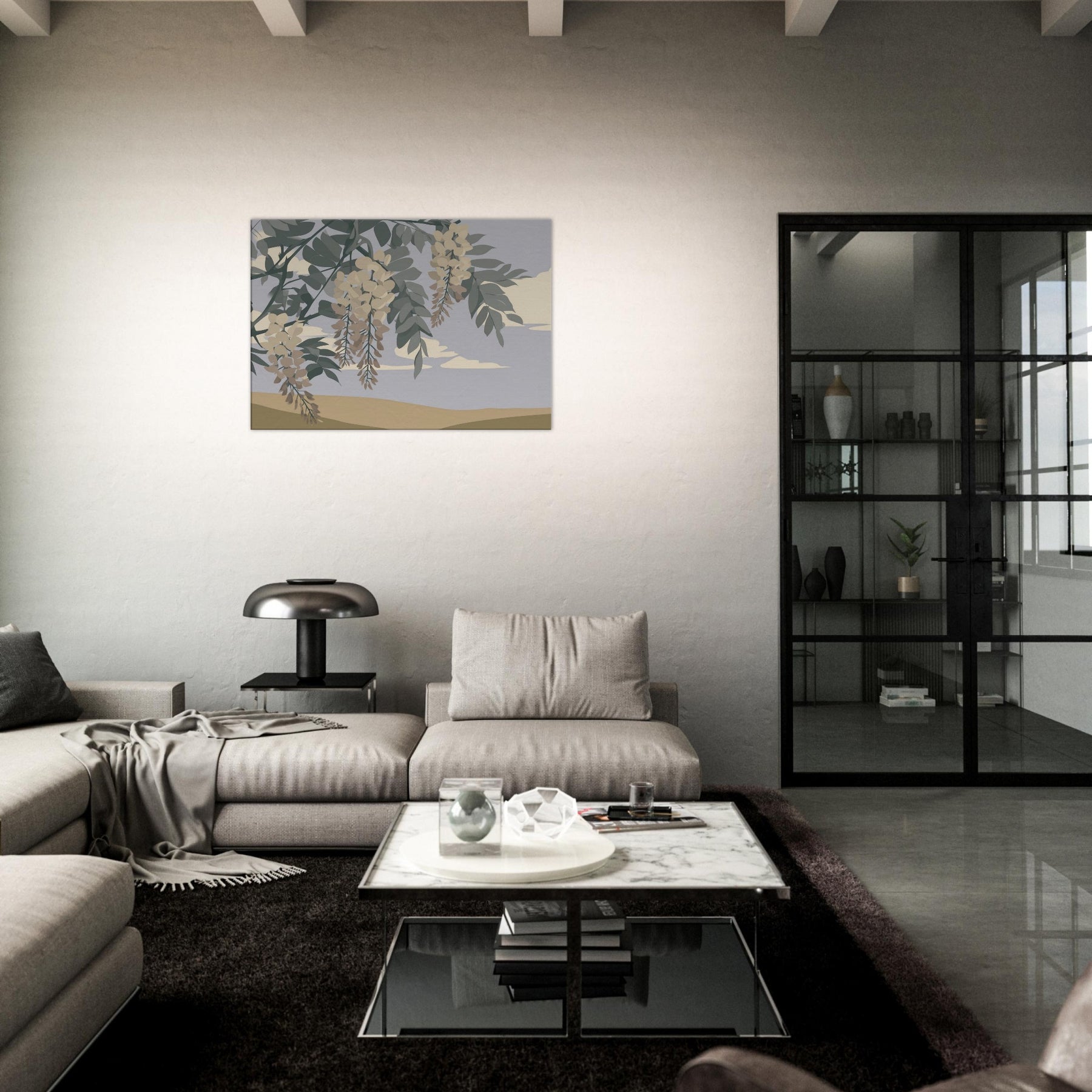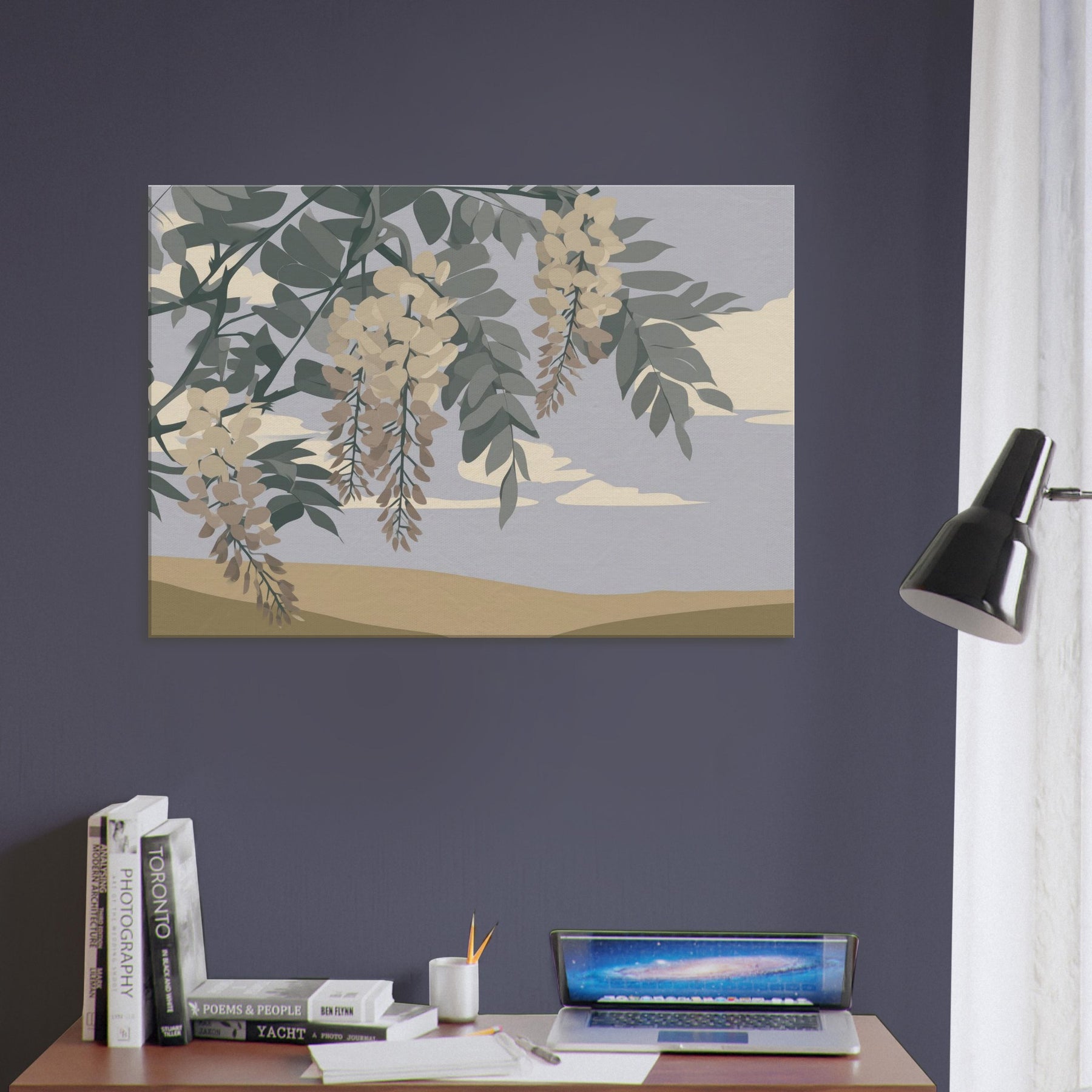 Let Wisteria cascade in soft, restrained grace across your room. This minimalist study of nature invites gentle light and quiet air, a tranquil counterpoint to busy days. The pale blossoms and restrained palette kindle a sense of calm, while the hanging clusters draw the eye upward, widening ceilings and easing transitions between spaces. Ideal above a sofa or in a serene corridor, it fosters contemplative moments and turns any living space into a quiet garden.