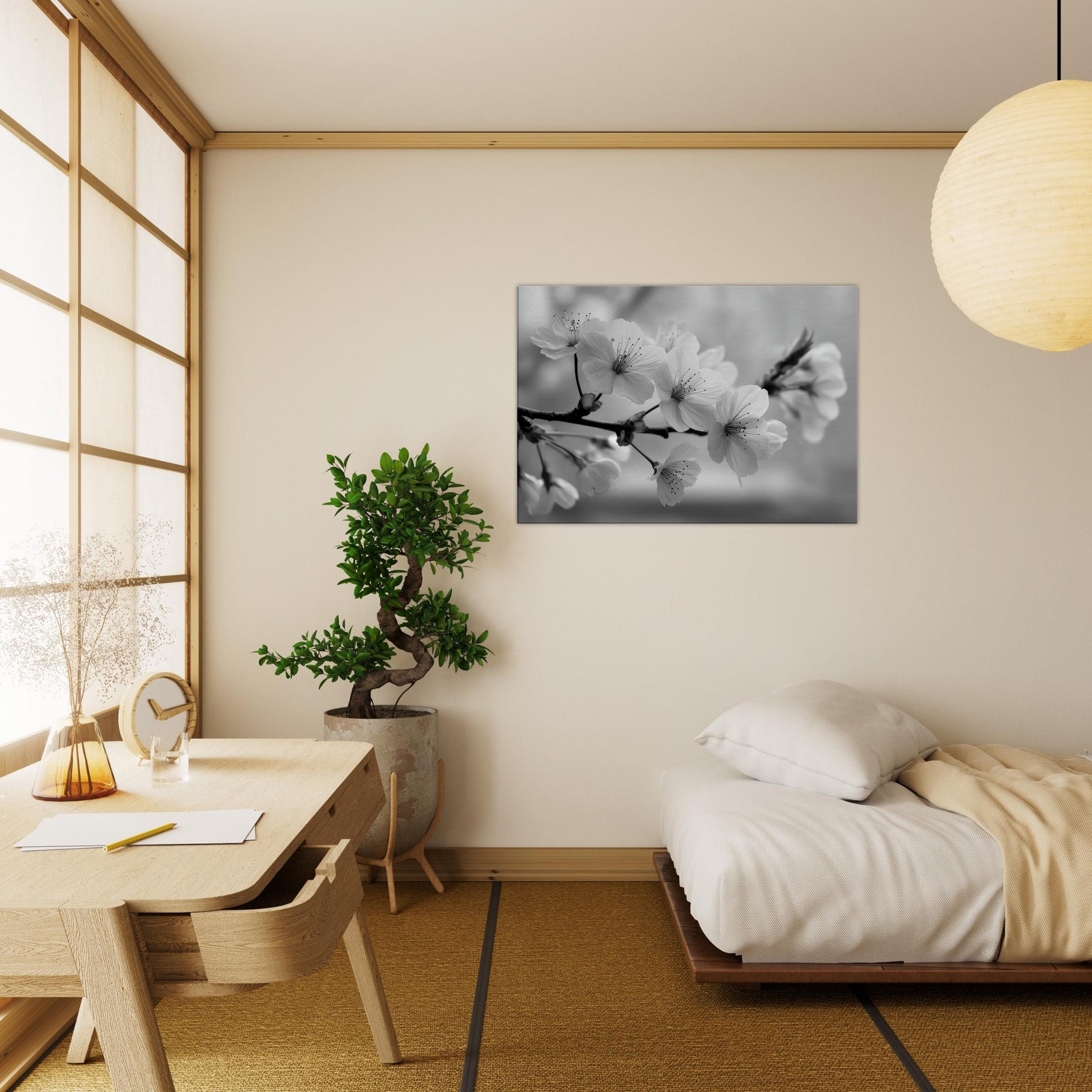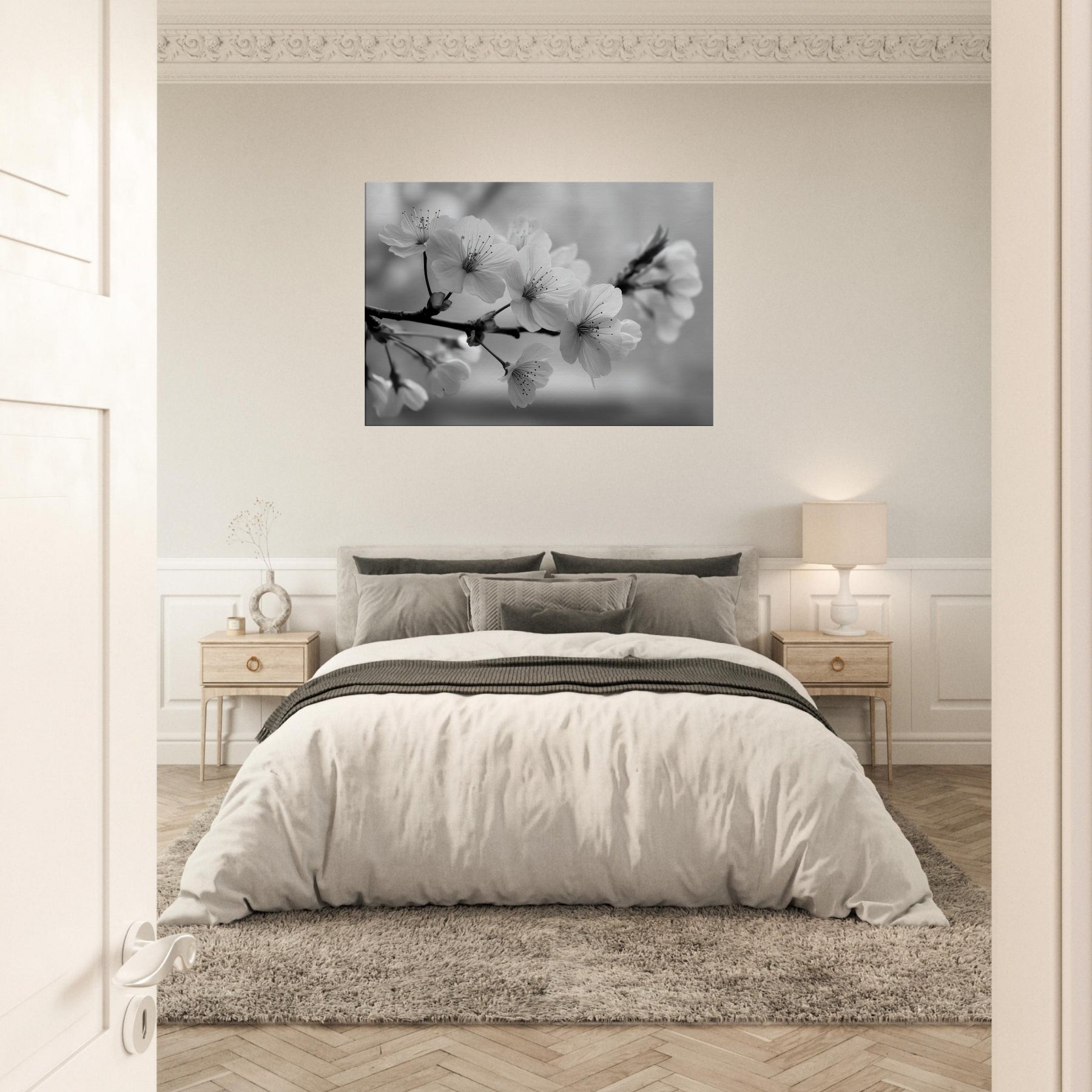 Let your walls breathe with the quiet grace of Cherry Blossom captured in a sleep soft monochrome. This black and white study threads delicate petals along a slender branch, inviting a moment of stillness and reflection. The restrained contrast and airy negative space create a serene atmosphere perfect for a living room or bedroom that longs for calm focus. Whether paired with soft textures or stark furnishings, it elevates everyday moments into a subtle, gallery worthy mood, turning light, shadow, and nature into a daily source of inspiration.