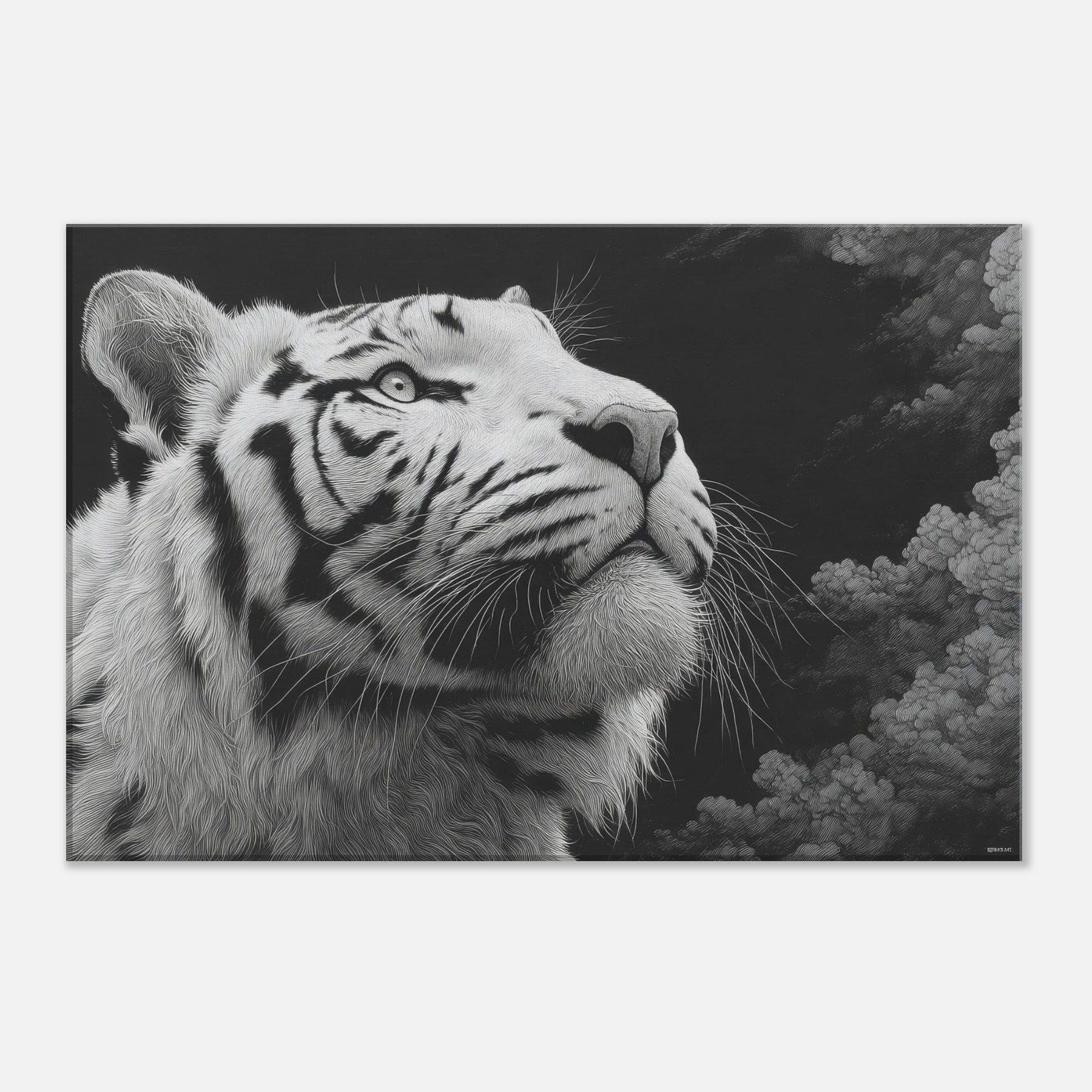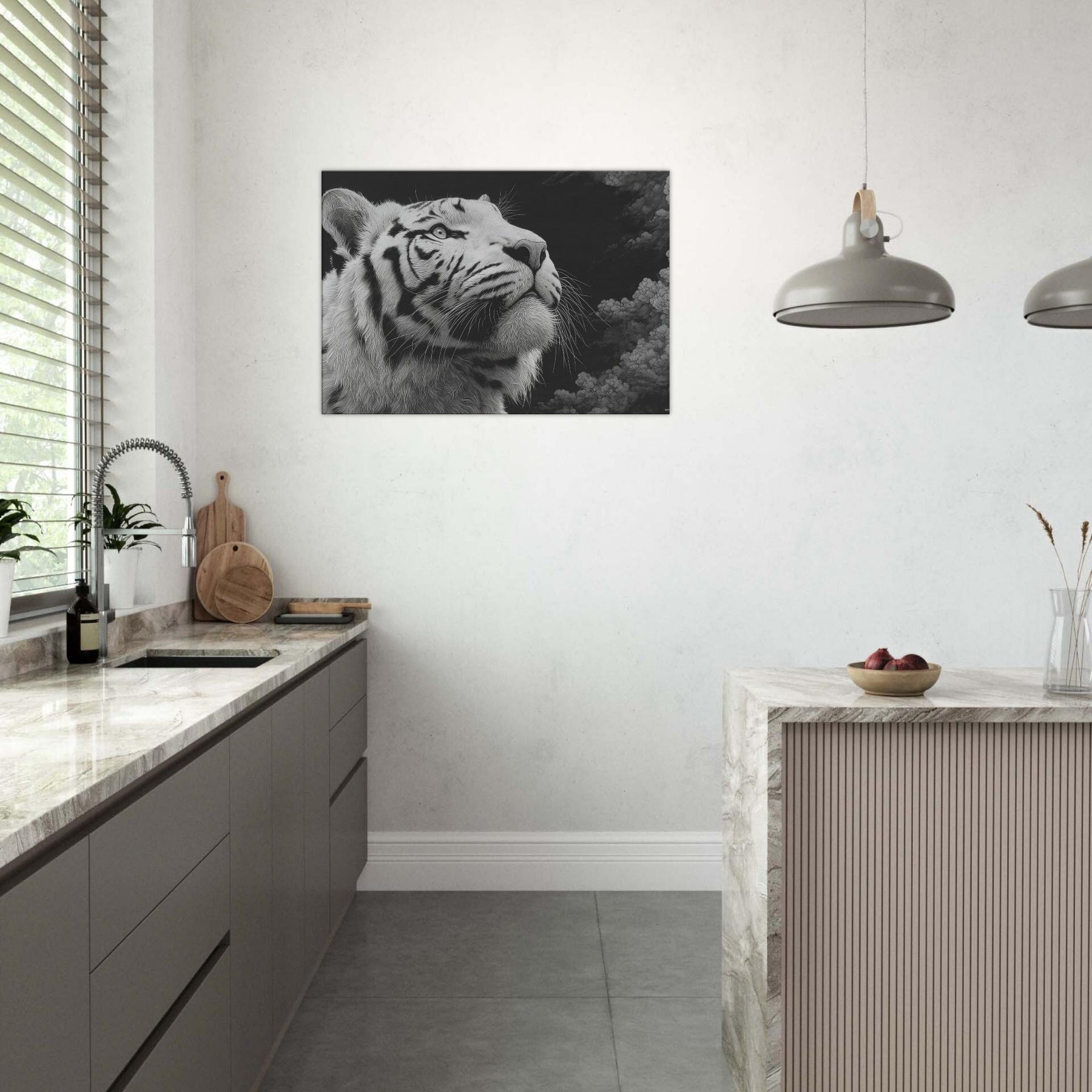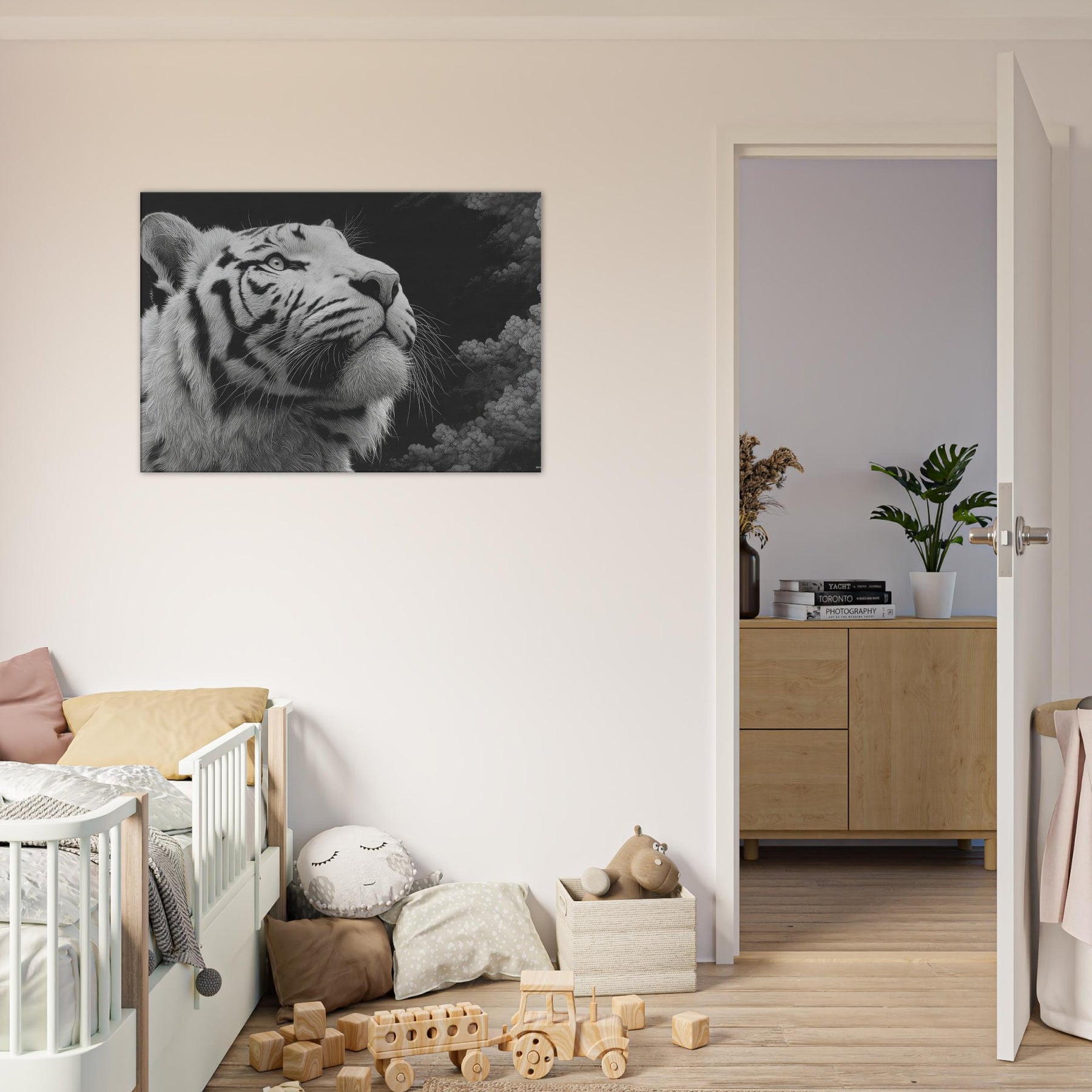White Tiger of the West emerges in bold, quiet contrast, a celestial guardian whose gaze threads the room with ancient resolve. In black and white lines, the creature seems to drift between myth and room, inviting contemplation and quiet courage. This art feels like a moonlit threshold, turning a hallway, living room, or study into a shrine of focus and wonder. With its tactile fur and ink brushed atmosphere, it elevates space with timeless gravity while inviting guests to slow down and listen to the mythic breath of the West.