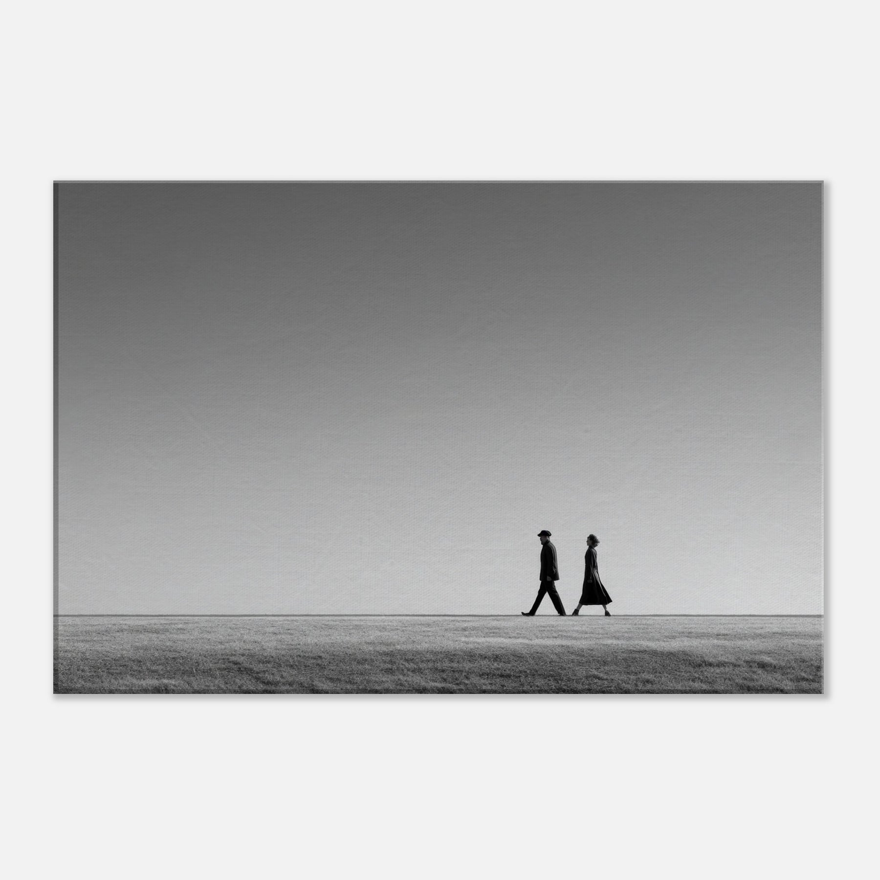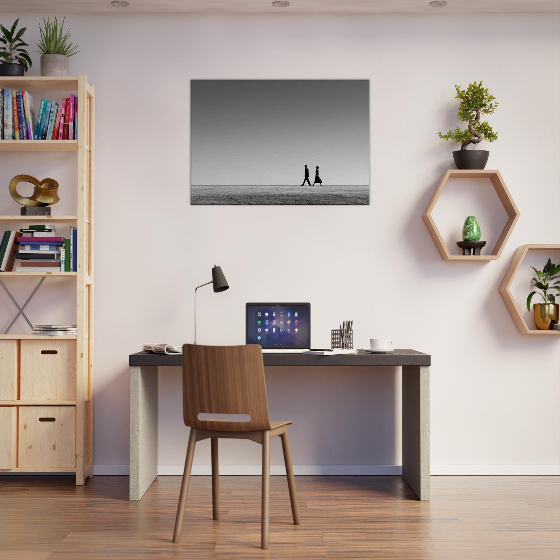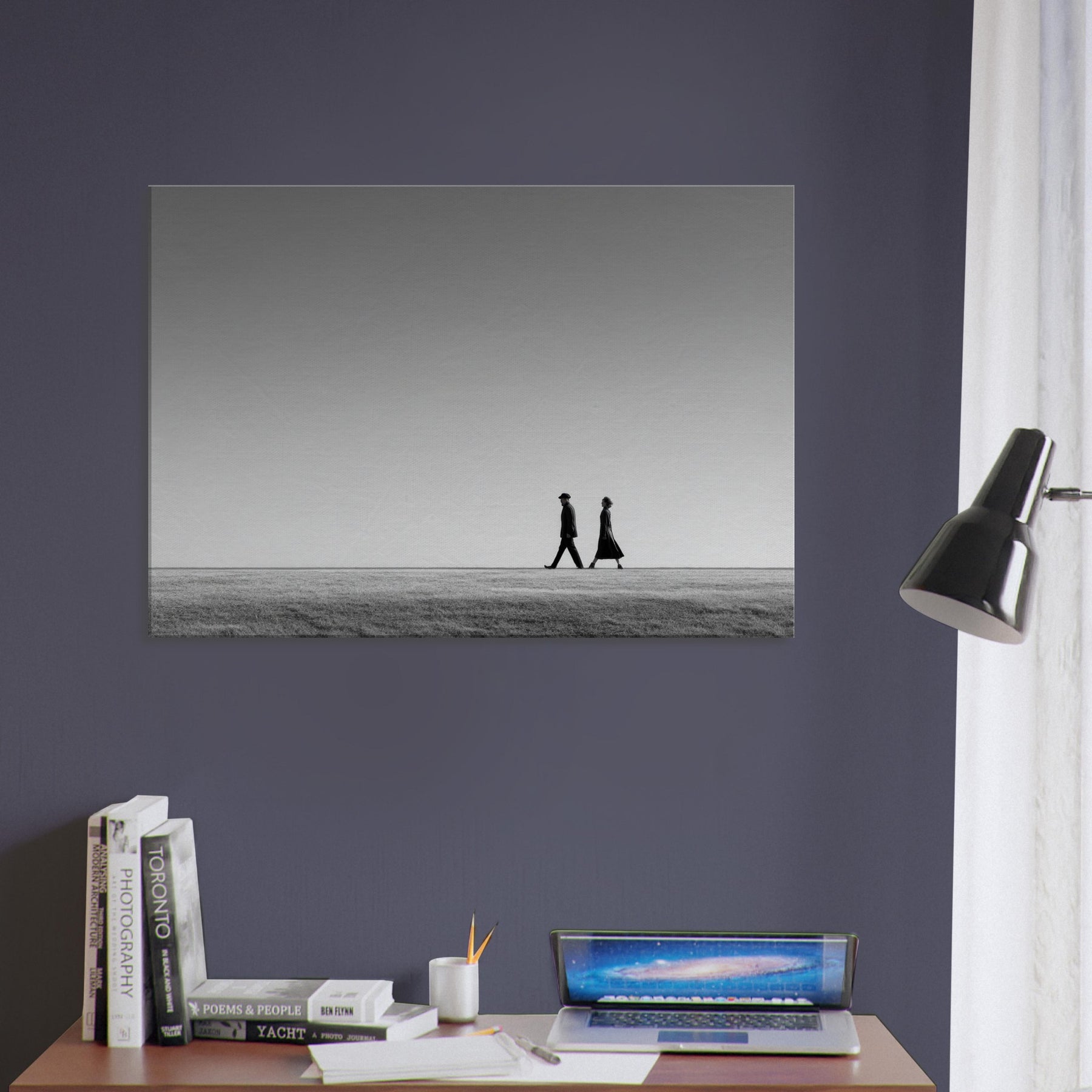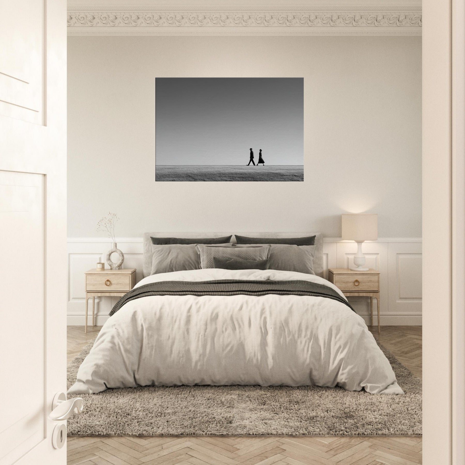 Primary Subject: Couple Walking rests in monochrome, as two figures drift along a vast, quiet horizon. This Black and White composition folds atmosphere into every line stark silhouettes, gentle curves, and a mood of shared silence. It elevates a living space with cinematic calm, inviting slow, thoughtful moments. Perfect above a sofa or in a corridor, the image turns ordinary walls into a destination for reflection and connection.