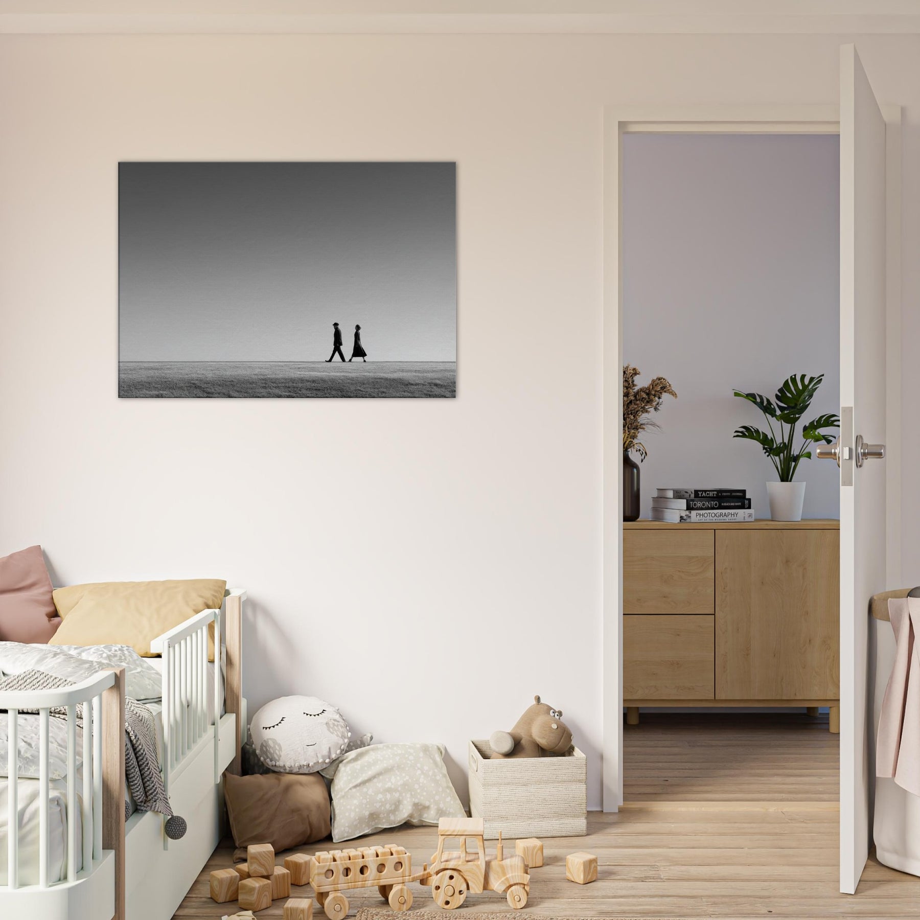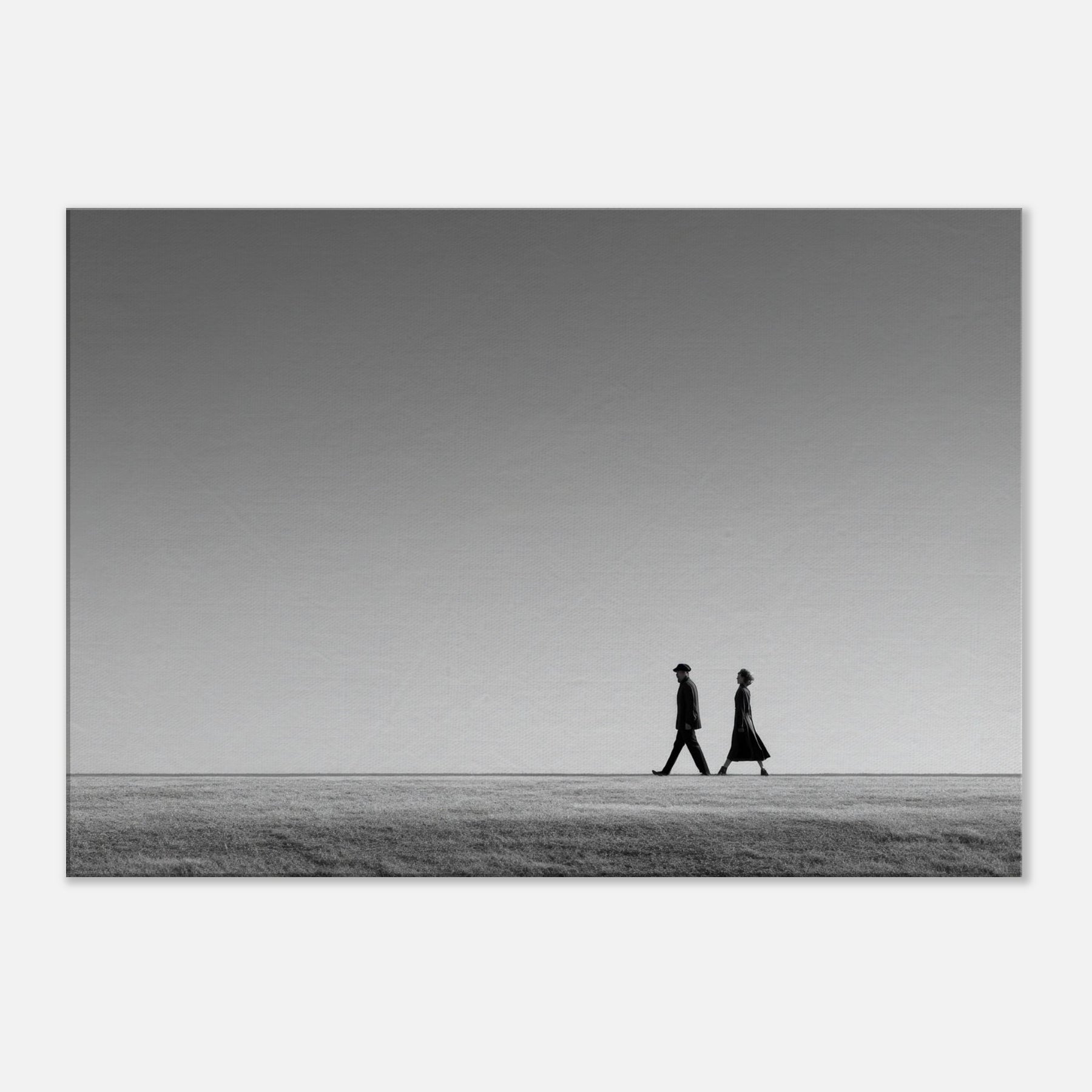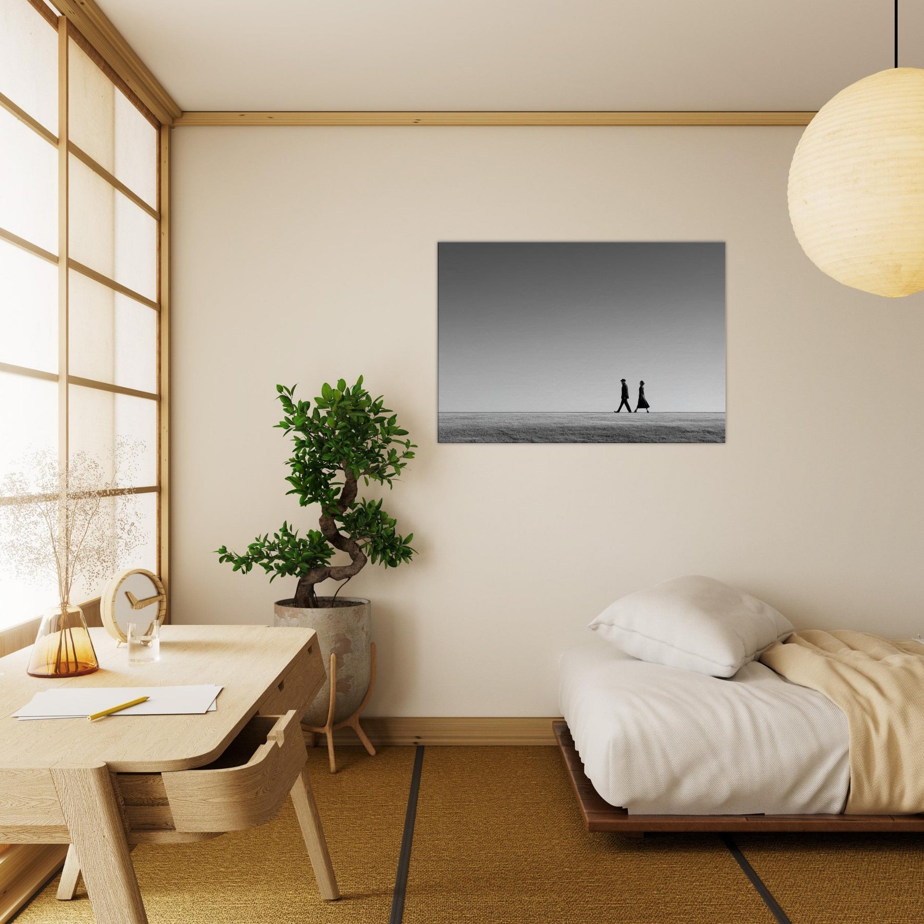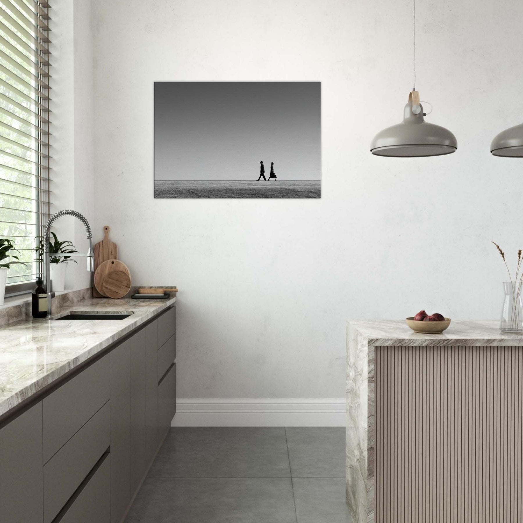 Primary Subject: Couple Walking rests in monochrome, as two figures drift along a vast, quiet horizon. This Black and White composition folds atmosphere into every line stark silhouettes, gentle curves, and a mood of shared silence. It elevates a living space with cinematic calm, inviting slow, thoughtful moments. Perfect above a sofa or in a corridor, the image turns ordinary walls into a destination for reflection and connection.