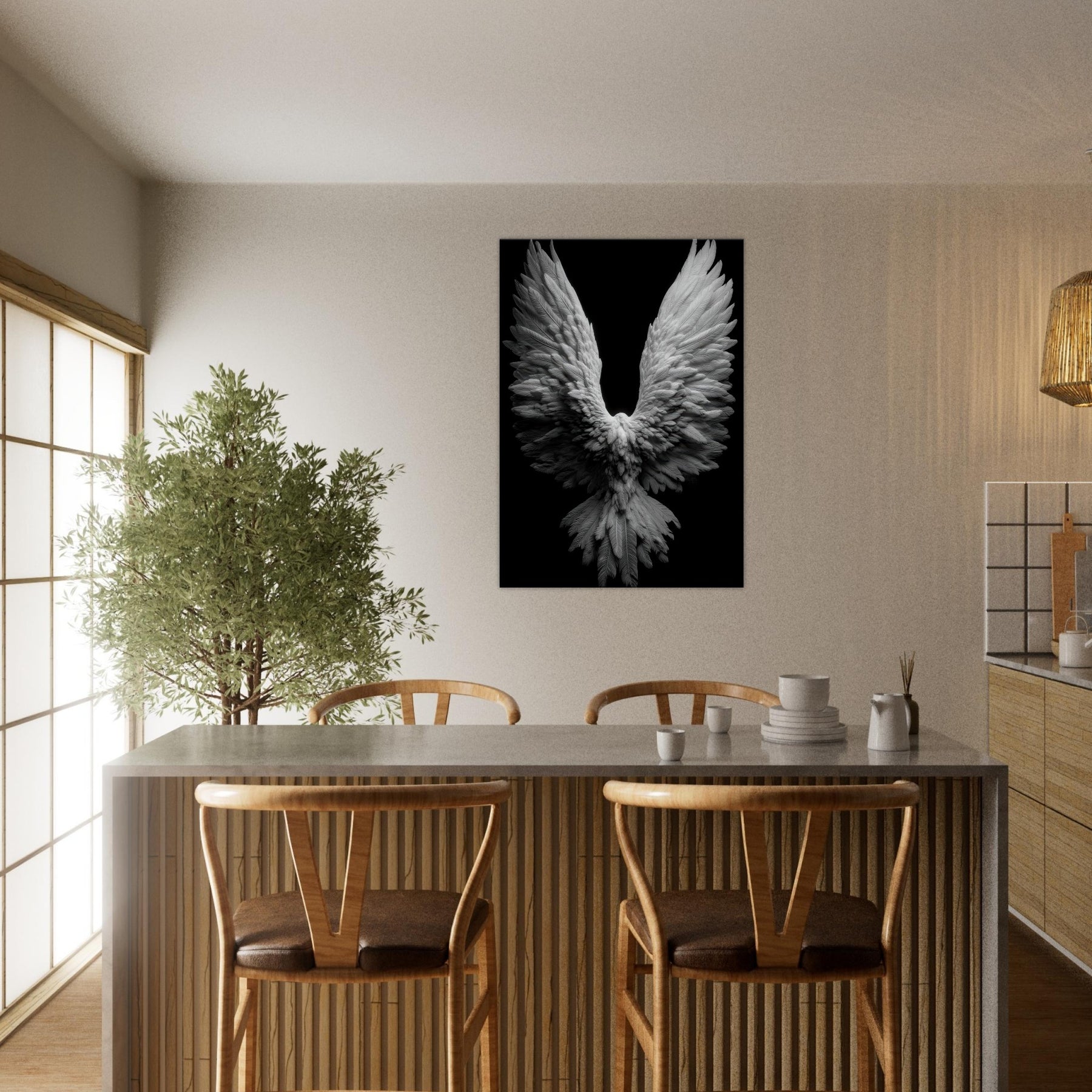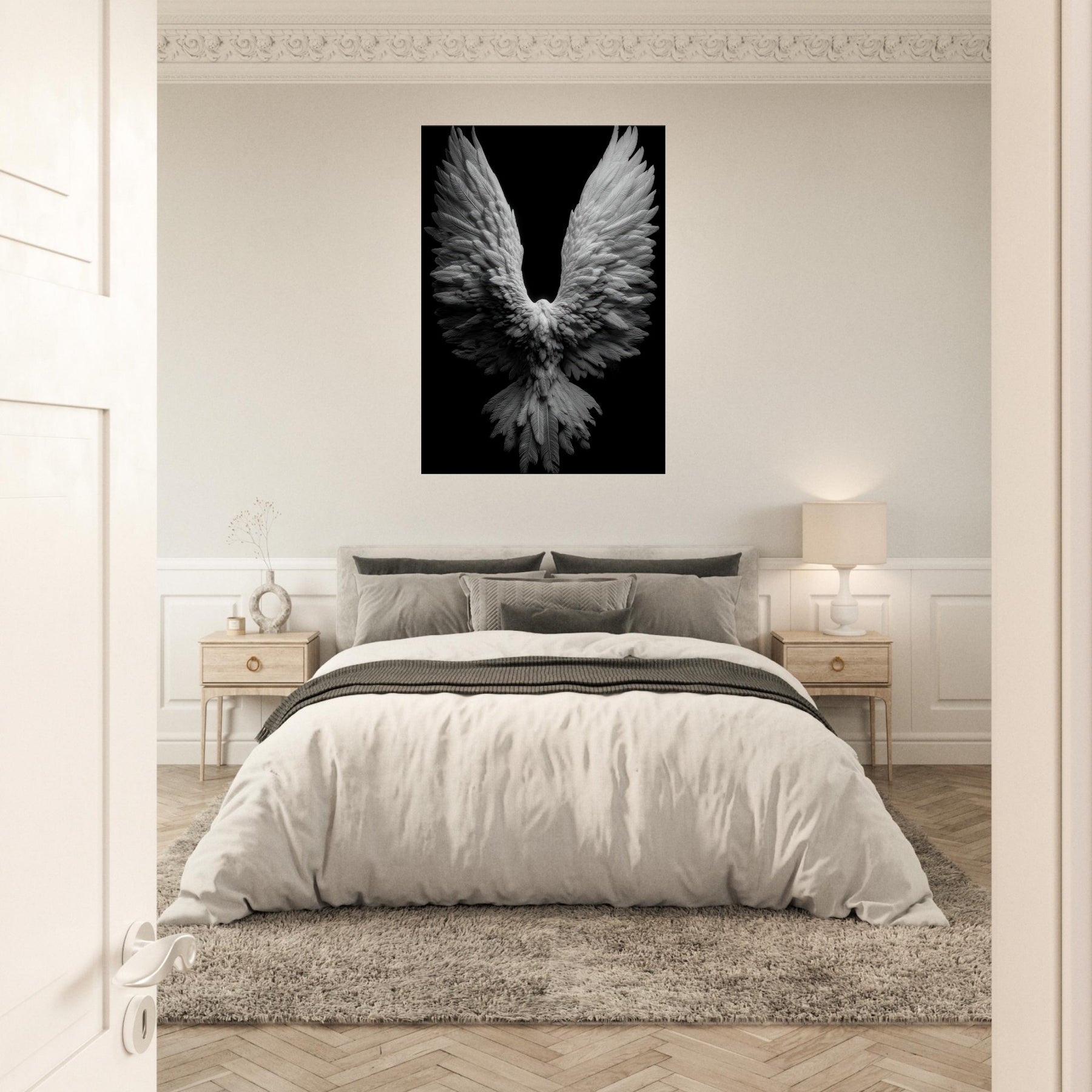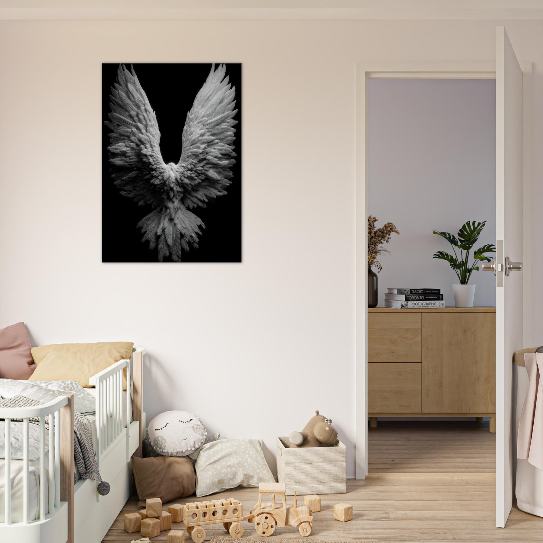 Guardian Angel Wings unfurl in stark, textile grace, a black and white reverie that settles like whispered snowfall across the wall. The sculpted plumage carries light and shadow in quiet dialogue, inviting calm, reverent focus to a living space. This monochrome masterpiece breathes elegance into bedrooms and lounges, heightening textures, fabrics, and candlelight. Its ethereal presence suggests protection and memory, turning empty corners into a sanctuary. With its contemplative mood, Guardian Angel Wings becomes a vigilant, artful companion softly echoing the rhythm of daily life and sleep.