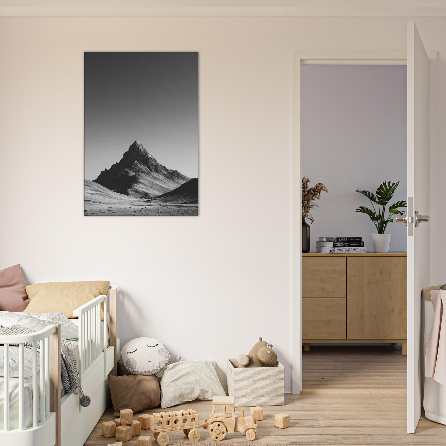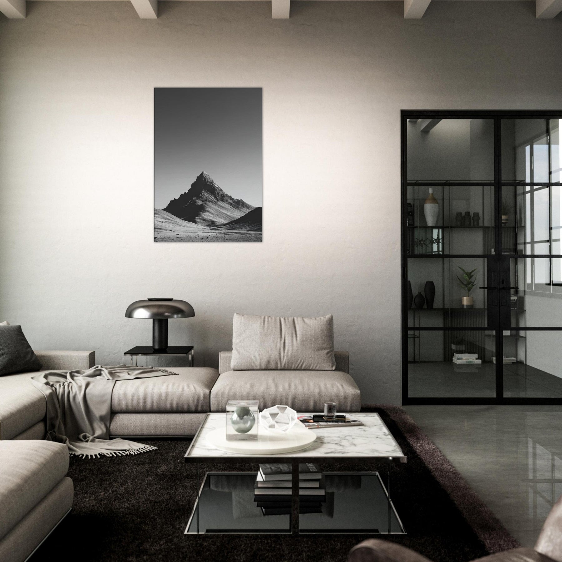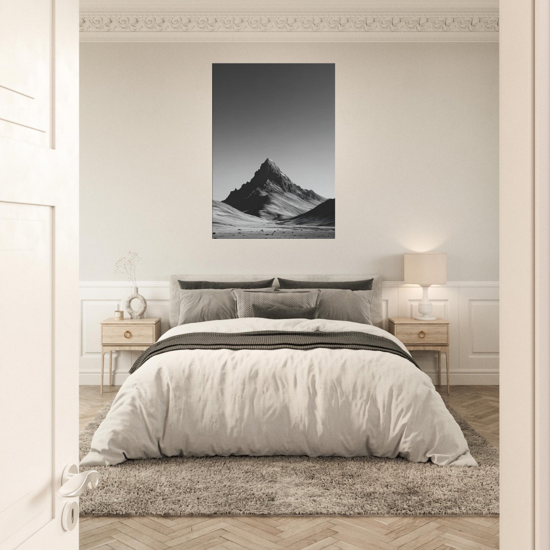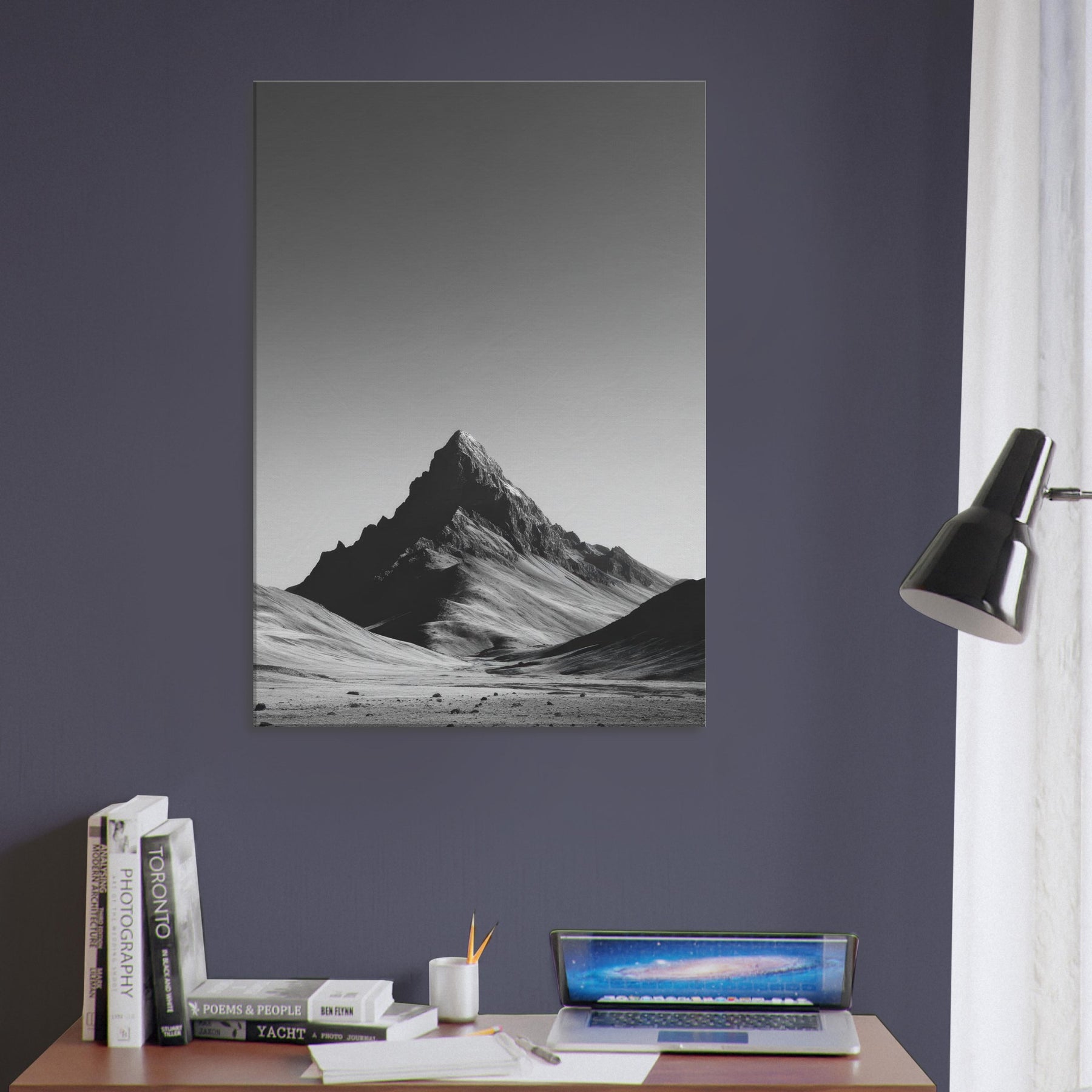 In this stark study of nature, Endless Horizon rises against a vast, silent canvas. The black and white interplay traces wind blown ridges and the solitary peak, inviting a quiet contemplation that breathes through your living space. The piece envelops walls with mood and depth, turning daily rooms into a gallery of restraint and awe. Its timeless silhouette pairs with clean furnishings, amplifying light and shadow while offering a calm, expansive focal point.