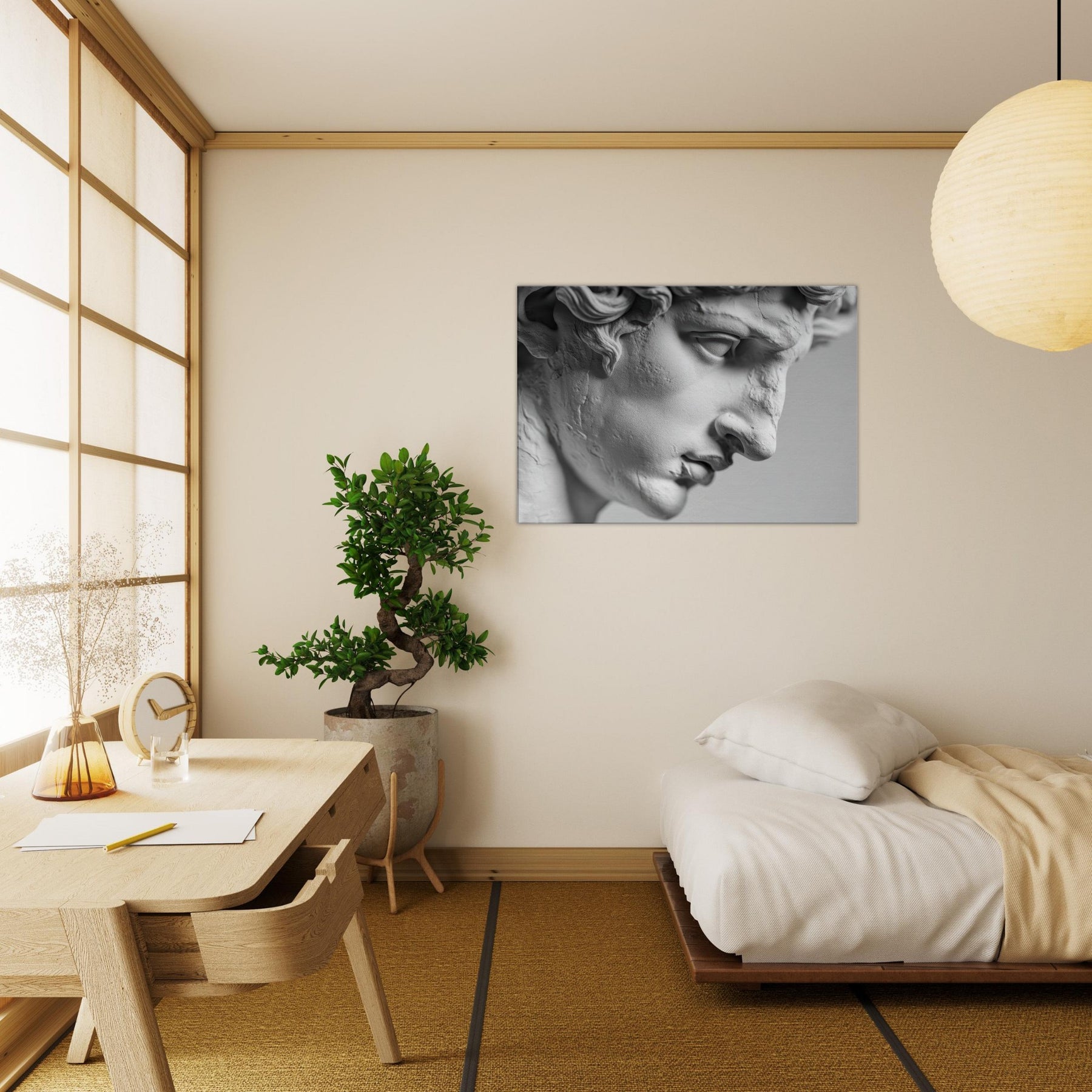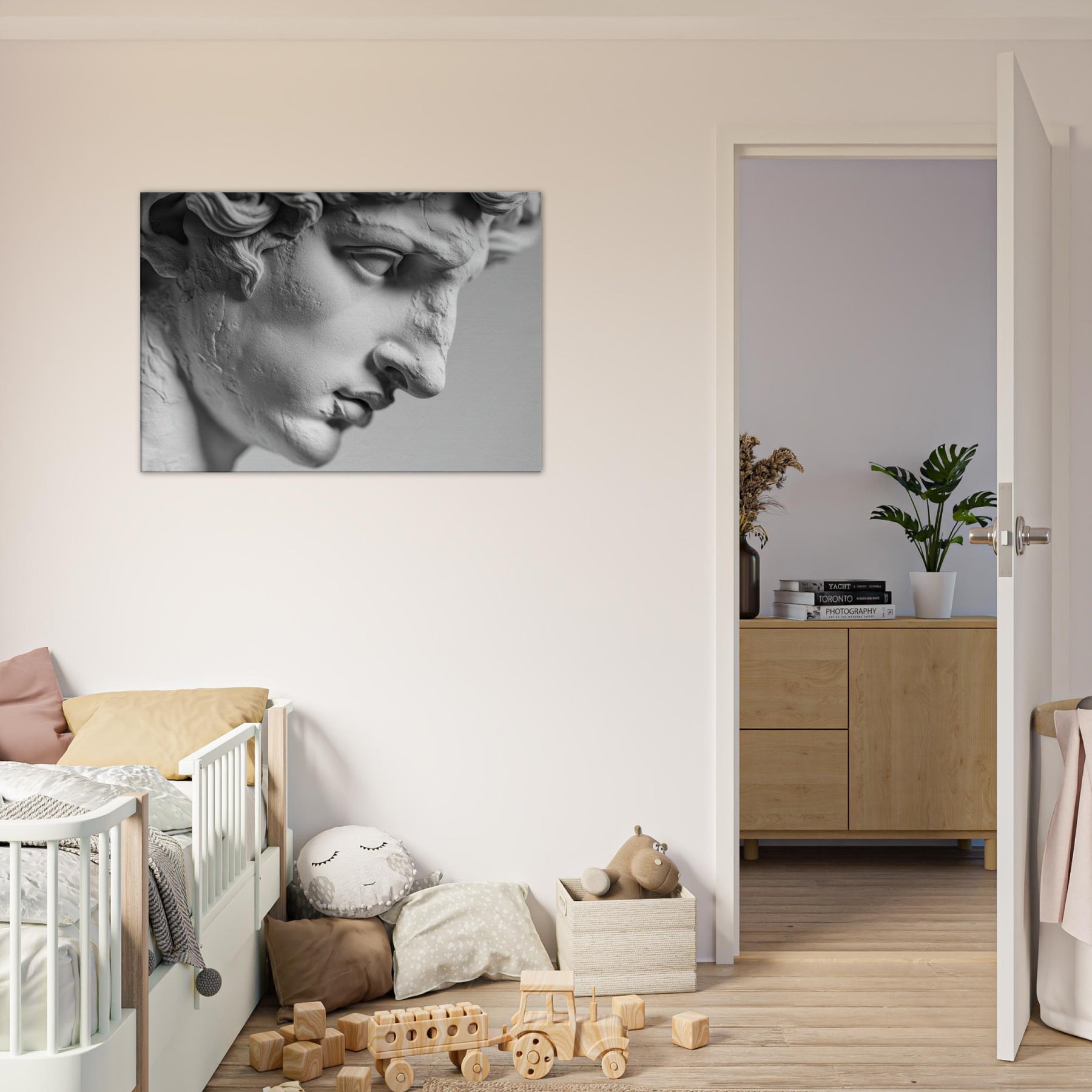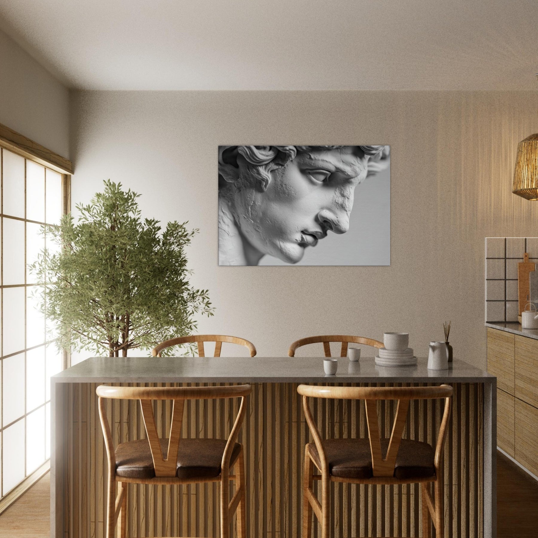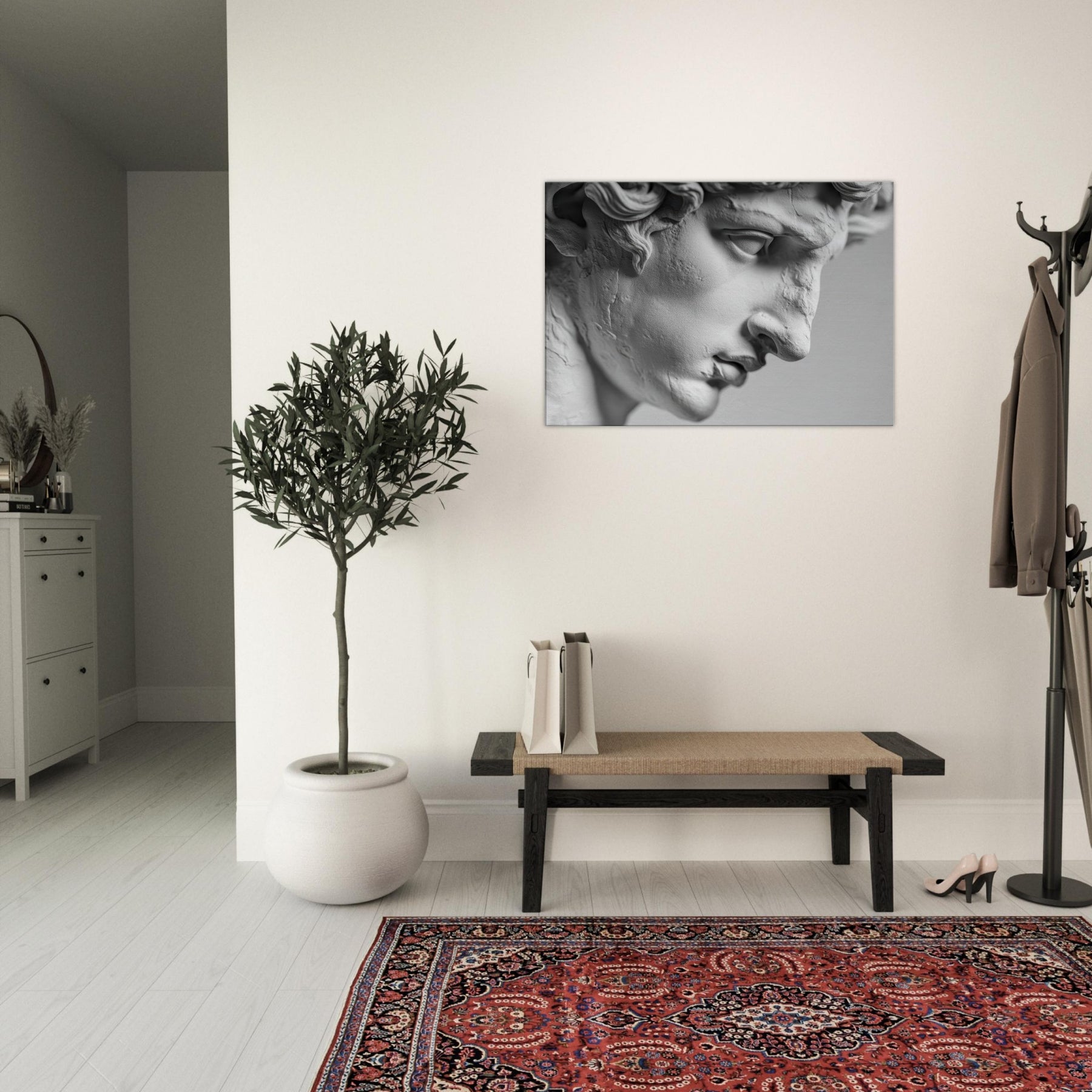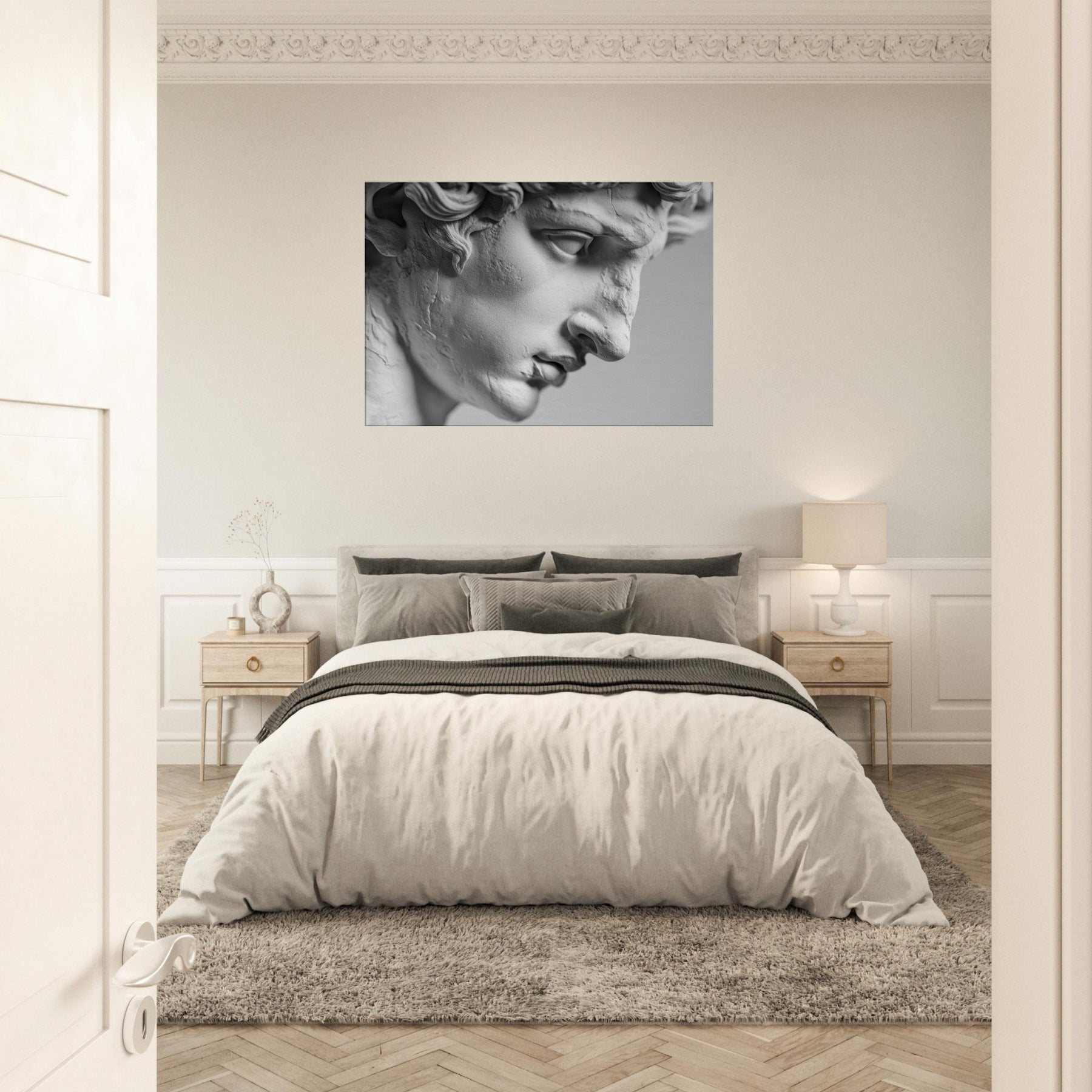 Immerse your space in the cool glare of marble stillness. This black and white study channels mythic presence through the serene profile of the Venus and David figures, a sculptural whisper that feels suspended between history and now. The texture mimicry of stone crackle, grain, and soft shadows draws the eye into a quiet resonance, making every room feel taller and more contemplative. Perfect for a living room or study, it invites hushed conversations and an atmosphere of refined elegance. The central subject is Mythical Figures (Venus, David).
