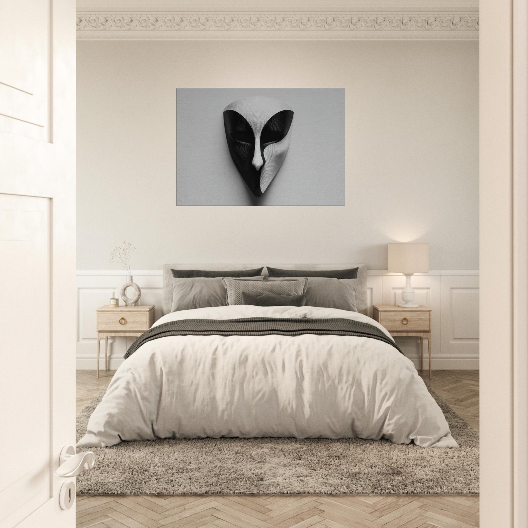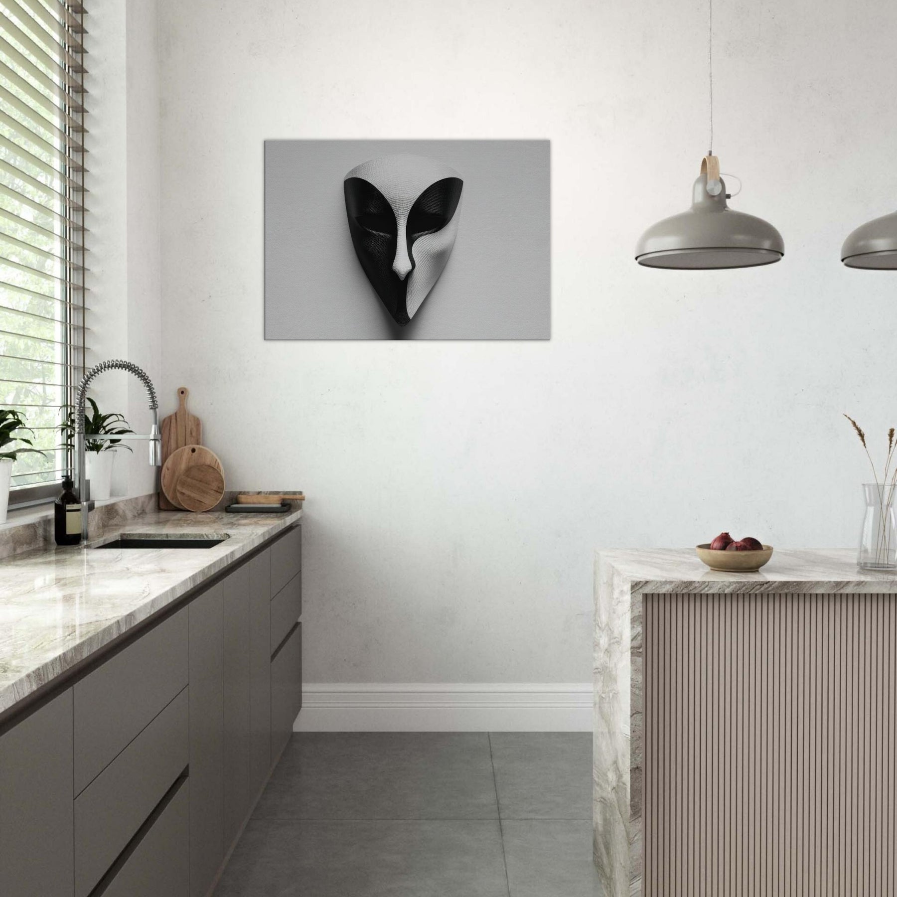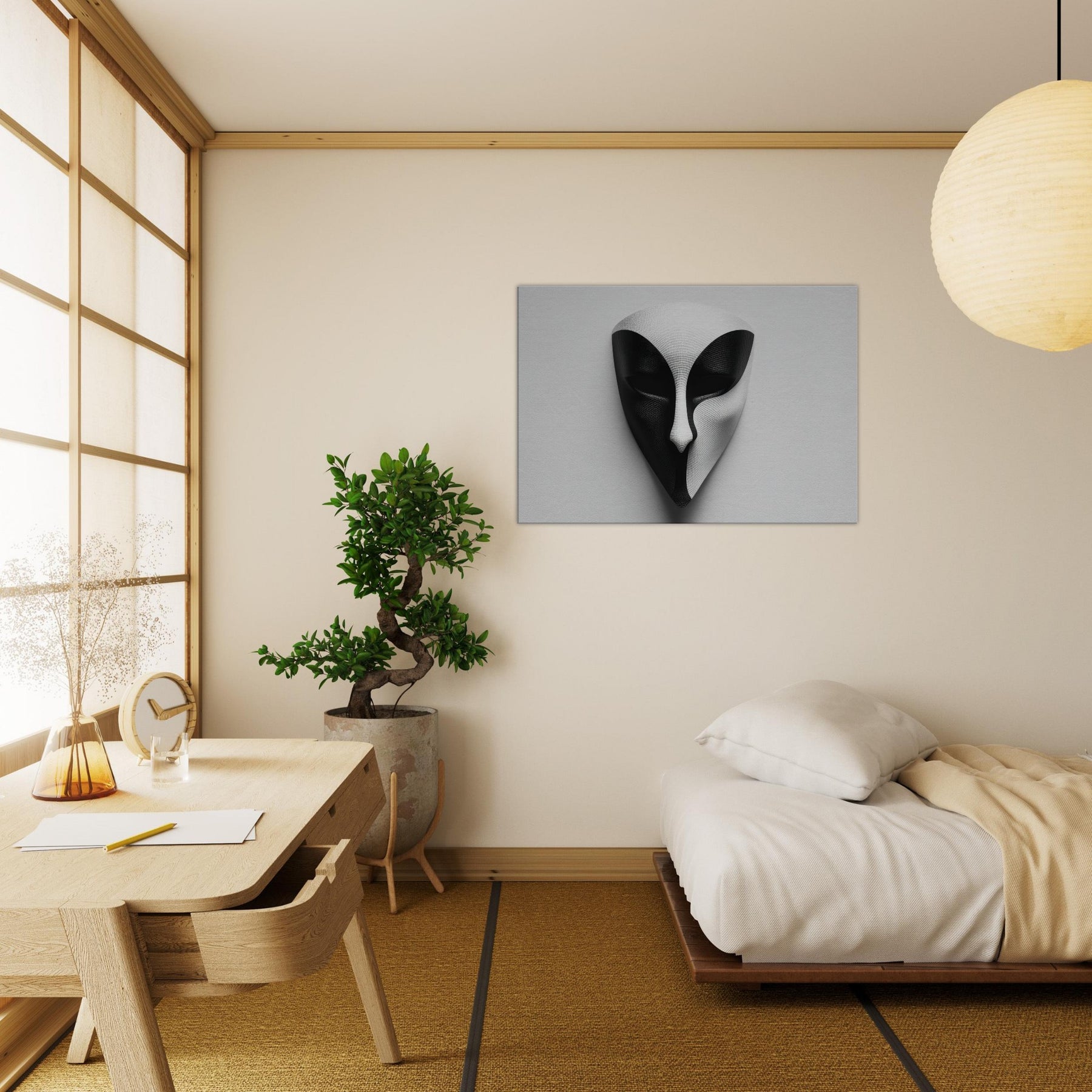 An enigmatic Mask (Neutral Theater) Silhouette holds court against a quiet gray field, its dual contours carved in stark black and pale white. The piece invites the eye to linger, tracing the soft curves and the sharp edge where light becomes shadow. In a living room it becomes a conscience of design an anchor for a monochrome palette, a theater of mood. Its restrained drama pairs beautifully with clean lines, tactile textures, and quiet conversations, turning walls into a stage for everyday poetry.