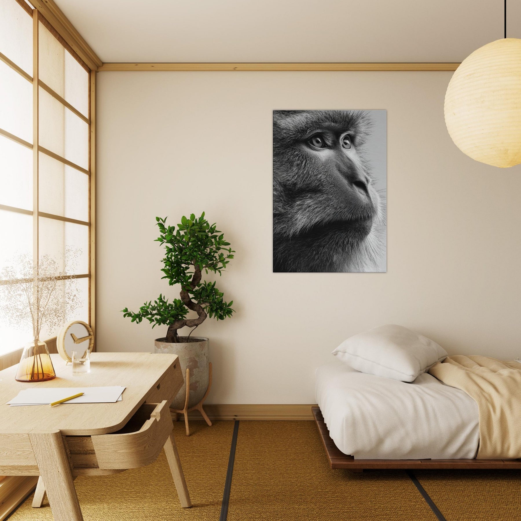 In monochrome, this intimate profile captures a quiet, patient gaze that invites slow contemplation. The texture of fur reads like soft brushwork, every line a memory in shadow and light. This piece settles into a living room or study with timeless calm, turning a wall into a window of focus and wonder. The Monkey becomes a sentinel of stillness, a reminder to pause and listen to the room as it breathes an exquisite, kinetic stillness that enriches everyday space.