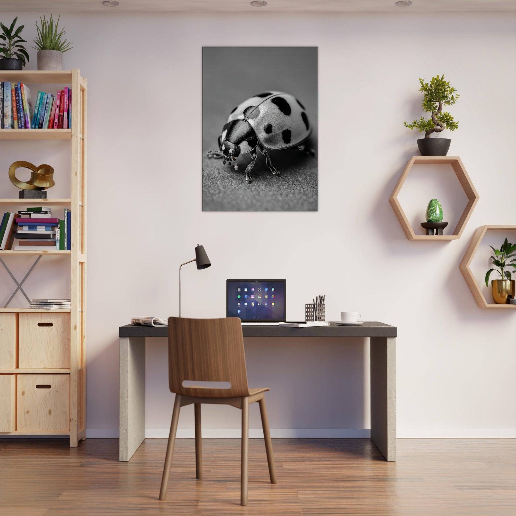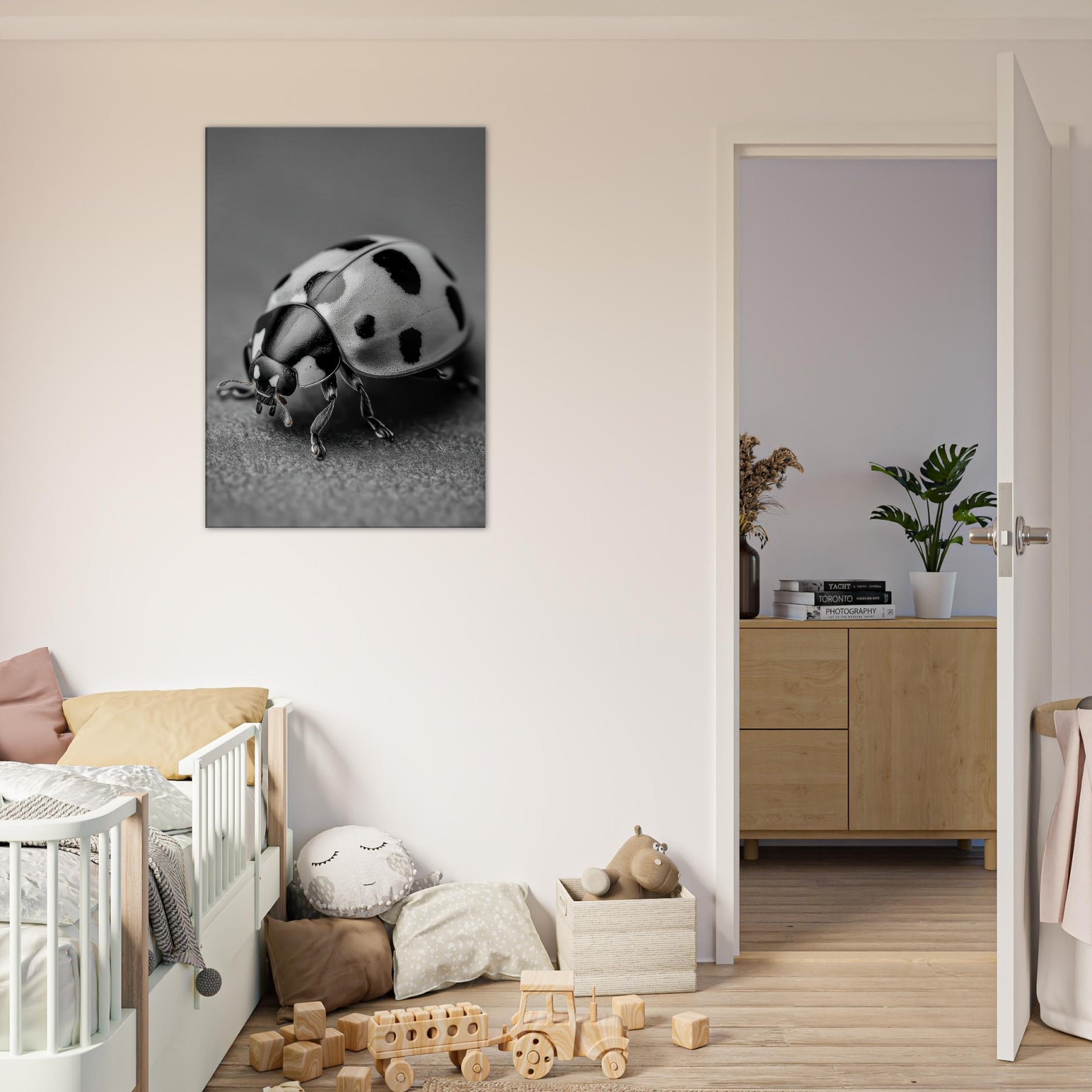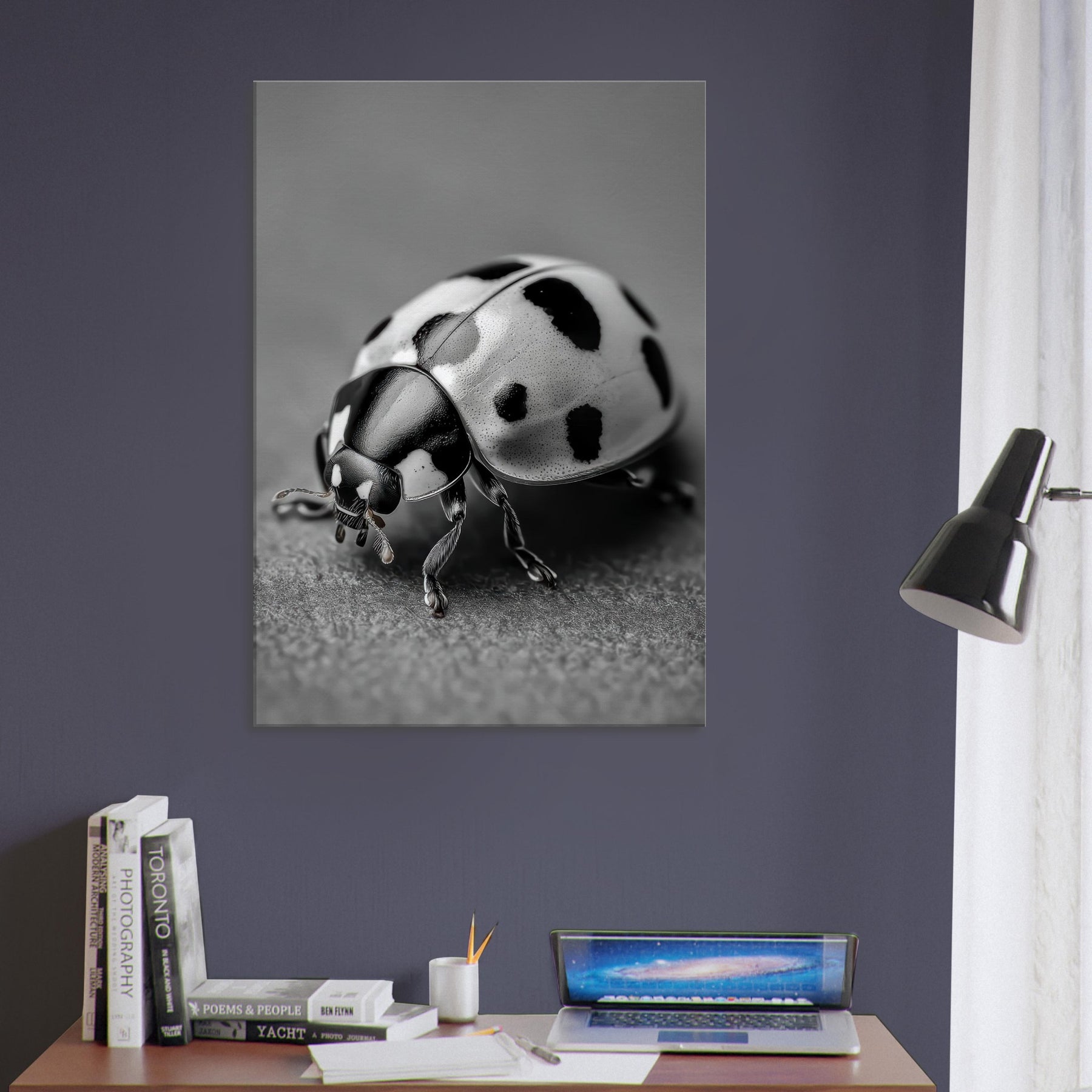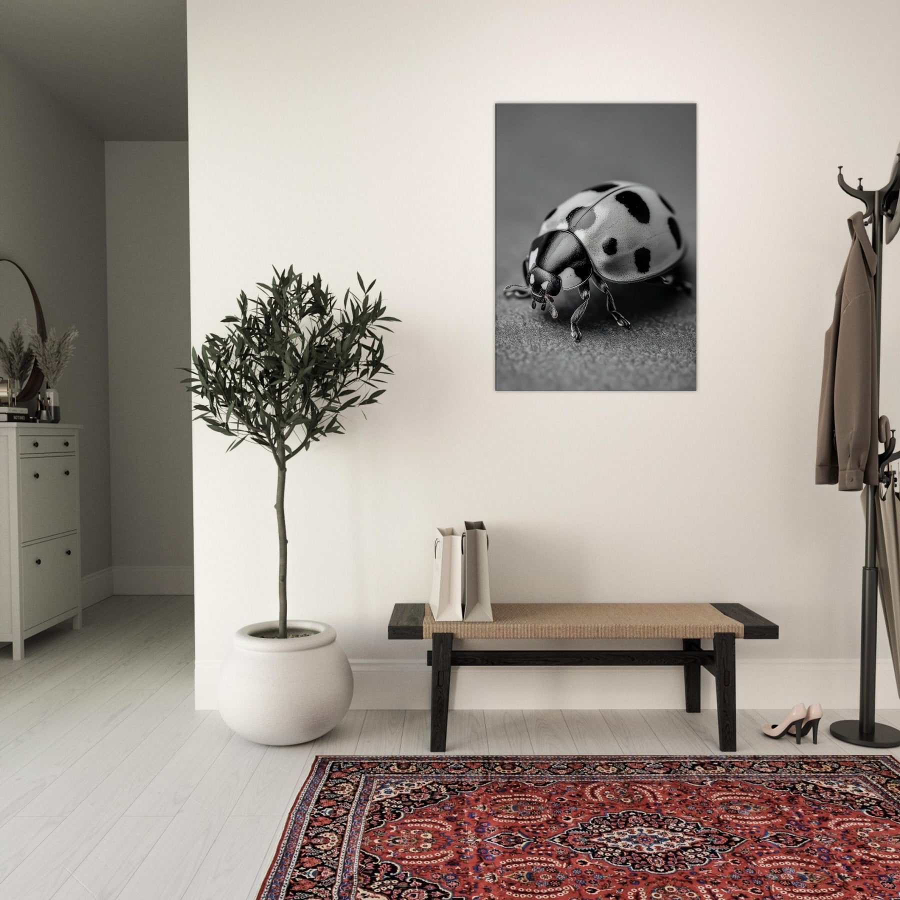 Step into a quiet moment of contrast and hush with this black and white portrayal of a Ladybug. The image reveals tactile textures, precise lines, and a gentle weight that anchors a sunny corner or a moody nook. Its monochrome grace invites reflection without shouting, letting natural light and nearby furniture, plants, or textiles breathe around it. A symbol of luck and detail, the Ladybug becomes a subtle, elegant focal point for any living space.