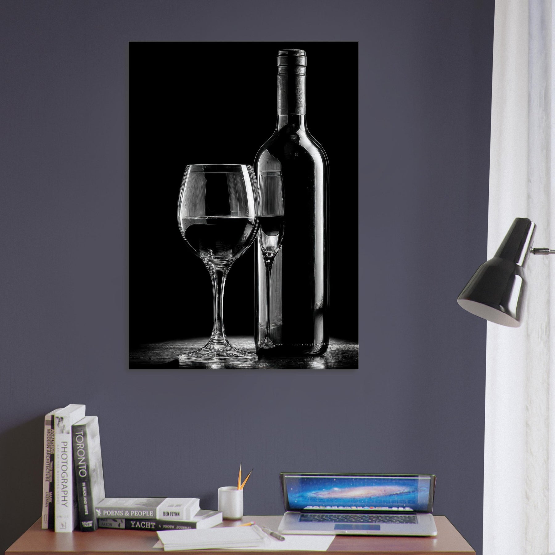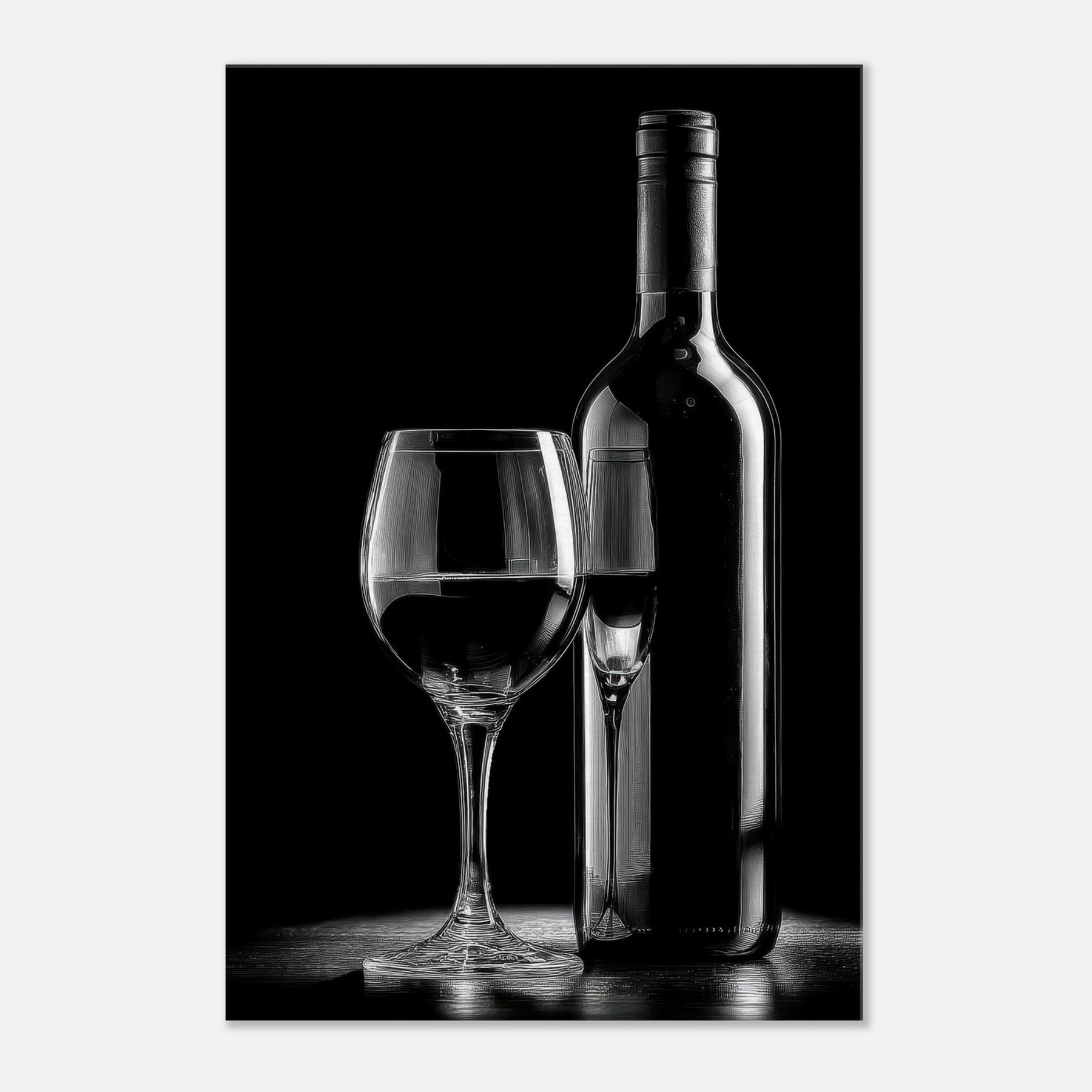 In this quiet study, a Wine Bottle And Glass becomes a whisper of evenings and quiet rituals. The stark contrast of light and shadow carves elegance from ordinary still life, inviting calm into a living room or dining nook. The composition exudes restraint, letting negative space breathe; it anchors a monochrome palette with timeless grace, enriching a wall with subtle drama and warmth when paired with warm woods or cool metals. A refined focal point for reflection.
