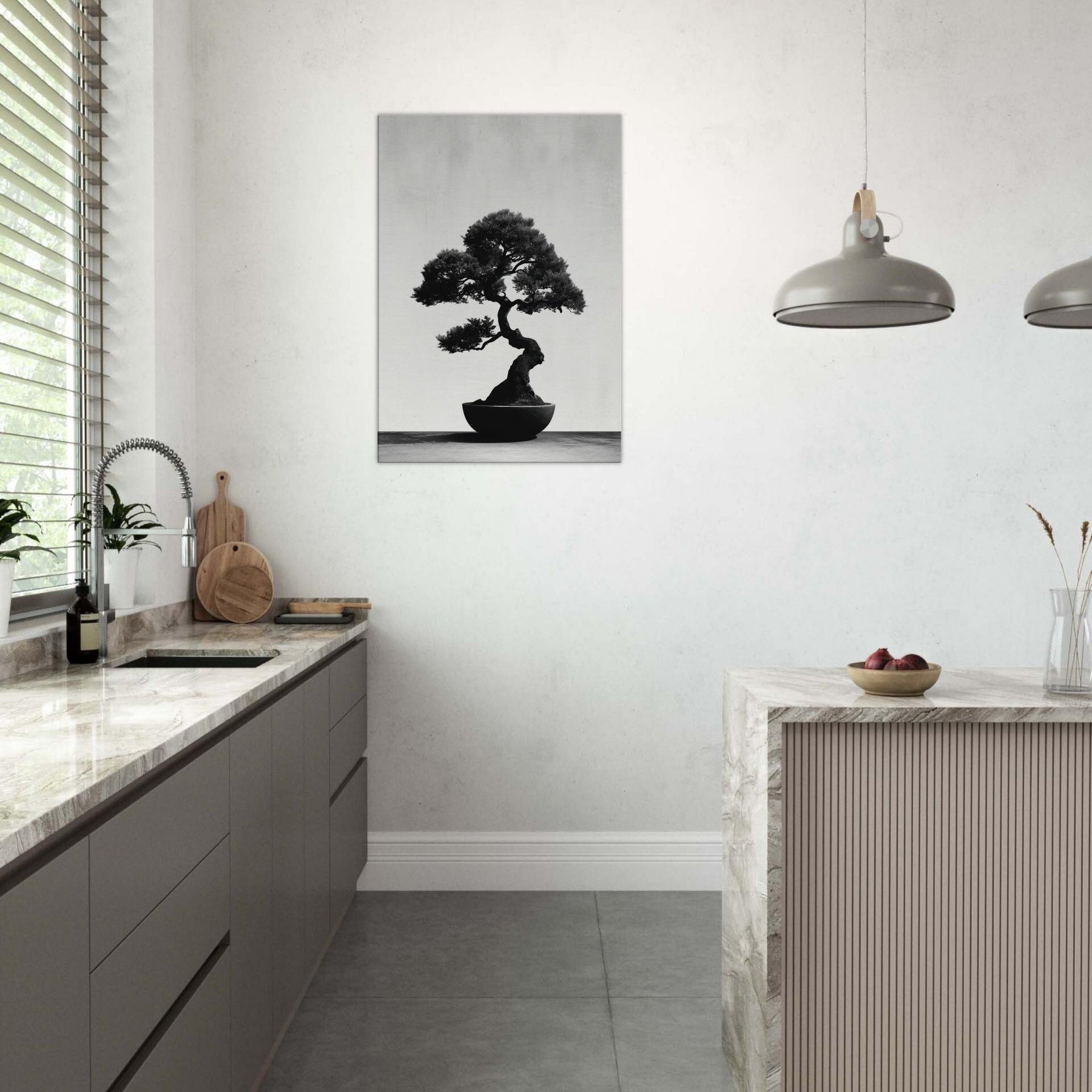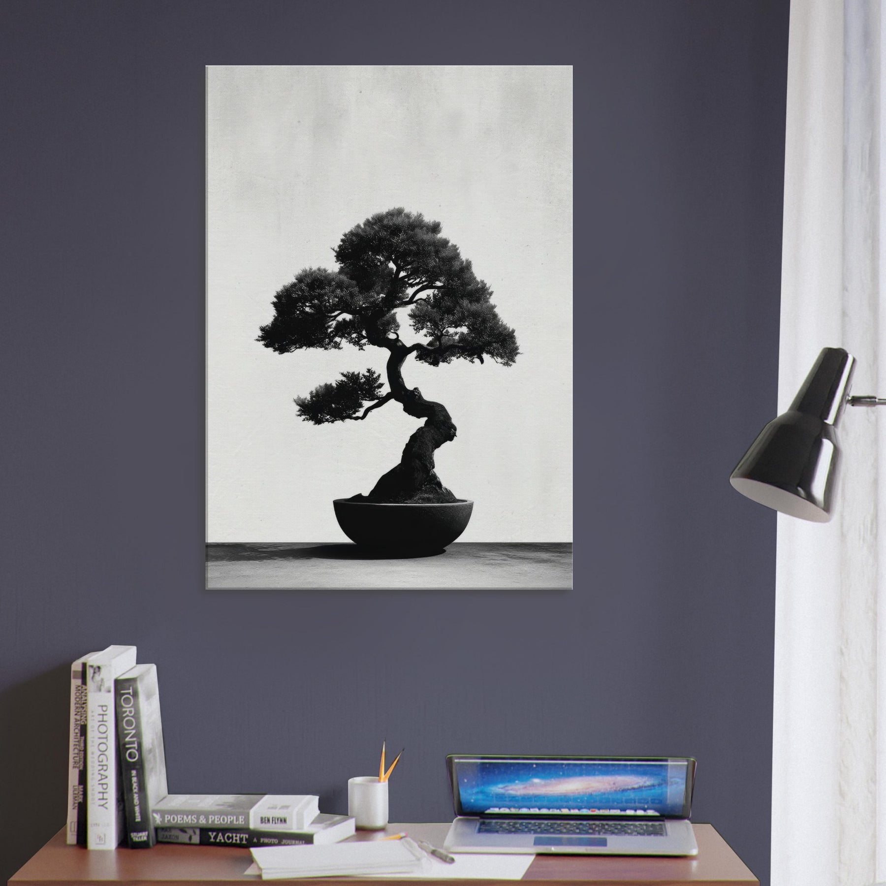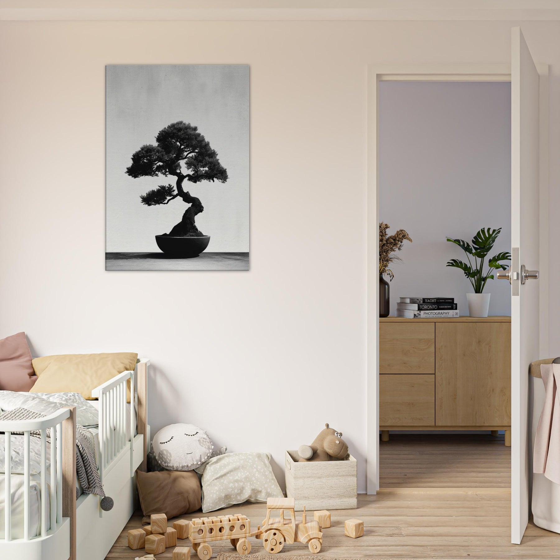 Bonsai Silhouette floats in a sea of negative space, a quiet study in restraint and grace. In stark black and white, its twisted trunk and airy canopy invite contemplation, turning any wall into a moment of personal balance. This piece lends a serene, meditative mood to living rooms and bedrooms alike, catching light at different angles and revealing depth in simplicity. Pair with soft textures and neutral palettes to elevate calm, refined interiors.