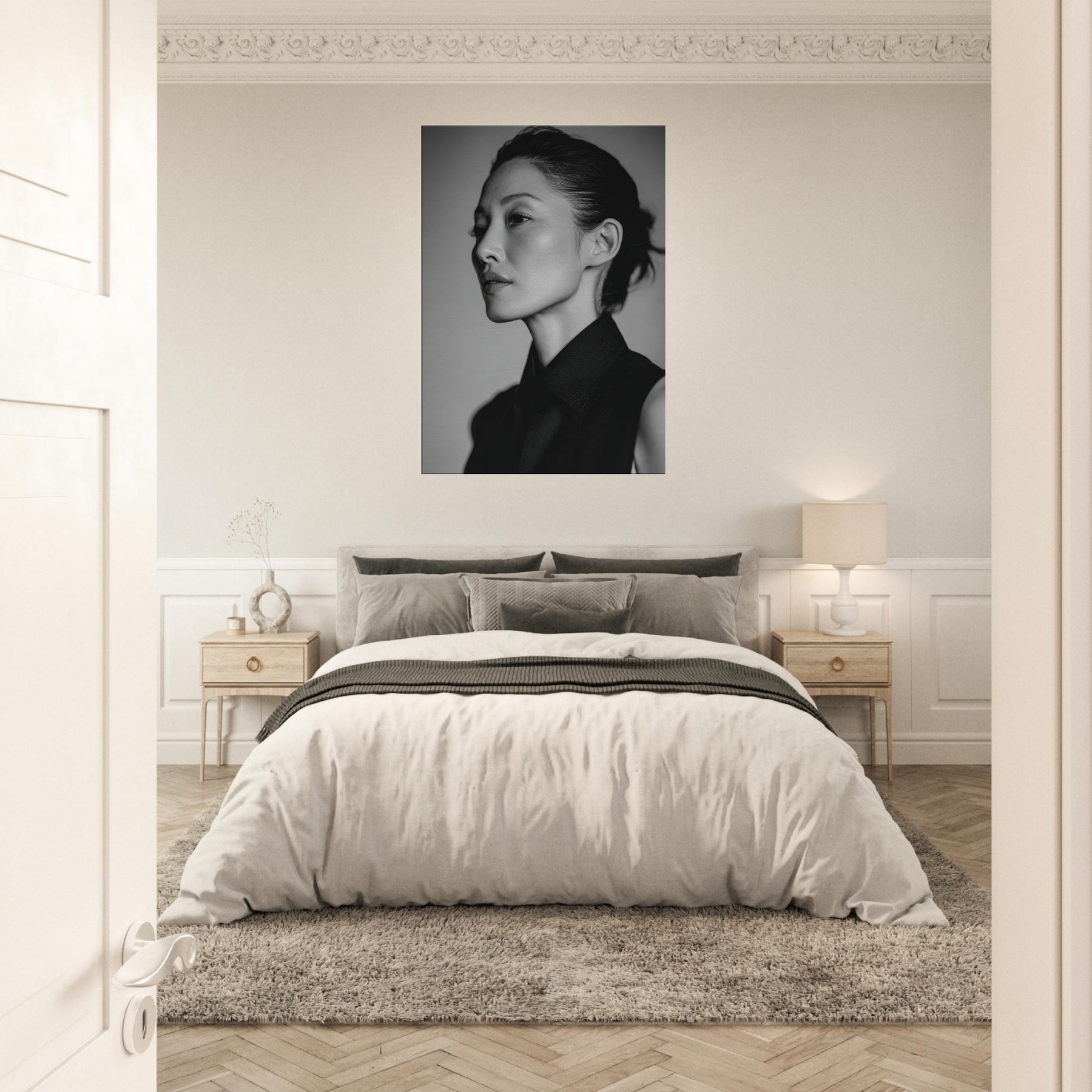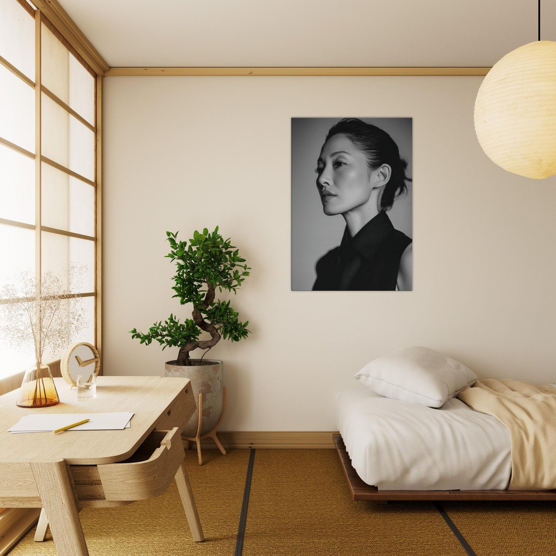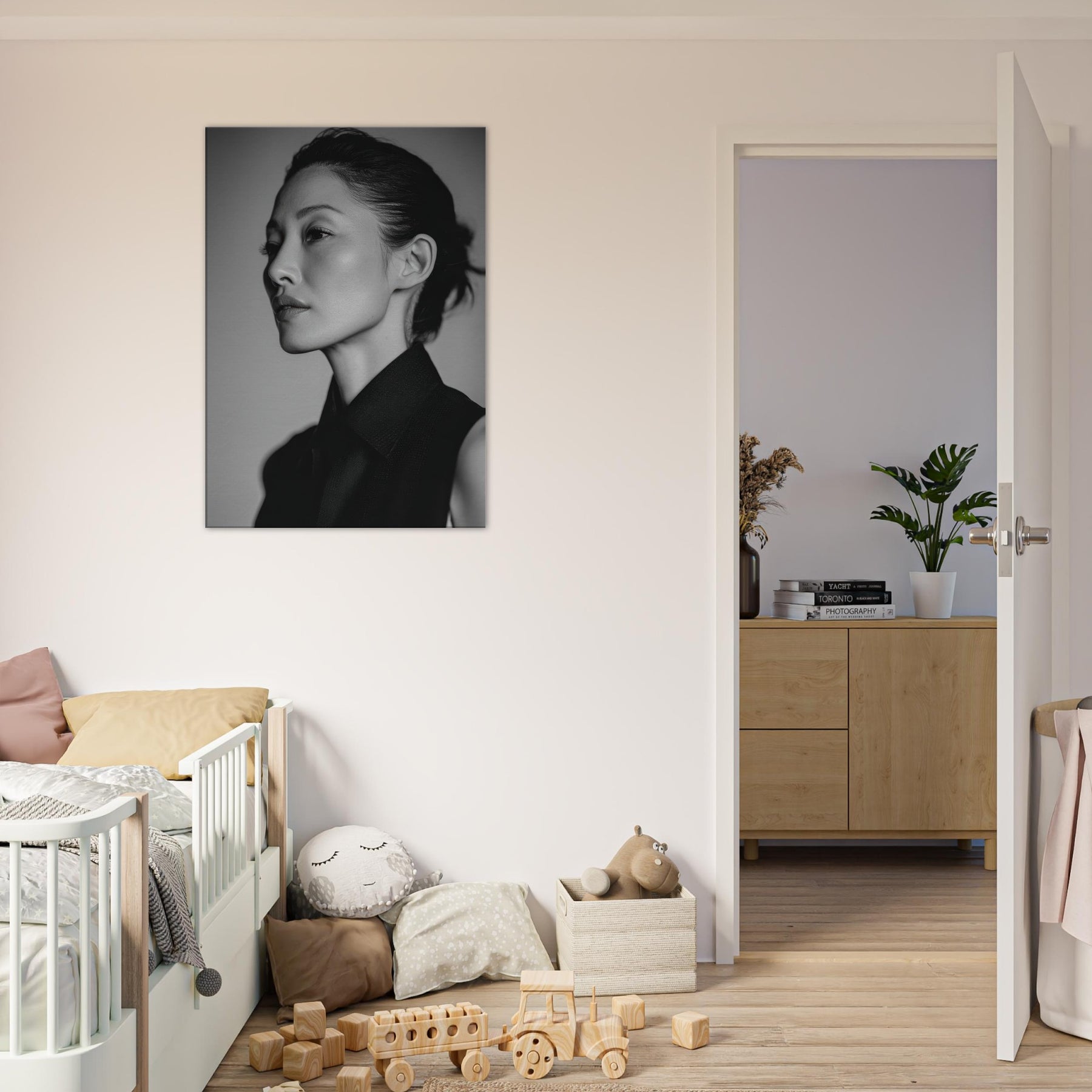 An arresting Asian Woman rendered in quiet grayscale, this study of light and line invites a hushed reflection. The tonal contrast traces the cheek, jaw, and neck's poised curves, capturing a moment between thought and breath. Designed for a contemporary living space, it anchors a wall with sculptural presence, turning empty spaces into intimate conversations. Let the gaze soften the room, while its timeless elegance elevates everyday moments.