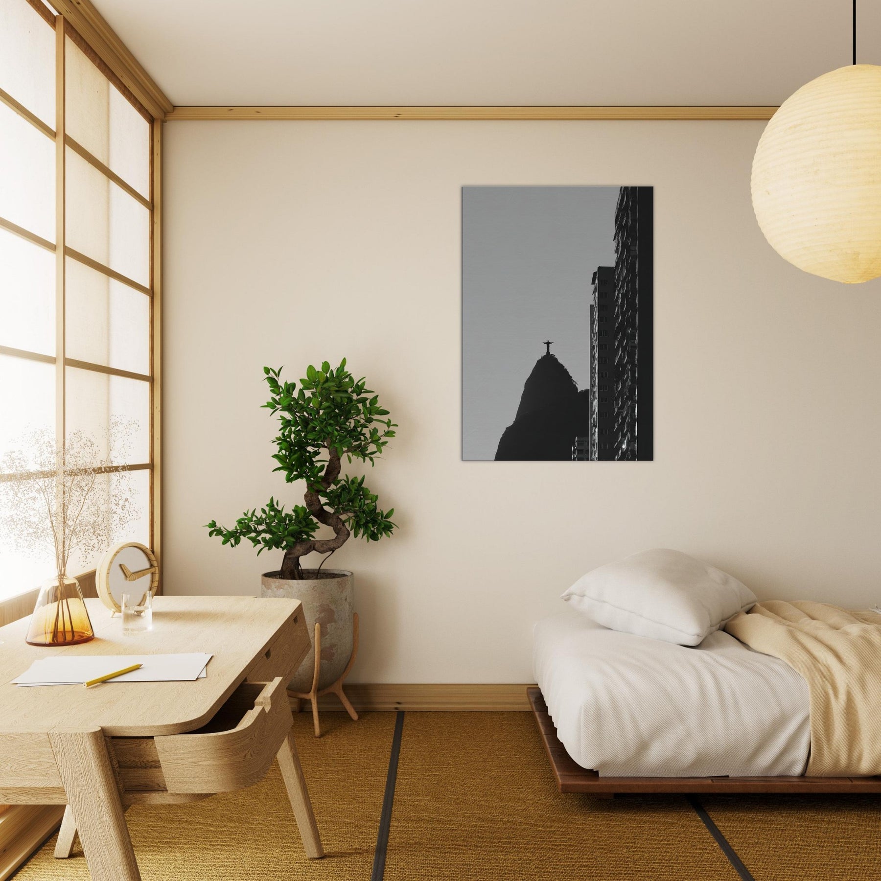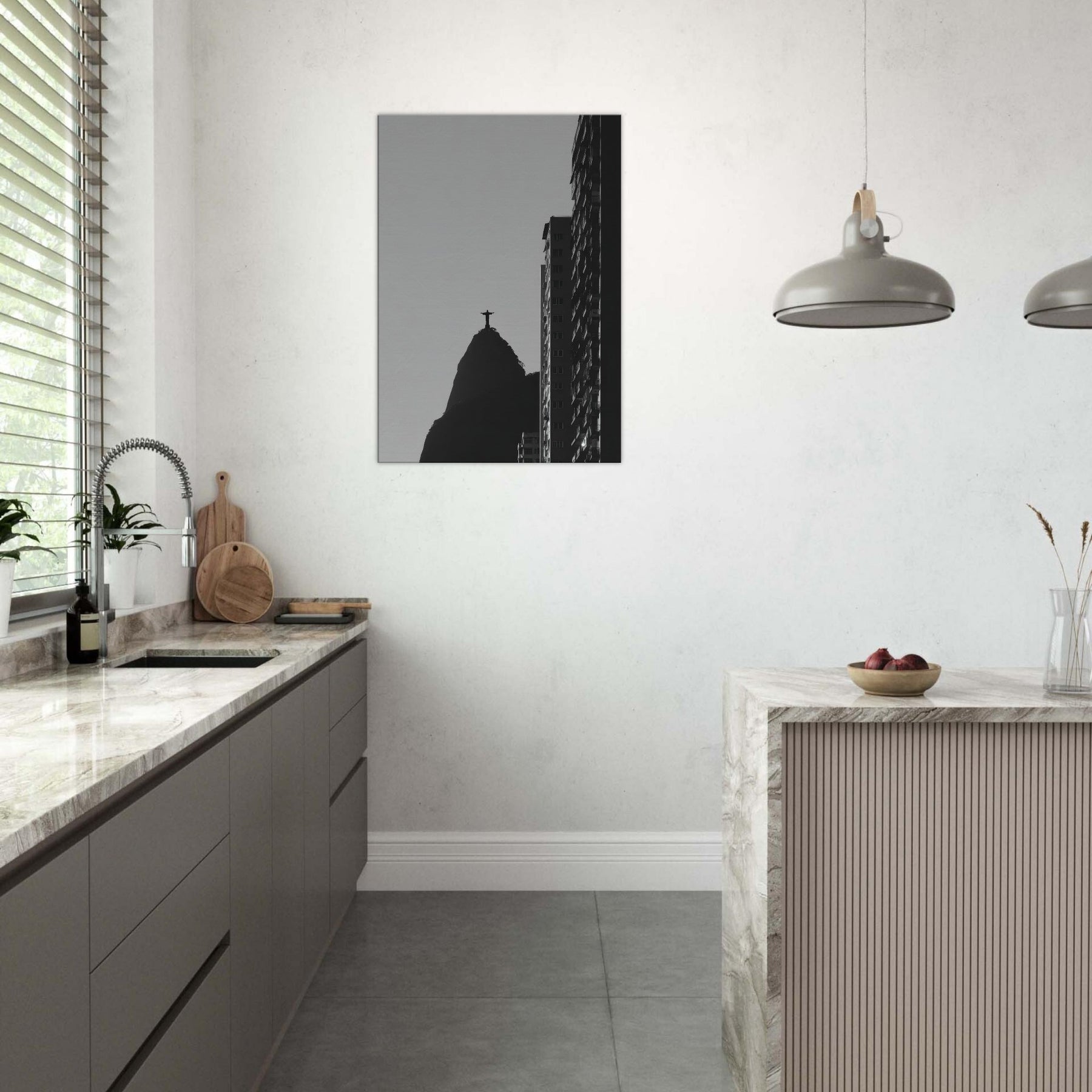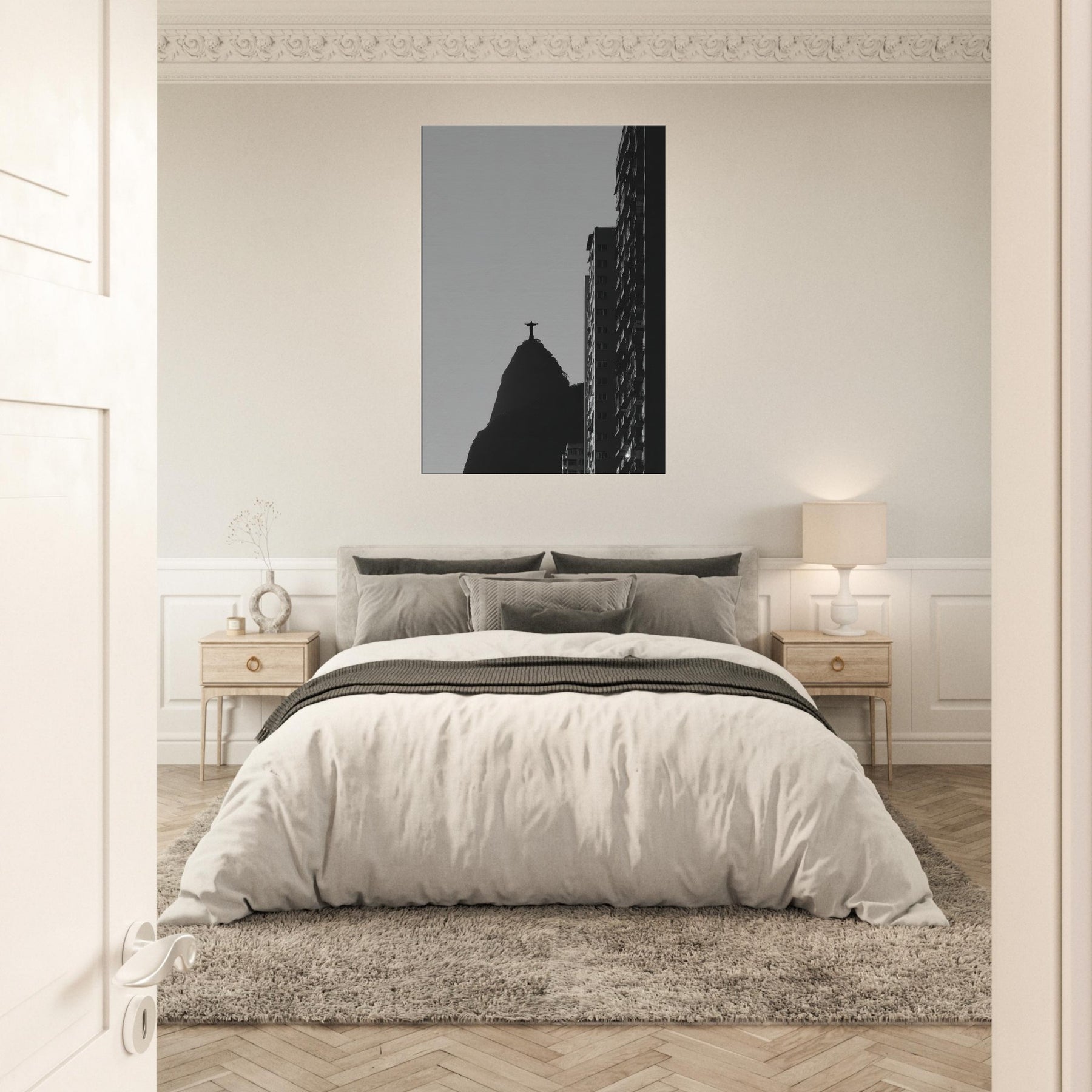 Rio de Janeiro in stark silhouette, this black and white study invites you to hear the city breath. The Christ statue atop its volcanic hill anchors the composition as a quiet, steadfast beacon, while towering monoliths carve the sky with crisp edges. The contrast between light and shadow folds the urban into a contemplative meditation, transforming a living room or study into a cinematic corner of travel and memory. Let the atmosphere spill into everyday moments calm, bold, and eternally alive.