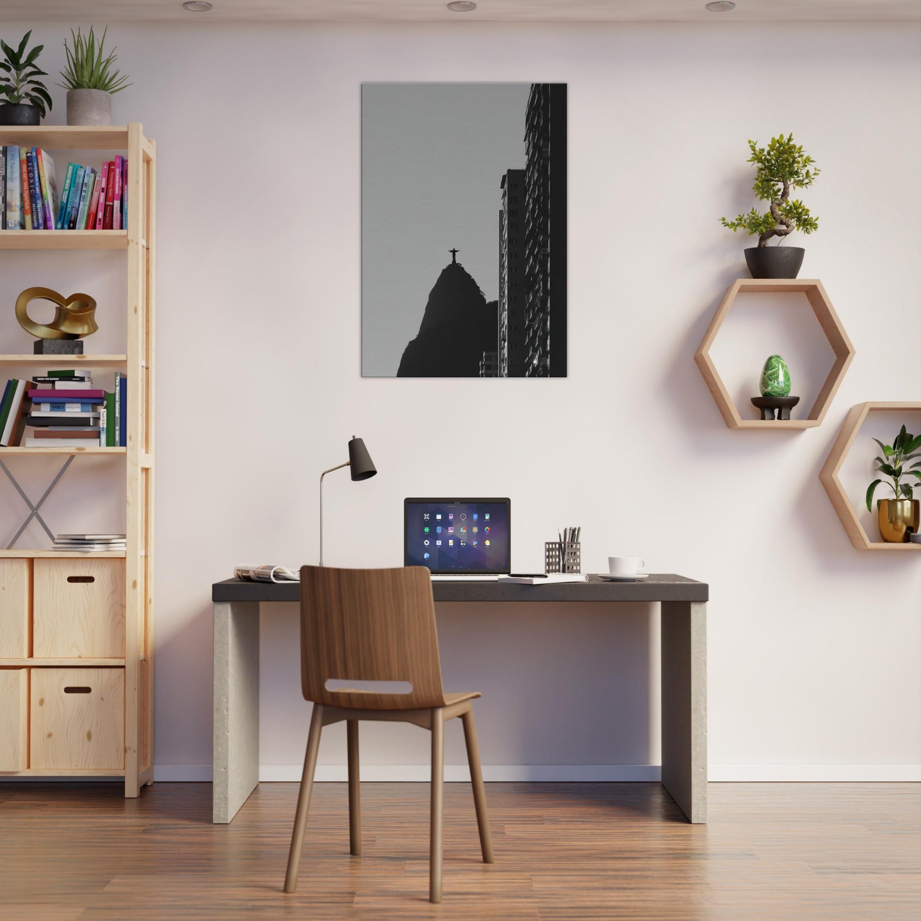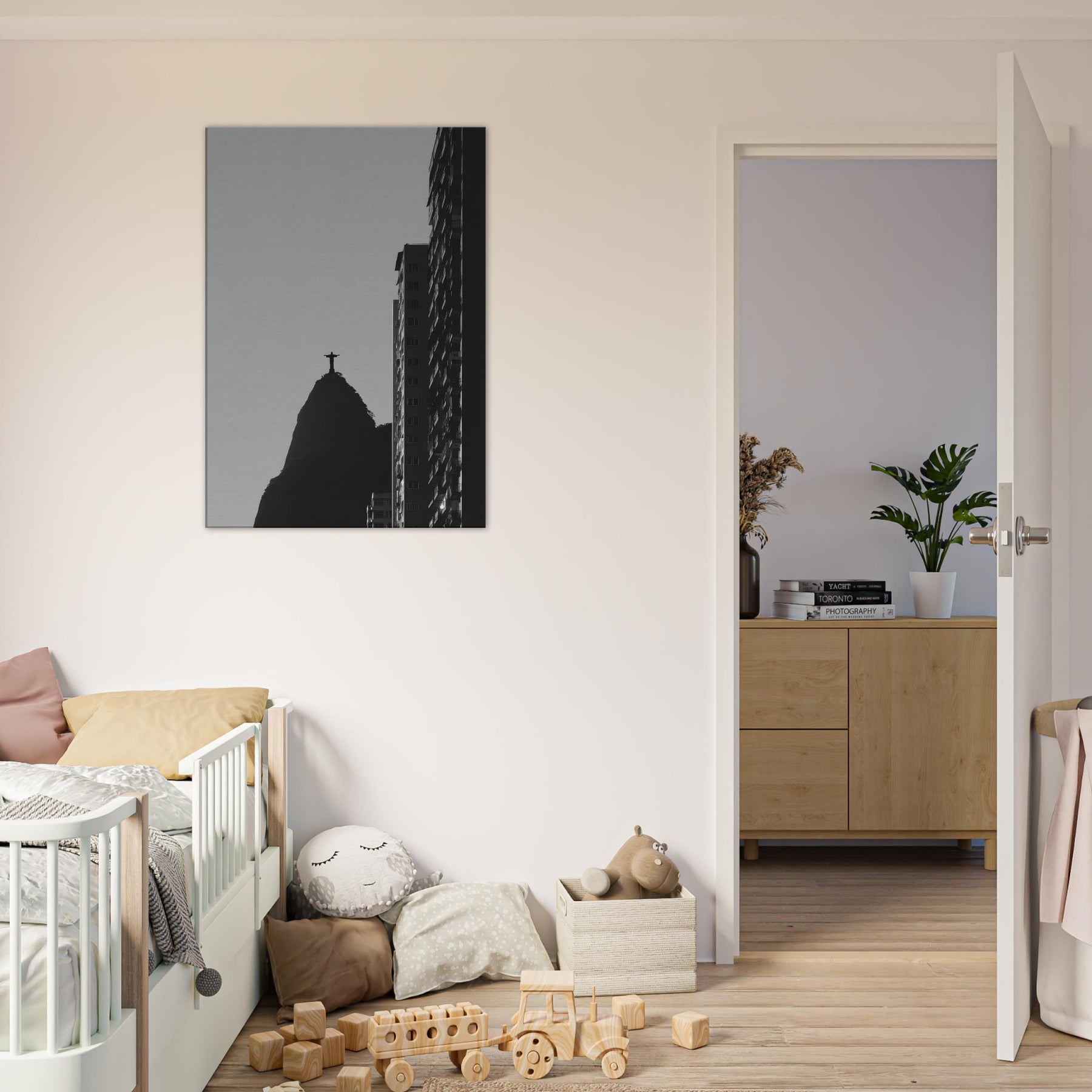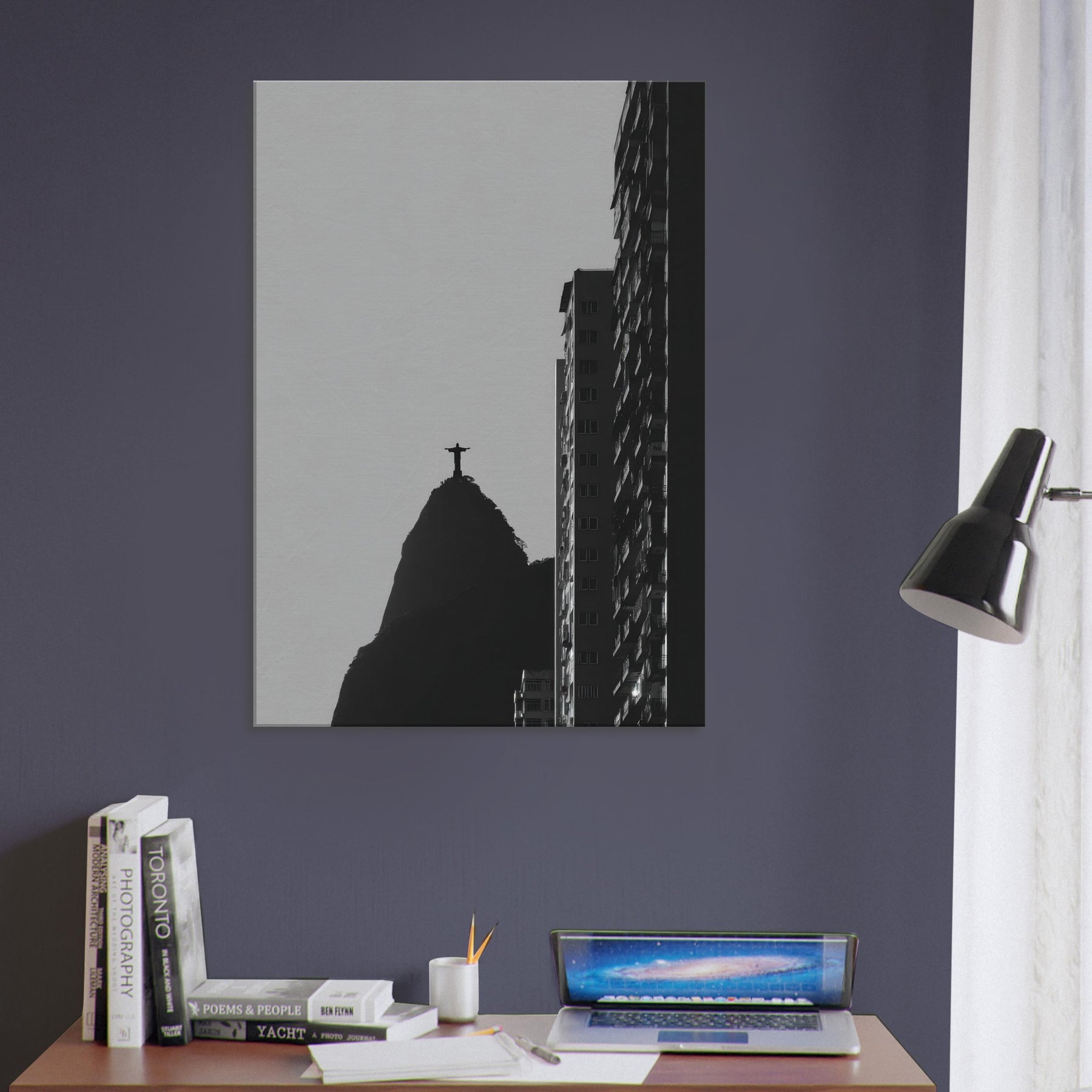 Rio de Janeiro in stark silhouette, this black and white study invites you to hear the city breath. The Christ statue atop its volcanic hill anchors the composition as a quiet, steadfast beacon, while towering monoliths carve the sky with crisp edges. The contrast between light and shadow folds the urban into a contemplative meditation, transforming a living room or study into a cinematic corner of travel and memory. Let the atmosphere spill into everyday moments calm, bold, and eternally alive.