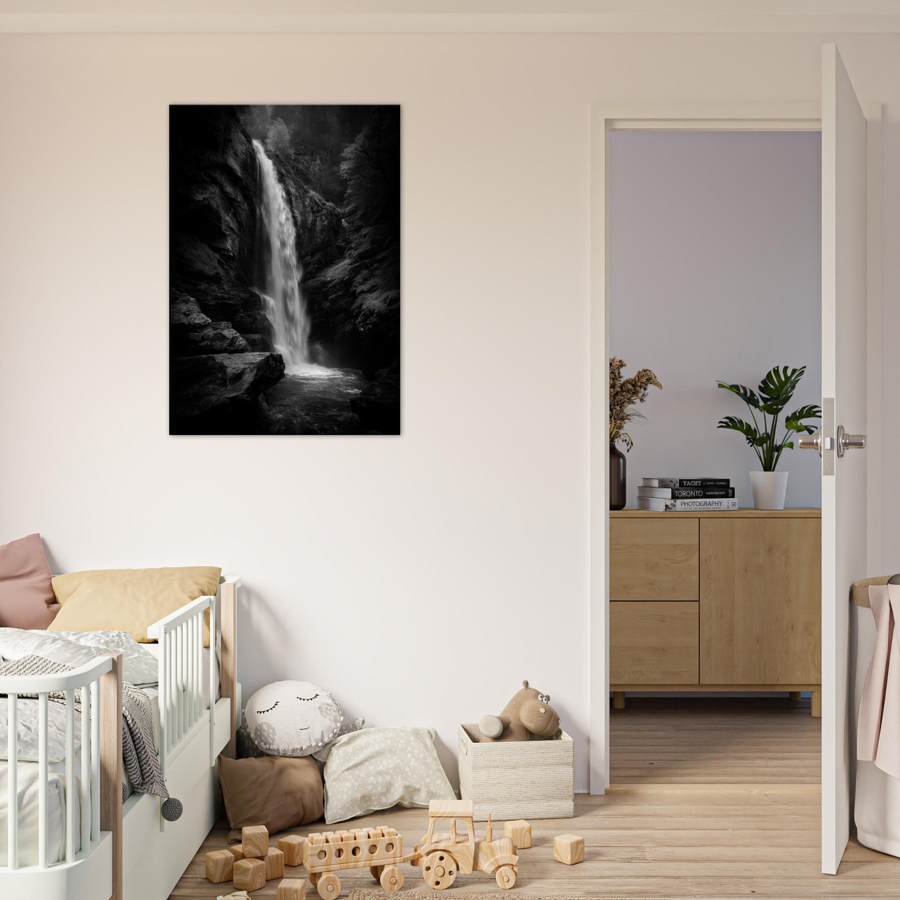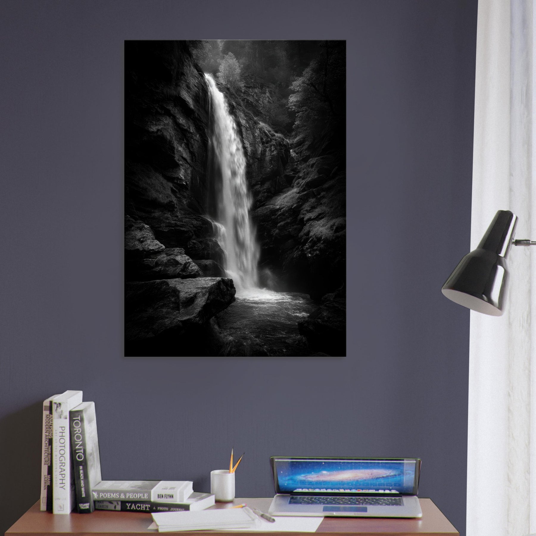 Disconnect from noise as you enter the quiet along a Waterfall captured in deep black and white. This wall art invites the mind to drift with misty air, hear the hush of water, and feel cool stone underfoot. The contrast of shadow and light emphasizes the waterfall's fluid gesture, turning a corner of your living room into a private retreat. Perfect for a minimalist or modern space, it pairs with textures wood, leather, linen creating a calm, cinematic focal point that slows the day and invites lingering, breath, and reflection.