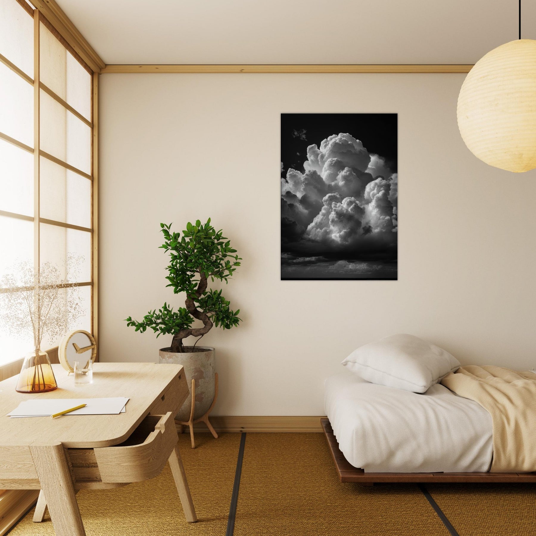 Clouds drift in a dramatic black and white passage, inviting quiet reflection. This wall art captures the colossal grace of the skies, turning living rooms into contemplative spaces where air seems to move and light lingers. The monochrome palette heightens texture the crisp edges of cumulus, the soft hush of vanishing shade creating depth without distraction. Hang it above a sofa or bed to anchor a room with calm, sculptural presence, and let Clouds guide a serene dialogue between memory, mood, and modern decor.