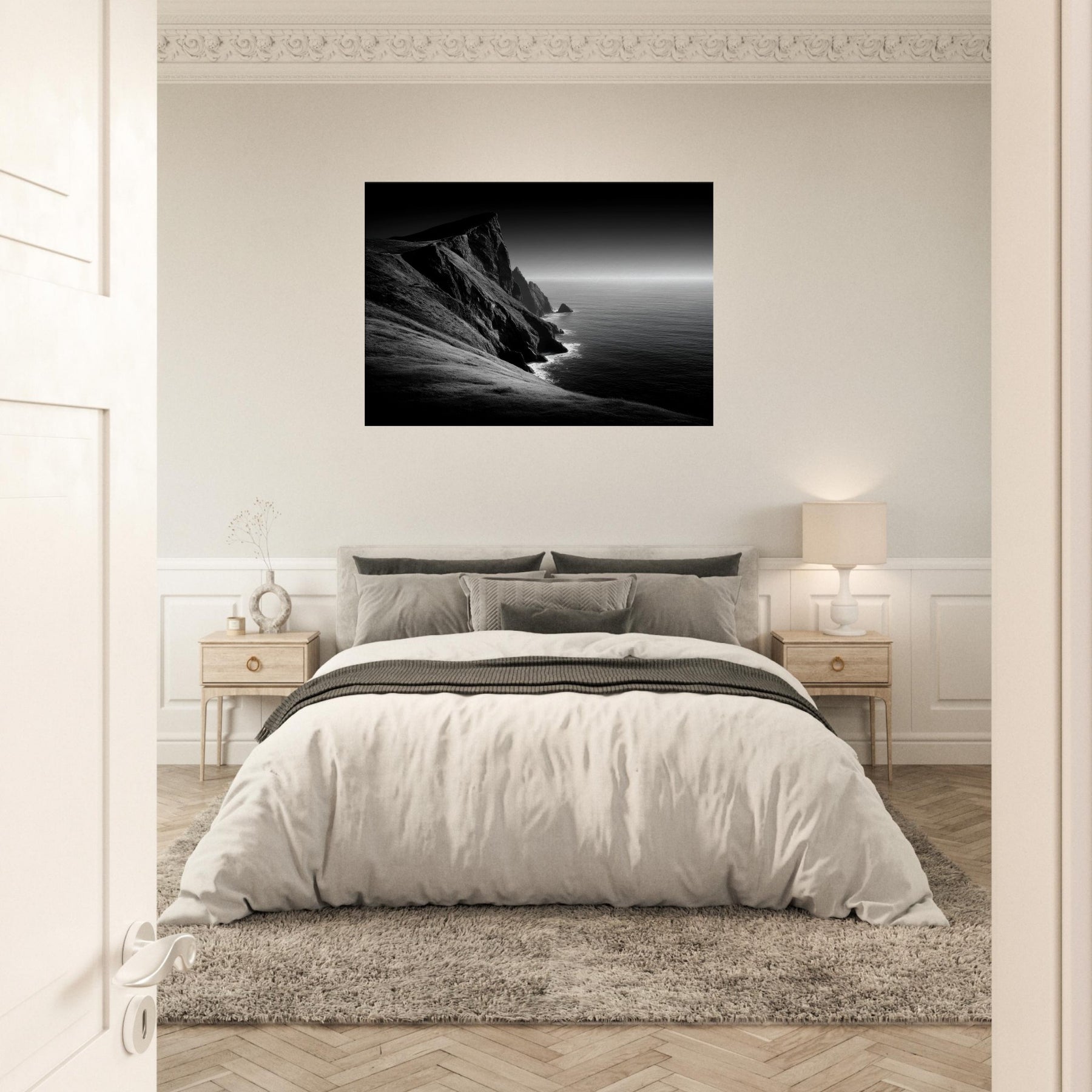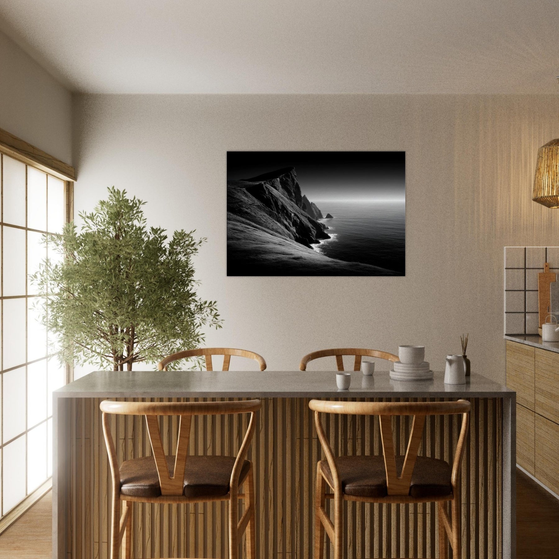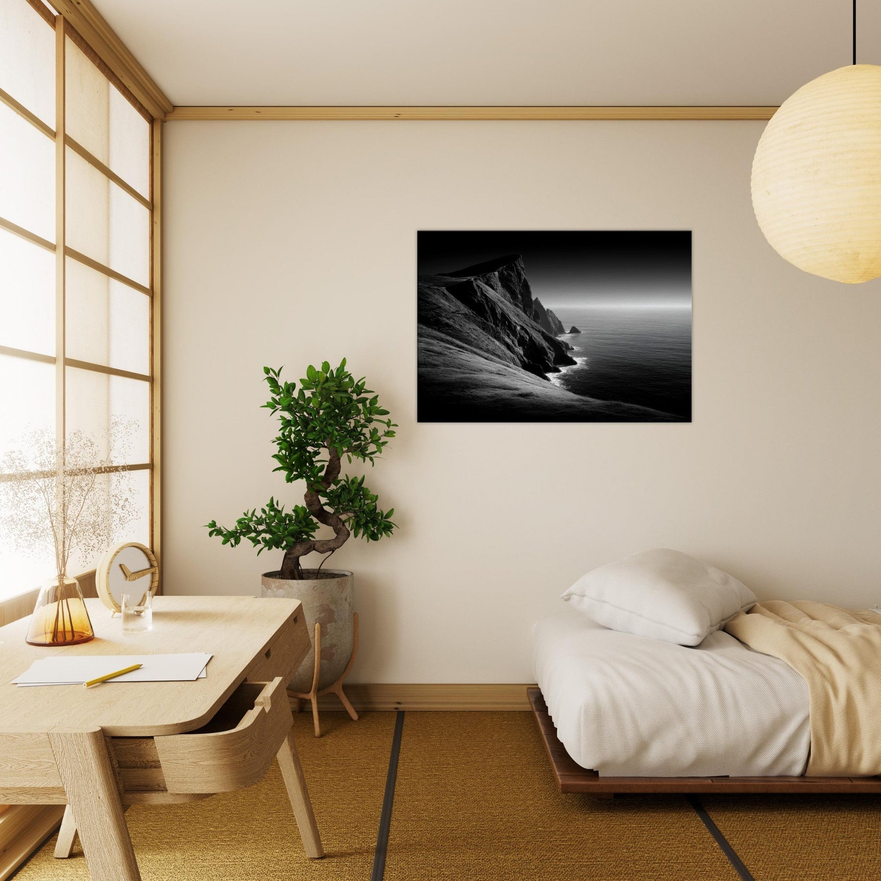 Coastal Cliffs unfolds in monochrome, where wind sculpted rock meets the endless sea. This black and white study captures the hush between land and water, turning texture into language crags into cadence, foam into a whisper. Hang it where daylight softens corners or where a moody gallery wall is called for; the image lends gravity and breathing room, inviting quiet reflection. The subject, Coastal Cliffs, becomes a window to horizon and memory, grounding a space with timeless, elemental calm.