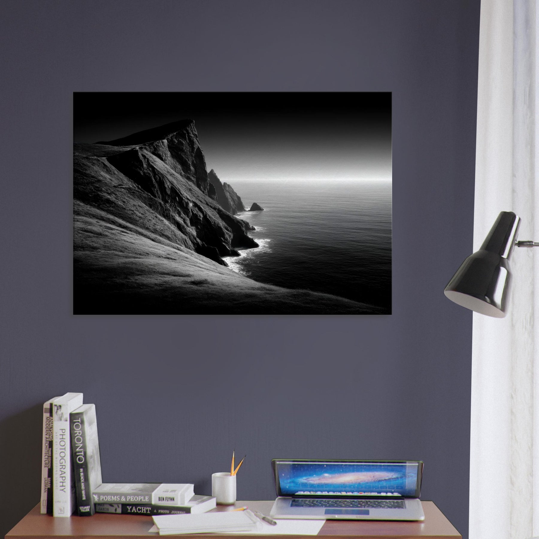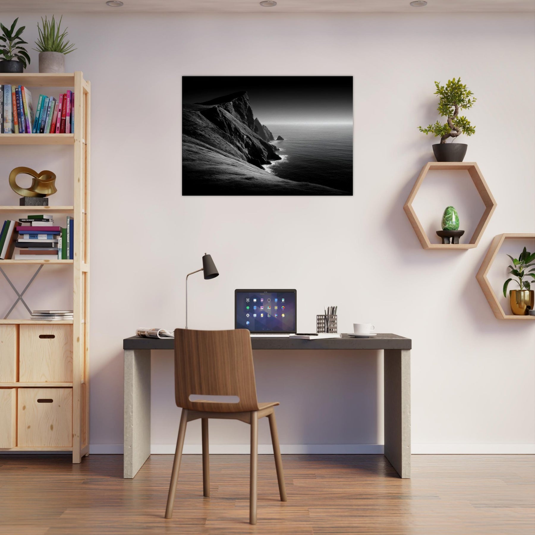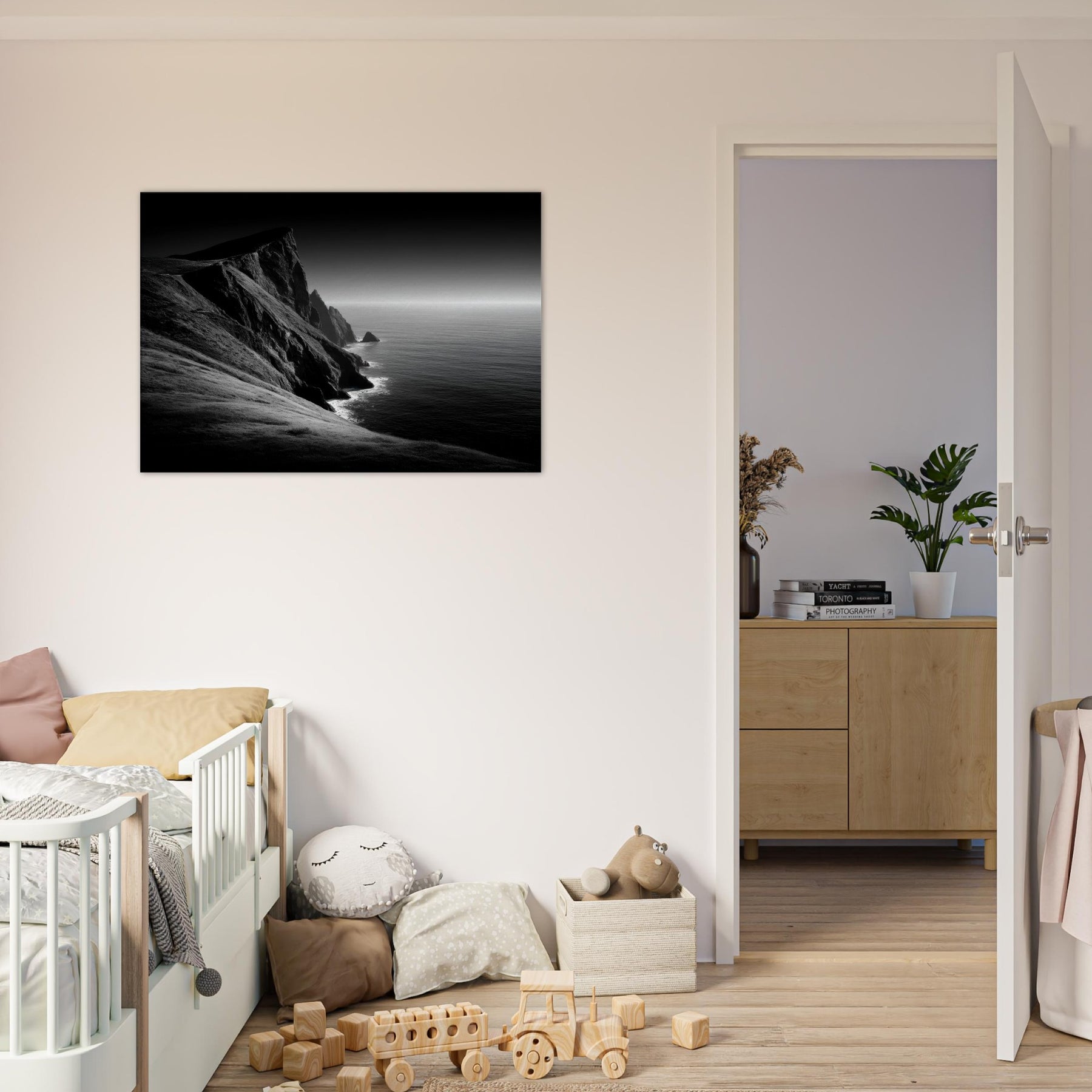 Coastal Cliffs unfolds in monochrome, where wind sculpted rock meets the endless sea. This black and white study captures the hush between land and water, turning texture into language crags into cadence, foam into a whisper. Hang it where daylight softens corners or where a moody gallery wall is called for; the image lends gravity and breathing room, inviting quiet reflection. The subject, Coastal Cliffs, becomes a window to horizon and memory, grounding a space with timeless, elemental calm.